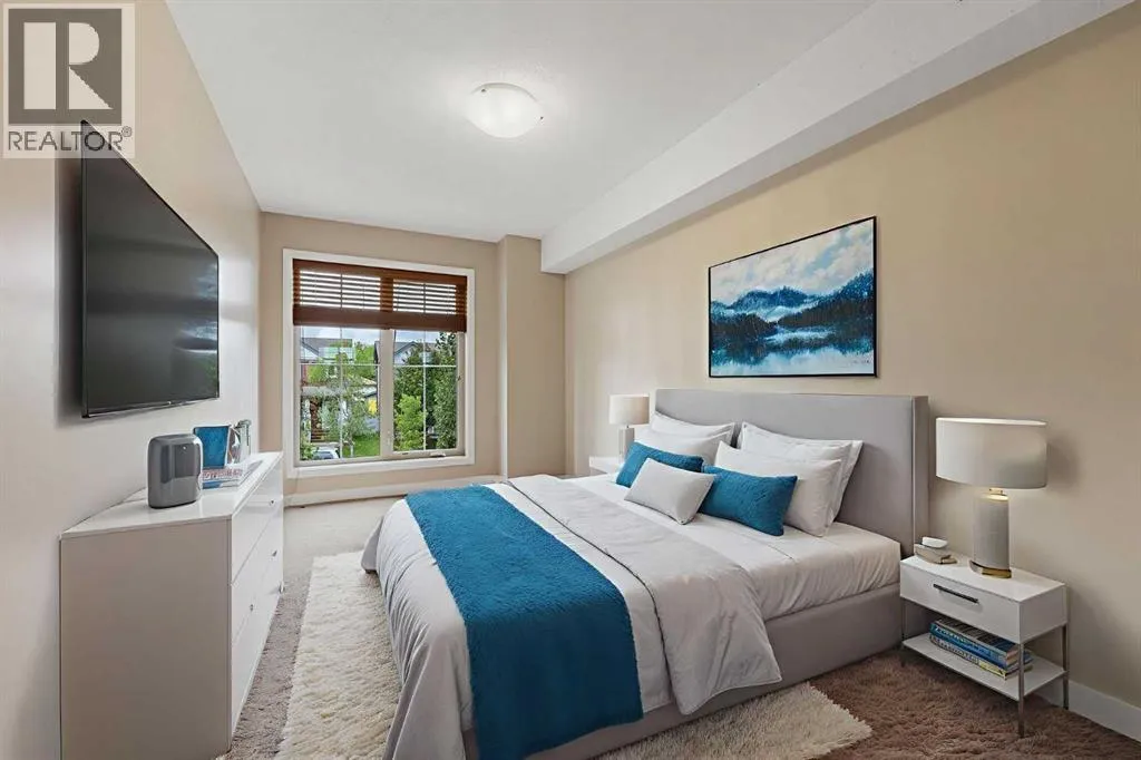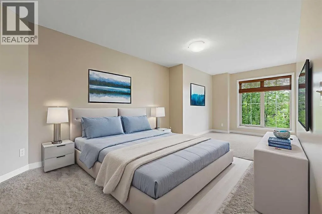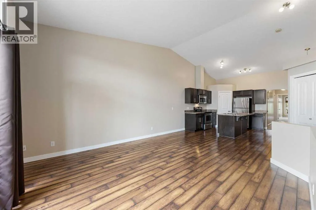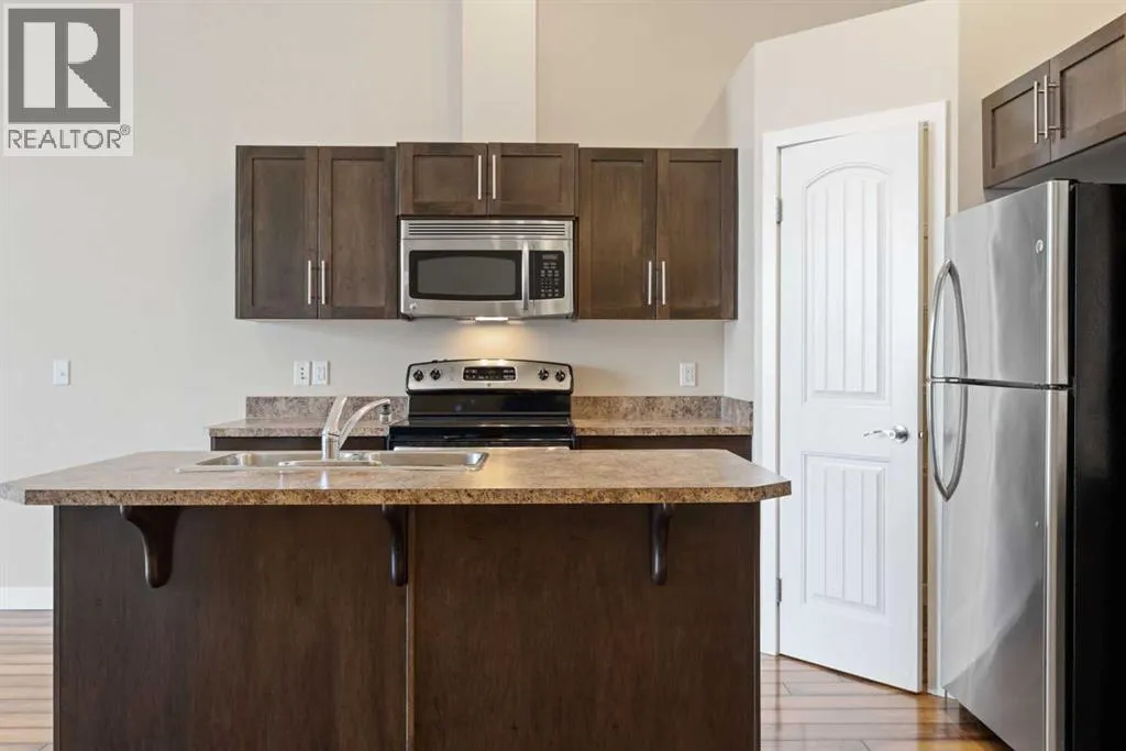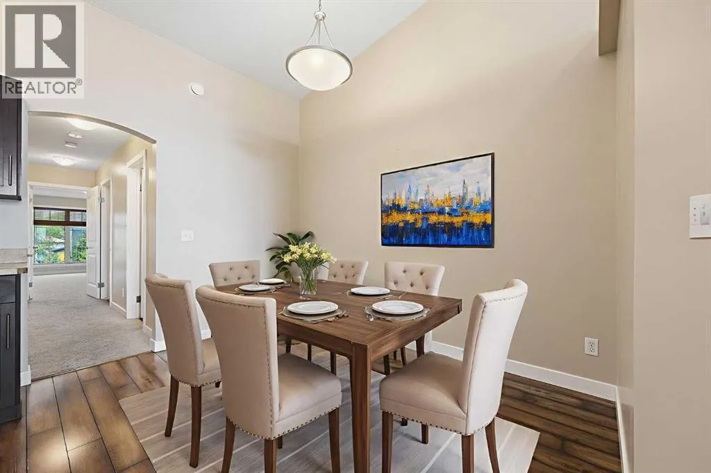 Immaculate 2 bedroom, 2 bath condo offering over 1,100 sq ft of modern living space in the desirable Evergreen SW community. This bright and well-maintained home features dark laminate floors, a spacious Master suite with a walk-in-closet and 4-piece ensuite bath. The second bedroom is ideal as a guest room or home office, with an additional 4-piece bathroom nearby. Enjoy the sun-filled living room with large windows and access to a private balcony to enjoy BBQ with friends or just relaxing evening coffee. . The dining area boasts vaulted ceilings, while the kitchen offers a center breakfast island, corner pantry and stainless steel appliances. Additional highlights include in-suite laundry, two parking stalls, and condo fees that include heat, water and sewer. Conveniently located with shops adjacent to the complex, and close to shopping, schools, parks and the scenic Stoney Trail. You will not be disappointed! (id:27476)