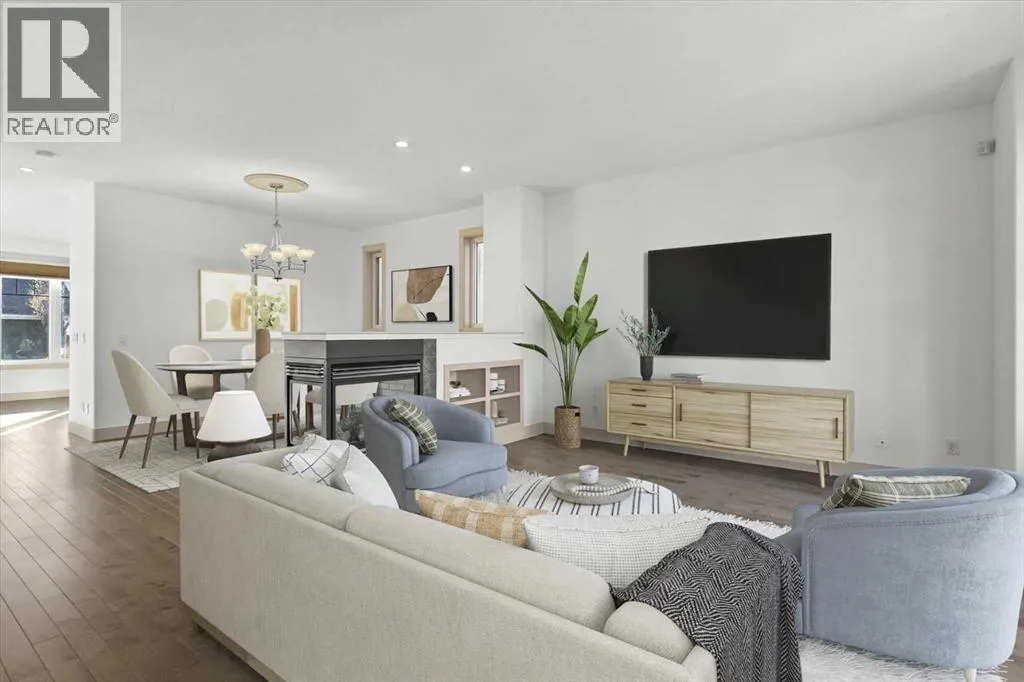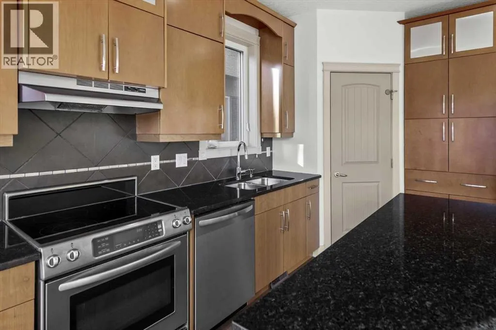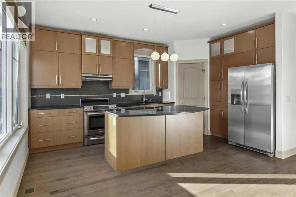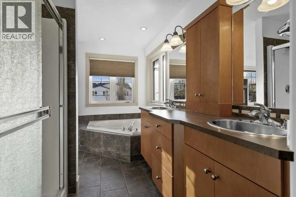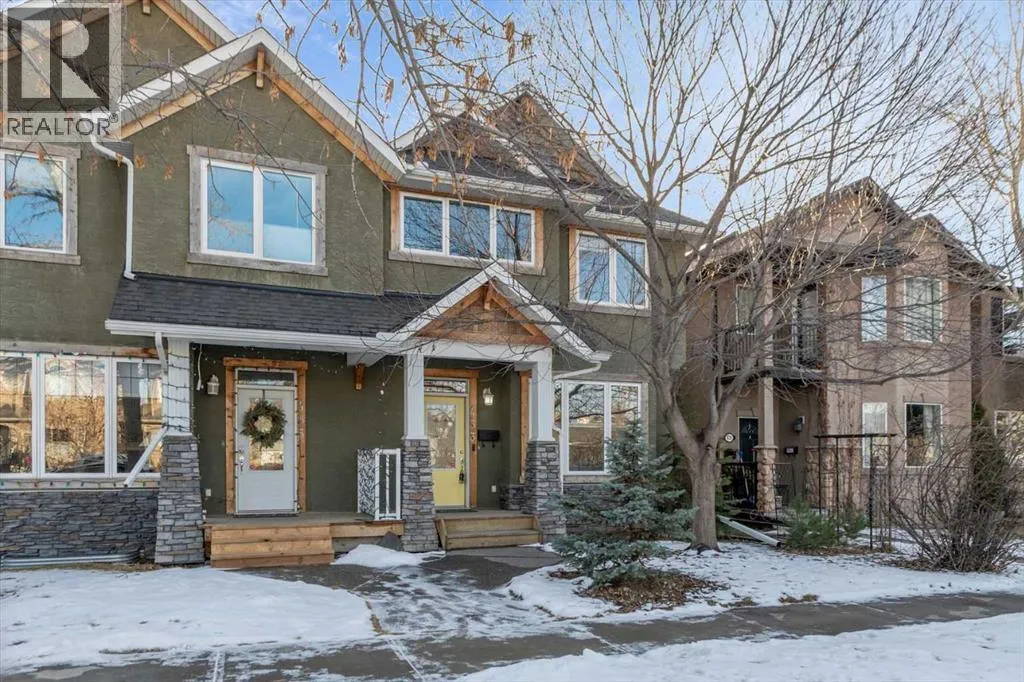 Tucked into Winston HeightsâMountview, this home carries a touch of Canmore sensibility, right in the city. The sage green stucco, stone cladding, and butter-yellow front door create an immediate sense of warmth and welcome. Step inside to a gracious living room, where a double-sided fireplace draws you naturally into the formal dining space. From there, the home opens beautifully to a south-facing kitchen bathed in natural light. Thoughtful updates include new stainless steel appliances, granite countertops, and a full pantry. Itâs a space designed for real life, morning routines, evening gatherings, and everything in between. Upstairs, youâll find three generous bedrooms and the convenience of upper-level laundry. The primary suite feels like a private retreat, with a three-sided fireplace connecting the bedroom and ensuite. Here, a soaker tub, dual vanity, and spacious walk-in closet create a calm, restorative space. The two additional bedrooms are bright and adaptable, the kind of rooms that grow with a family. Downstairs, the lower level offers a flexible living area with fresh carpet throughout, ideal for entertaining or unwinding. Beyond French doors sits a fourth bedroom with its own full ensuite, perfect as a guest suite or private office. Outside, the fully fenced, south-facing backyard provides a sunny retreat for summer evenings, while the double garage adds everyday ease. With convenient access to downtown, schools, and shopping, this home strikes a beautiful balance, neighborhood charm meets city living. Nearby, the Winston Golf Club is undergoing a significant renovation, bringing new energy to the area. The Winston HeightsâMountview Community Association is also just steps away, offering community gardens, a winter rink, and year-round programming. With excellent schools and expansive parks close by, this is a place that truly feels like home. (id:27476)