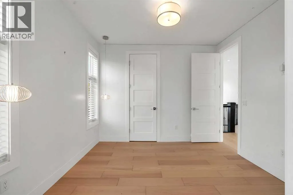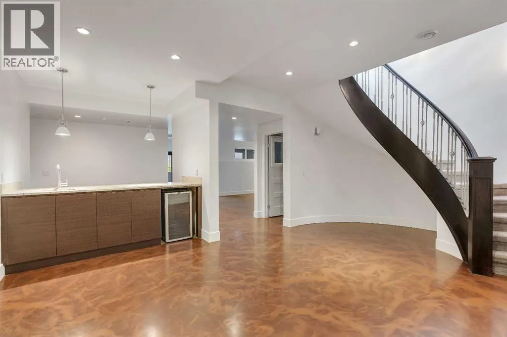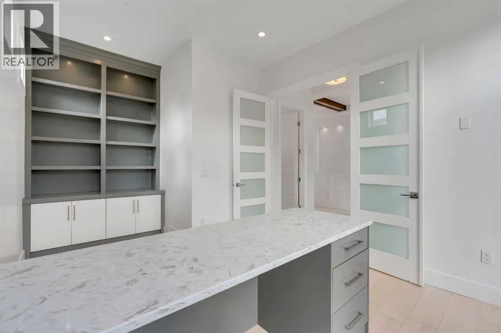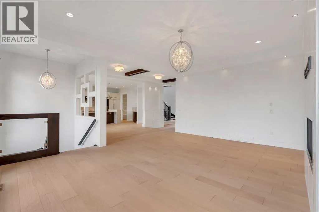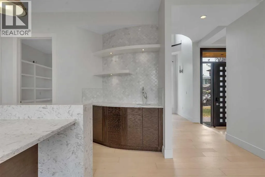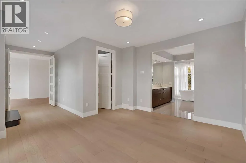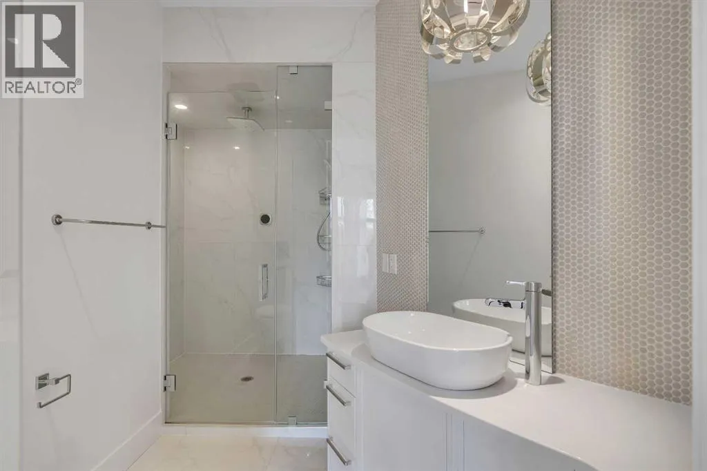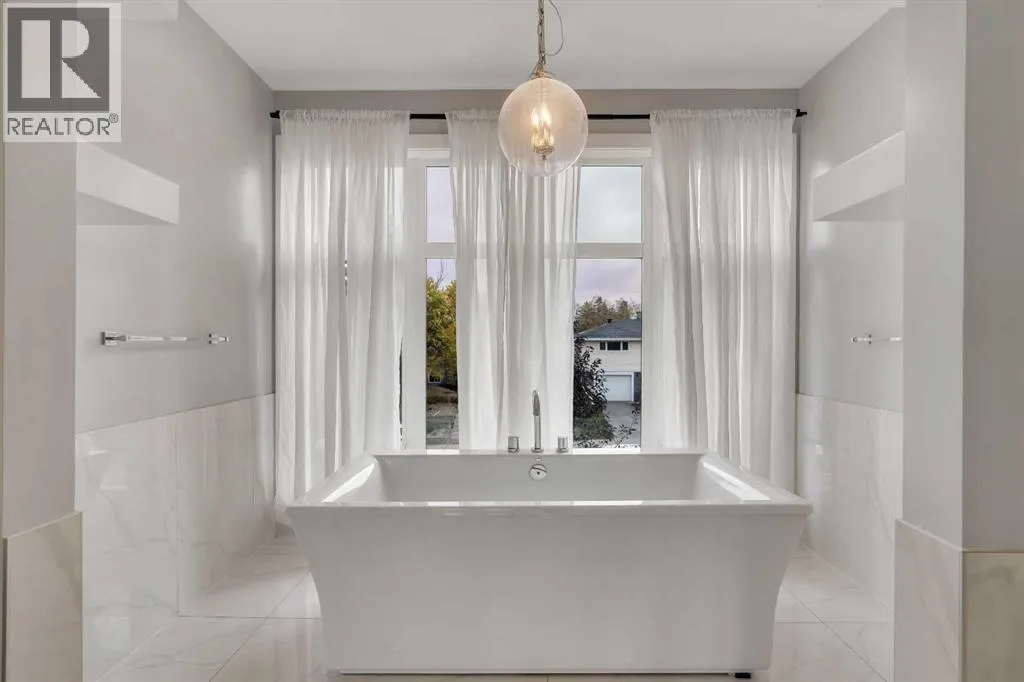 The perfect harmony of sophistication, light & function, this luxurious inner-city residence offers over 4,800 sq. ft. of refined living space backing west amid treetop outlooks & glowing sunset skies. A dramatic entry sets the tone with wide plank hardwood & a marble inlay, leading to soaring ceilings framed by custom millwork, exposed beams & black-clad windows that capture every nuance of daylight. French doors open to a private office detailed with built-ins, creating an ideal work-from-home sanctuary. The heart of the home is an exquisite designer kitchen that balances modern minimalism with warmth, showcasing pristine white cabinetry contrasted by rich wood accents, a waterfall-edge granite island & professional-grade Wolf appliances including a 6-burner gas range, steam oven & built-in espresso system. A curved wet bar & walk-through butlerâs pantry enhance the homeâs entertaining flow. Beyond, the dining roomâs double-height ceiling, sculptural chandelier & wall of glass doors invite connection between indoors & out, while an automated awning provides shade over the upper deck for sunset dinners. The adjoining living room blends quiet luxury with comfort around a sleek linear fireplace wrapped in full-height marble, its ambiance carried by soft recessed lighting & serene west views. Ascend the glamorous curved staircase illuminated by a cascading crystal chandelier to the upper level. French doors lead to a sumptuous primary retreat where a private balcony, spa-inspired ensuite with steam shower & soaker tub, and a custom dressing room create a boutique-hotel experience. 2 additional bedrooms, each with its own ensuite, complete this level. The fully finished walkout lower level continues the homeâs refined aesthetic, offering a seamless blend of comfort & sophistication. Heated epoxy floors provide quiet warmth underfoot, while a sleek wet bar invites easy entertaining & relaxed evenings with friends. The spacious recreation area is ideal for movie nights o r game-day gatherings, complemented by a well-appointed fourth bedroom & a stylish full bath for guests. A versatile den adds flexibility for a gym, yoga studio or private theatre, & dual stairwells connect this level effortlessly to the rest of the home for exceptional flow. Outside, the fenced west yard offers ample green space for relaxation or play, with a detached double garage featuring its own electrical panel, drive-through door & additional RV parking. Thoughtful upgrades include remote blinds, smart thermostats, tankless water heating, central air conditioning, in-floor boiler heat, sump pump & central vacuum. Perfectly positioned within Hounsfield Heights/Briar Hill, this exceptional property offers unmatched access to parks, top schools, SAIT, Kensington, the Bow River pathway system, North Hill Centre, hospitals, downtown & the mountains beyondâall wrapped in elevated design & timeless luxury! (id:27476)