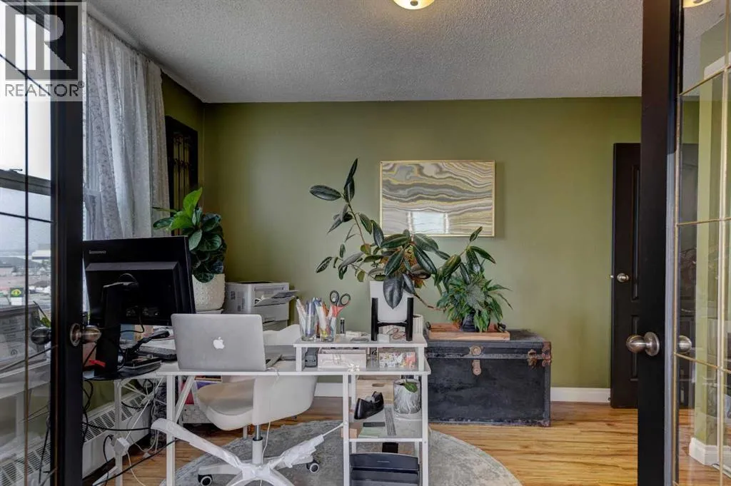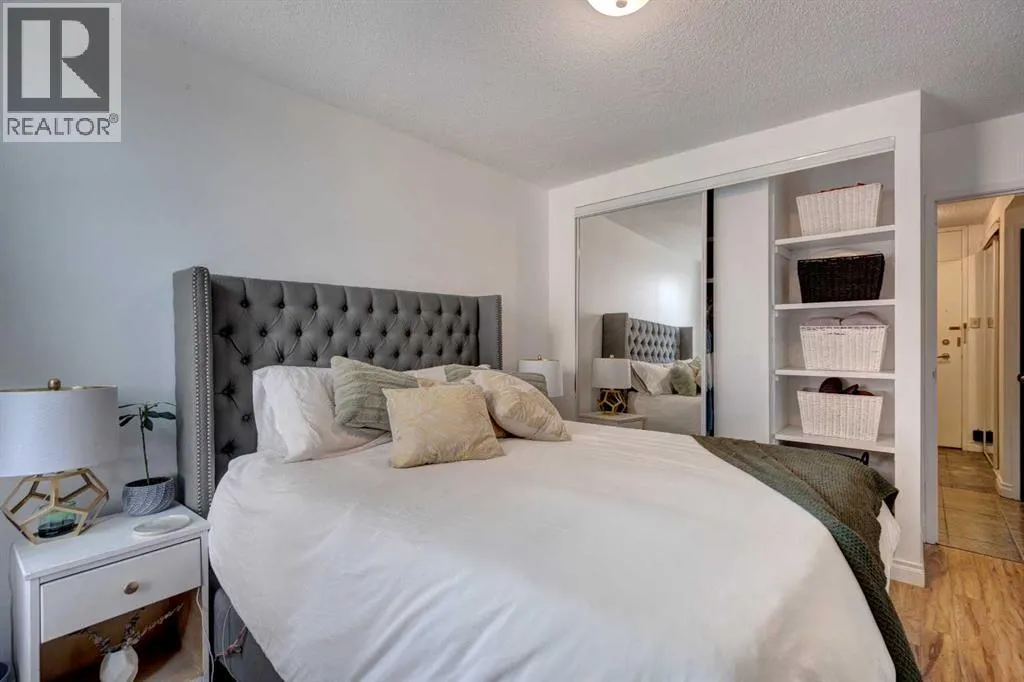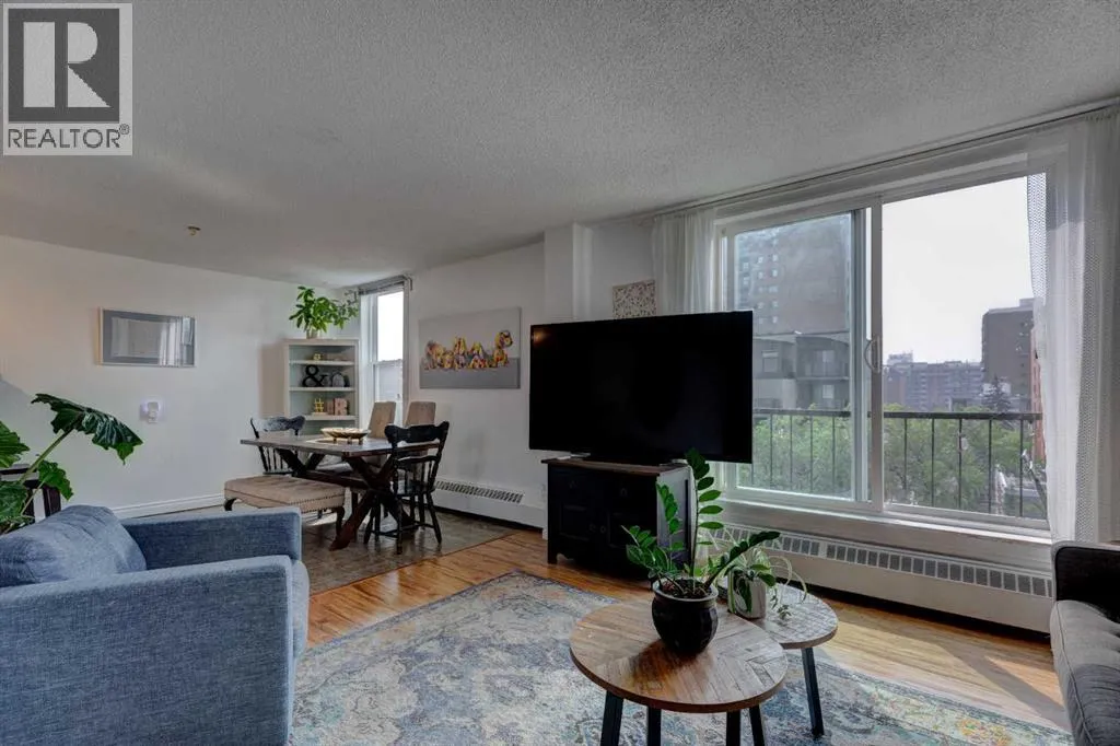 HOME SWEET HOME! Welcome to your AMAZING OPPORTUNITY to call Downtown Calgary home in this exquisitely updated TOP FLOOR CORNER UNIT condo in beltline offering 2 bedrooms and 1 bathroom with over 772+sqft of stylish, beautifully maintained living space! Heading inside you will fall in love with the stunning open concept layout with gleaming hardwood flooring, stylish finishingâs and extraordinary South facing views. Standout features include a formal dining area, a large living room with lots of windows flooding the space in natural sunlight. The chic kitchen complete with microwave hoodfan, dishwasher, ample cabinet space, plenty of counter space, island with an eating bar and a trendy backsplash. Finishing the inside of the unit is a spacious second bedroom with French doors that would make for a great home office or close it up with solid doors for the 2nd bedroom, 4 piece bathroom and lastly a magnificent primary retreat with large closets and convenient in-suite laundry. Your spacious balcony is perfect for entertaining and basking in your breathtaking Downtown views. This amazing condo also comes with an assigned covered parking stall, assigned storage locker and bike storage. Perfectly situated just steps from all the hot spots, nightlife, bars, restaurants and coffee shops that 17th Ave and Downtown offer, parks, shopping, public transportation and so much more! This is the perfect opportunity for buyers looking to upsize, downsize, an investor and young professionals alike. Don't miss out on this GEM, book your private viewing today! (id:27476)