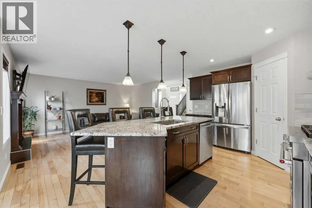 Welcome to this exceptional 4-bedroom, 3.5-bathroom family home ideally situated on a pie-shaped lot in a quiet cul-de-sac, directly across the street from the scenic ravines of Valley Ridge. Offering a rare blend of nature, community, and convenience, this location is hard to beat. The open-concept main floor is designed for both everyday living and entertaining, featuring a bright, functional layout with an updated kitchen, complete with stone countertops and updated appliances. Large windows invite in natural light and capture peaceful views of your oversized yard. Upstairs and down, the home offers generous living space for growing families, with four well-sized bedrooms and 3.5 bathrooms providing comfort and flexibility for all stages of life. The oversized double attached garage adds excellent storage and everyday practicality. Valley Ridge is celebrated for its access to the river valley, extensive ravine trail system, and one of Calgaryâs most beloved outdoor community rinks, fostering an active and connected lifestyle year-round. With quick access to the mountains and an easy commute to downtown, this home delivers both tranquillity and accessibility. A perfect family home in one of Calgaryâs most sought-after west-end communities. (id:27476)