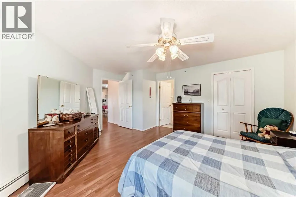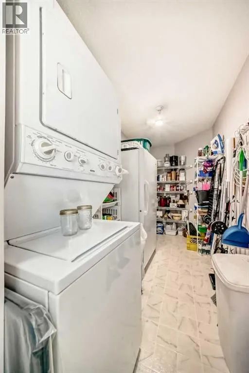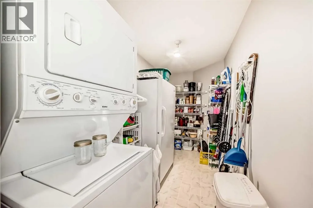 Top floor 1495 sq. ft bungalow (all on one floor) plan. First time offered by this original owner and located in the extremely well managed adult 45+ Millrise Point community. Many upgrades including a large custom kitchen with both the cabinets and pantry featuring pull out drawers for storage and special built in custom spice racks. Note the counters have been lowered 1â to accommodate shorter chefs. All the kitchen appliances plus the washer, dryer and freezer in that massive utility/laundry room are included. Bidets in both bathrooms, extra large walk in customized primary bedroom closet. The 2nd bedroom also features customized his and hers closets. Two underground and secured side by side titled parking with your storage lockers right in front and numerous surface visitor parking for your guests. This buildingâs amenities include a party/social room with its own kitchen, a library, and a fitness room. Condo fees include professional management, landscape, snow removal, electricity, heat, water, waste/garbage removal and insurance. Pets are welcome with board approval. Must be seen to truly appreciate the forethought of this original owner. Check the location with the LRT and bus routes just across the intersection. Easy walk to Fish Creek Provincial Park. Medical pharmacy and major shopping also just down the street. Check the pictures, the virtual tour, and call your favorite agent right away. (id:27476)
