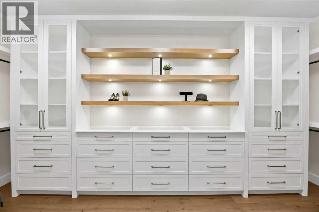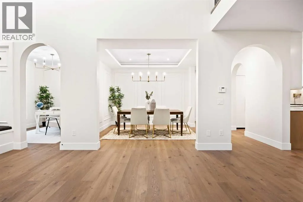 âOPEN HOUSE 15 February 1pm-3pm âLUXURY LIVING IN VARSITY ESTATES!! With over 6,300 sq.ft. of exquisitely designed living space, this custom estate home blends timeless craftsmanship with refined modern details in one of Calgaryâs most prestigious communities. The grand entrance welcomes you with soaring vaulted ceilings, a striking leathered granite fireplace, and stunning designer chandeliers. A front office provides the perfect space to work from home, while elegant arches and custom millwork set a tone of sophistication throughout. The gourmet kitchen is a showpiece, featuring Taj Mahal quartz countertops, JennAir appliances, a wall oven, and a large island ideal for entertaining. The dining room is enhanced with picture frame molding and fluted detailing, while a second main floor living room with a stone fireplace offers a warm retreat. Completing the main level is a stylish powder room, a well-appointed mudroom with built-ins, and garage access with space for an optional third bay, gym, or golf simulator. Upstairs, youâll find three bedrooms, each with its own ensuite, including one with a hidden paneled door that adds a touch of intrigue. A spacious bonus room and a designer wet bar provide additional comfort, and the bonus room can easily be converted into a fourth bedroom to suit your needs. Convenient upstairs laundry adds ease to family living. The fully developed basement is an entertainerâs dream, boasting two additional bedrooms, a large recreation space, a stunning glass-enclosed wine cellar with arched shelving, a hidden movie theater with hand-painted ceiling detail, and a wet bar with striking copper accents. Step outside to your private backyard oasis, complete with a covered deck featuring a built-in gas fireplace and motorized screens, plus an aggregate patio with pergolaâperfect for summer evenings. This home is also thoughtfully equipped with heated bathroom floors, an EV charger, and 200 amp service, ensuring both modern convenience and effi ciency. Additional features include central air conditioning for year-round comfort. This rare Varsity Estates offering delivers both elegance and function, designed for those who appreciate the finest in luxury living. (id:27476)