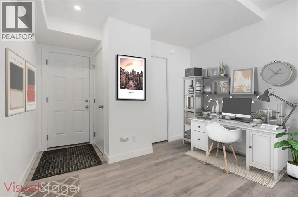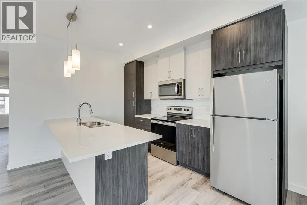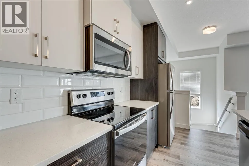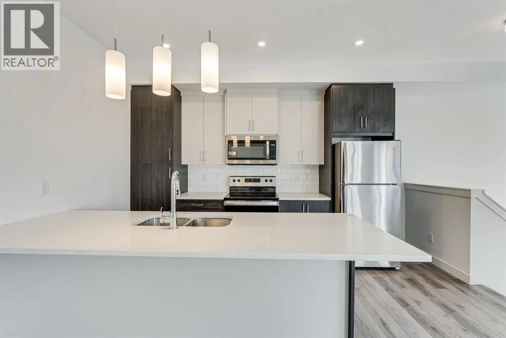 Exceptional Value in this Modern top-unit stacked townhouse in the highly desirable community of Springbank, offering 1,082 sq. ft. of stylish living space. Built in 2023, this home is in like-new condition and features 1 spacious bedroom, 1 full bathroom, a versatile main-floor office/den and a bright, open-concept living room that leads out to a big balcony with amazing views.The modern kitchen is a true showpiece, designed with both style and functionality in mind. It features two-tone cabinetry, combining light upper cabinets with rich, dark lower cabinets for a sleek, contemporary look. Quartz countertops provide generous workspace, complemented by a large island with seatingâperfect for casual dining or entertaining. The kitchen is equipped with stainless steel appliances, all seamlessly integrated for a polished, upscale appearance.Additional highlights include a subway tile backsplash, pendant lighting over the island, and Luxury Vinyl Plank (LVP) flooring that flows seamlessly throughout the main living areas. The attached oversized single garage and convenient visitor parking complete this exceptional unit.This home is ideally located across the street from Aspen Landing, offering an abundance of shops, restaurants, and amenities just steps away. With easy access to 85th Street SW, 17th Avenue SW, Stoney Trail, and the 69 Street LRT Station, commuting to Downtown Calgary or anywhere in the city is effortless.Book your private showing today and experience this stunning home in one of Calgaryâs most sought-after neighborhoods ! (id:27476)