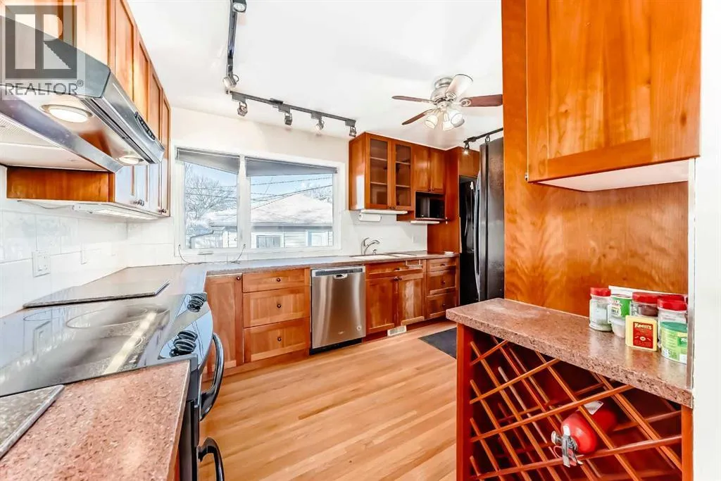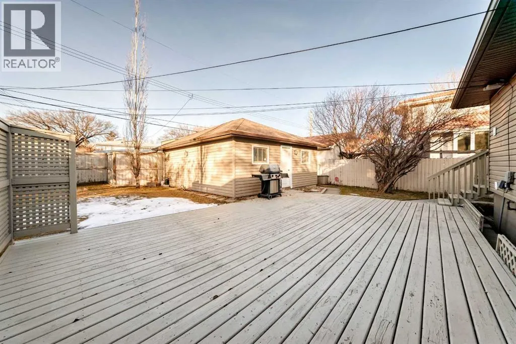 Beautifully maintained raised bungalow with a 2-bedroom illegal-suite on an unobstructed view lot. Great property to redevelop or hold as a rental. The basement has a true separate entrance for easy access to the well-laid-out suite with large living area, eat-in Kitchen, 4-piece bathroom, and it's own washer and dryer, and new flooring installed in 2025. Upstairs you have hardwood throughout, large living room, upated kitchen, 2 nice bedrooms and vinyl windows. Mechanical has been updated with a high efficiency furnce in 2023. Nice yard with multiple decks, double detached garage and a storage shed. (id:27476)
