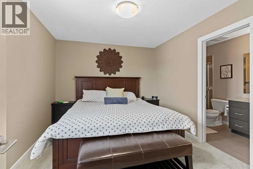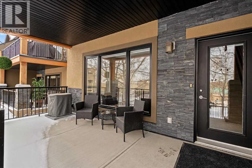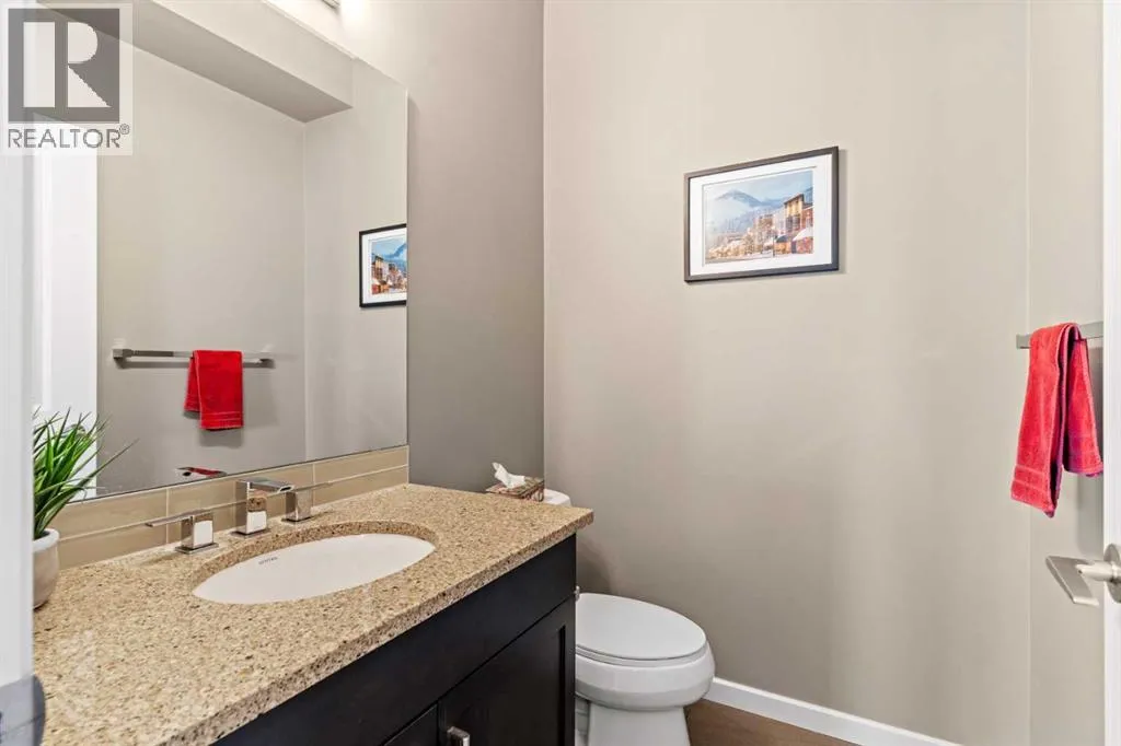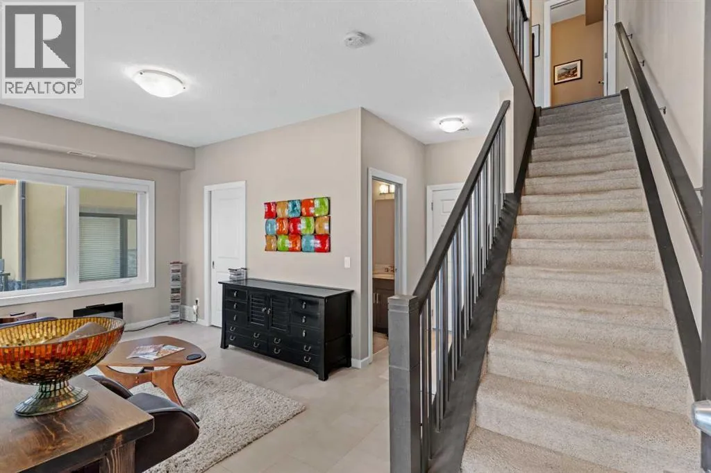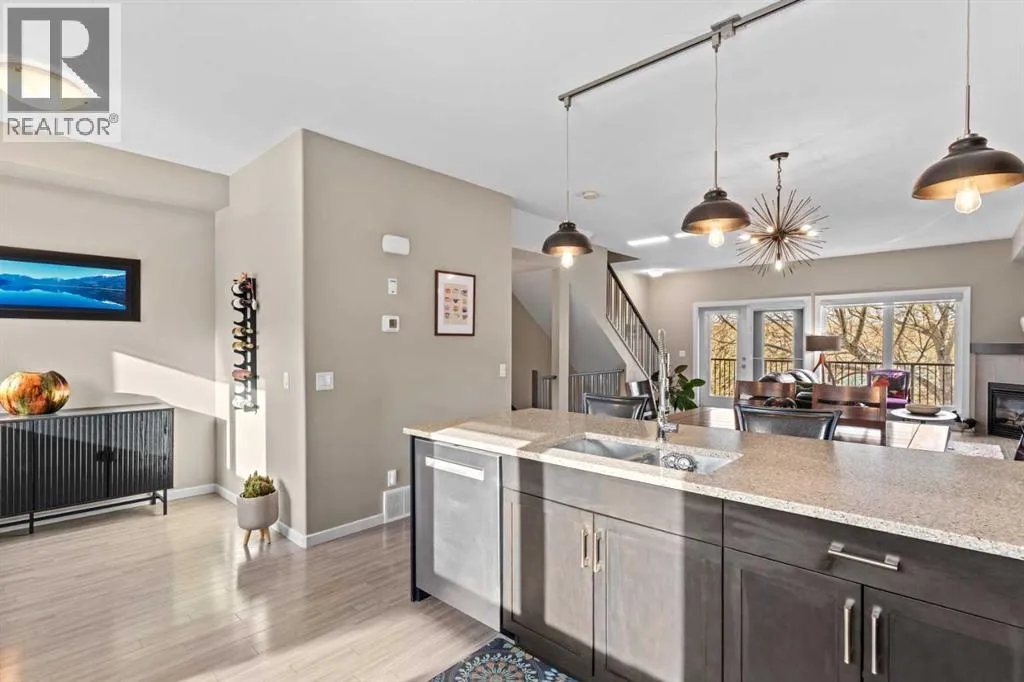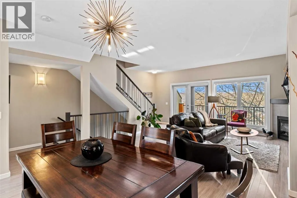 Welcome to this upscale rare 3 BEDROOM townhouse adjacent to the Valley Ridge golf course and within walking distance to the Bow River, this exquisite gem feels more like life in the country than that found in the bustling city of Calgary. This property shows 10/10 and current owners have described it as PRIVATE EACEFUL and QUIET. This welcoming townhouse greets you with a cozy basement, 2-piece bath and direct access to the double garage. Tailored for an active adult lifestyle ESTATES OF VALLEY RIDGE is +18. In addition to 9' ceilings and GLEAMING HARDWOOD throughout the MAIN FLOOR, an OPEN CONCEPT layout connects the living - dining room and kitchen. The kitchen is a GOURMET'S DREAM with tan quartz countertops, abundant cabinets, double sink, high-end STAINLESS-STEEL appliances with gas stove. The spacious dining area can easily accommodate a number of guests. The corner GAS FIREPLACE in the living room adds warmth and charm to the space. Just off the living room is a PRIVATE BALCONY, adding an outdoor living space of over 200 square feet, complete with BBQ gas line. Enjoy dining outdoors or just enjoy the serene GOLF COURSE and green space views. A 2-piece bathroom completes this floor. The UPPER LEVEL as a LARGE PRIMARY BEDROOM and sizeable WALK -IN CLOSET. It also includes 2 additional bedrooms for family and guests. Conveniently located on this level is the LAUNDERY/STORAGE ROOM with front loading washer and dryer, shelving and ample storage space. On the LOWER LEVEL a private COVERED PATIO overlooks the club house with easy access to the First Tee or walking path. The main entrance into the property is on this level, as well as access to the spacious DOUBLE CAR ATTACHED GARAGE. There is also space for 2 vehicles on the parking pad, as well there is visitor parking adjacent. A large versatile RECREATION/FLEX ROOM is just off the entrance and has been used as an exercise and TV room. There is a 2-piece bathroom and utility room on this floor. This home has been LOVINGLY CARED for and has been enjoyed by these owners. The LOCATION is one of the best in the city! Easy access to Highway 1 (2min) and approximate travel time Canmore (45min); city center (25min); bus transit (3min); Tuscany LRT (11 min); Stoney Trail (3 min); YYC airport (30 min). Valley Ridge is a STRIKINGLY BEAUTIFUL COMMINITTY with over 50% GREEN SPACE, wildlife and many outdoor activities to enjoy. Please contact your REALTOR and arrange a viewing of this gorgeous townhouse. " Sellers are open to selling all the furniture if needed" . It also comes with a new AC & Hot water tank. (id:27476)