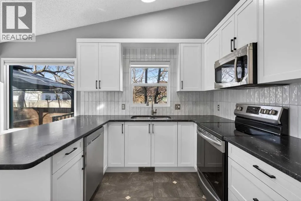 *OPEN HOUSE SUNDAY FEBRUARY 15 FROM 1PM-4PM* This corner-lot former showhome in Douglasdale is perfect for growing families that want space for kids to grow and a renovated home with big updates already handled. Inside, the kitchen has been newly renovated and expanded with built-in cabinets across the entire side wall that serves perfectly as a coffee station/dry food storage. The floors were fully refinished, keeping the high quality feeling of real hardwood while giving it a modern look. All carpet is new (2026) and thicker than most, making it noticeably more comfortable and warmer during colder months. Upstairs there are three bedrooms, one being a primary with its own 3-piece bathroom and walk in closet. Upstairs also includes a full bathroom for the other two bedrooms to share. A fourth bedroom and 3 piece bathroom are located on the lower level, perfect for guests, older kids, or a home office. The basement has a large recreation room that can be used as a play area, media room, or extra living space. Outside, the backyard is set up to be low maintenance with thoughtful features making it easy to enjoy. There are motion-sensor lights across the side entrance fencing that light up automatically at night when someone walks by, which is nice for both safety and convenience. There's also a shed for extra storage. Important safety and quality of life updates have already been taken care of including full replacement of entire Poly-B piping system (2025) for peace of mind, a newer hot water tank (2023), newer windows, custom honeycomb blinds on nearly all windows, and air conditioning. With the major updates already done, this is a home you can move into and enjoy without worrying about big projects. (id:27476)