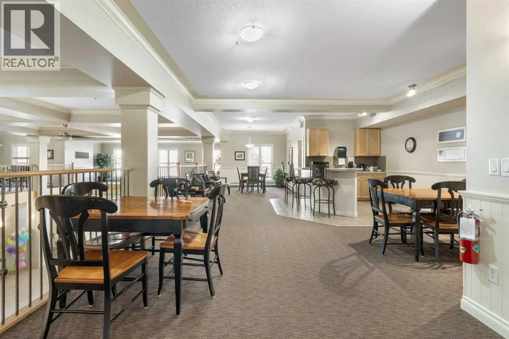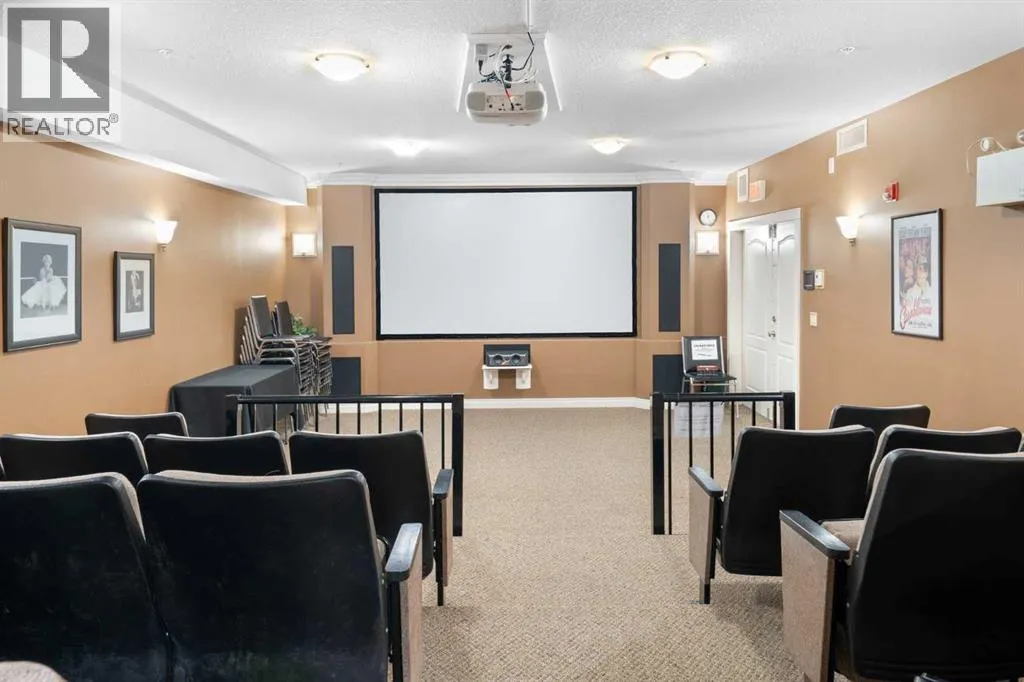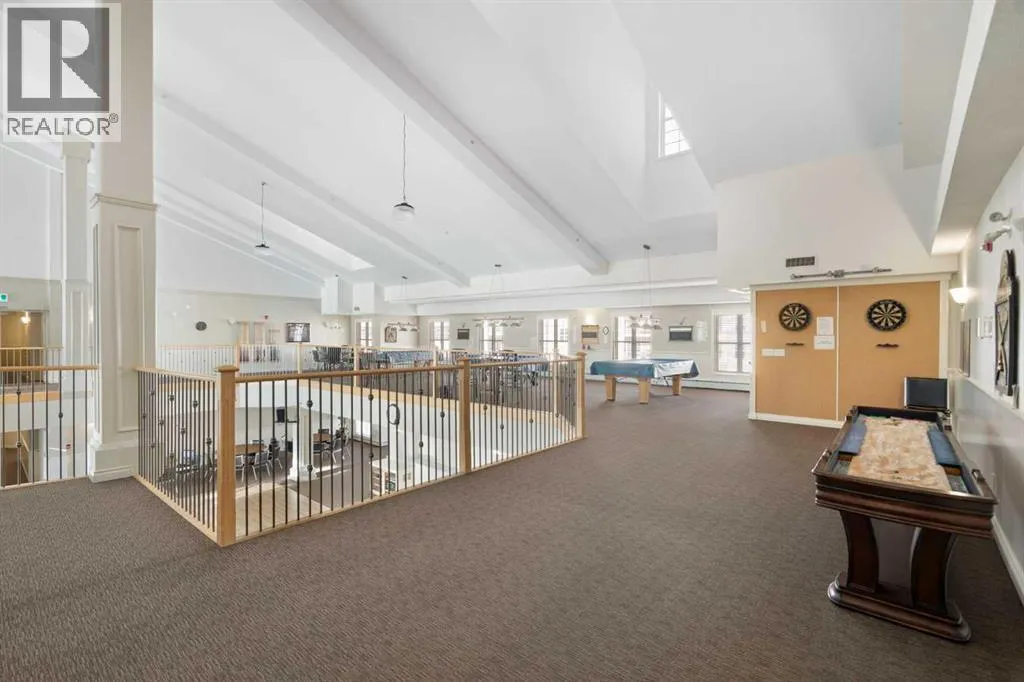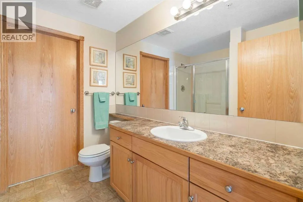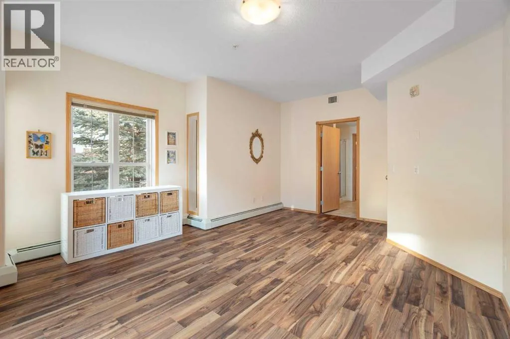 Welcome to Country Estates on the Cove, a well-managed 40+ adult community offering an exceptional blend of comfort, convenience, and resort-style amenities. This bright corner unit with 2 bedrooms and 2 full bathrooms is quite spacious with over 1300 sq ft of air conditioned living space. This former show home features a thoughtfully designed layout and includes one titled underground parking stall along with an assigned storage locker. Inside, the welcoming entryway opens into a spacious open-concept living and dining area, where a cozy fireplace creates an inviting atmosphere. Laminate flooring flows throughout the main living spaces, enhancing the homeâs clean and modern feel. The kitchen is both functional and welcoming, with a corner pantry, a newer microwave and a breakfast bar, ideal for casual dining or entertaining. The primary bedroom offers a relaxing retreat with plenty of room to unwind with a large walk-in closet with built-in organizers. The lovely private 3 piece ensuite has an oversized walk-in shower and lots of counterspace and storage. The second bedroom is generously sized and located near the 4-piece main bathroom, perfect for guests or a home office. A spacious laundry room includes a stackable newer washer and dryer and ample storage space. Residents of Country Estates on the Cove enjoy access to an impressive array of amenities, including a fully equipped fitness centre, indoor pool, hot tub, recreation rooms, games area with billiards & shuffleboard, a bowling alley, theatre/movie room, libraries, woodworking shop, and crafts room. Guest suites are available for visiting family and friends, and the buildings also offers several elevators and a convenient car wash bay. Ideally located near shopping, parks, ponds, green spaces, and scenic walking paths, with easy access to Deerfoot Trail, Stoney Trail, public transit, and the airport, this home offers low-maintenance living in a welcoming, amenity-rich community. This is the perfect retireme nt home without sacrificing space! (id:27476)
