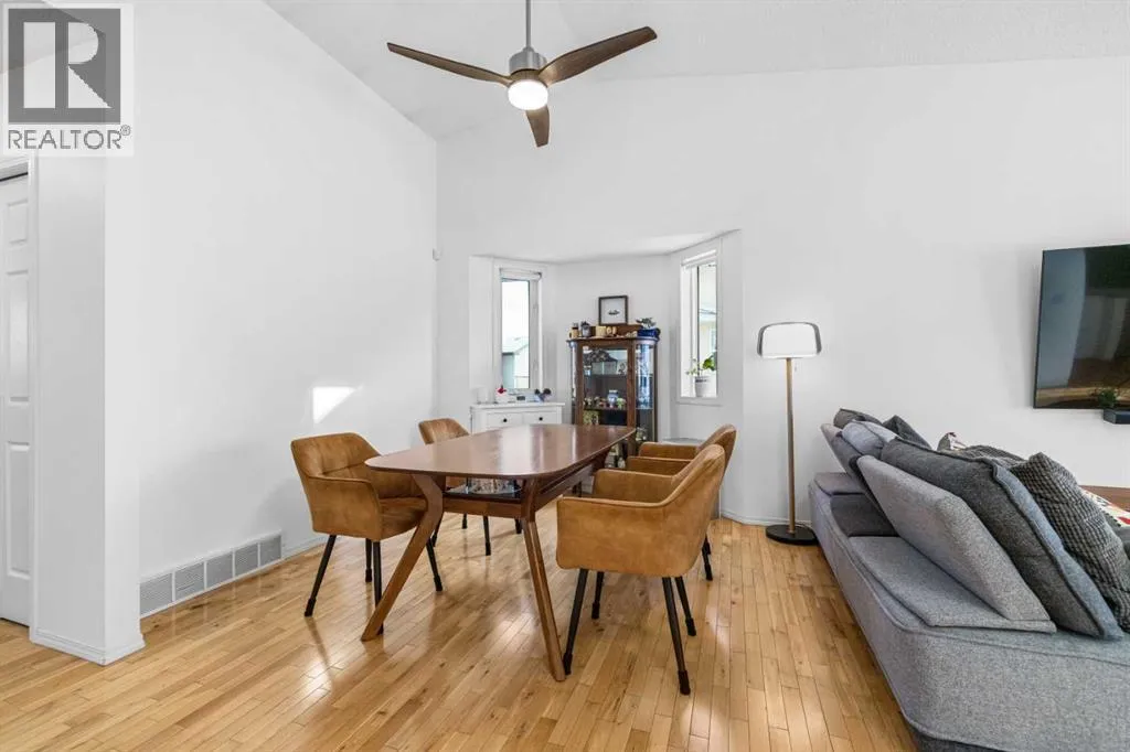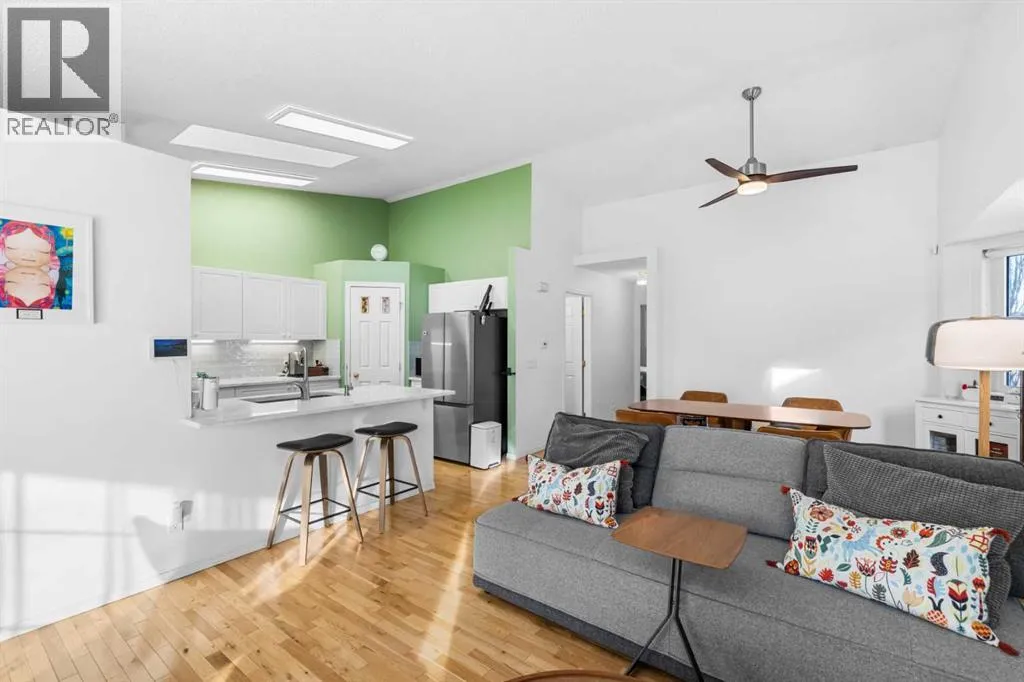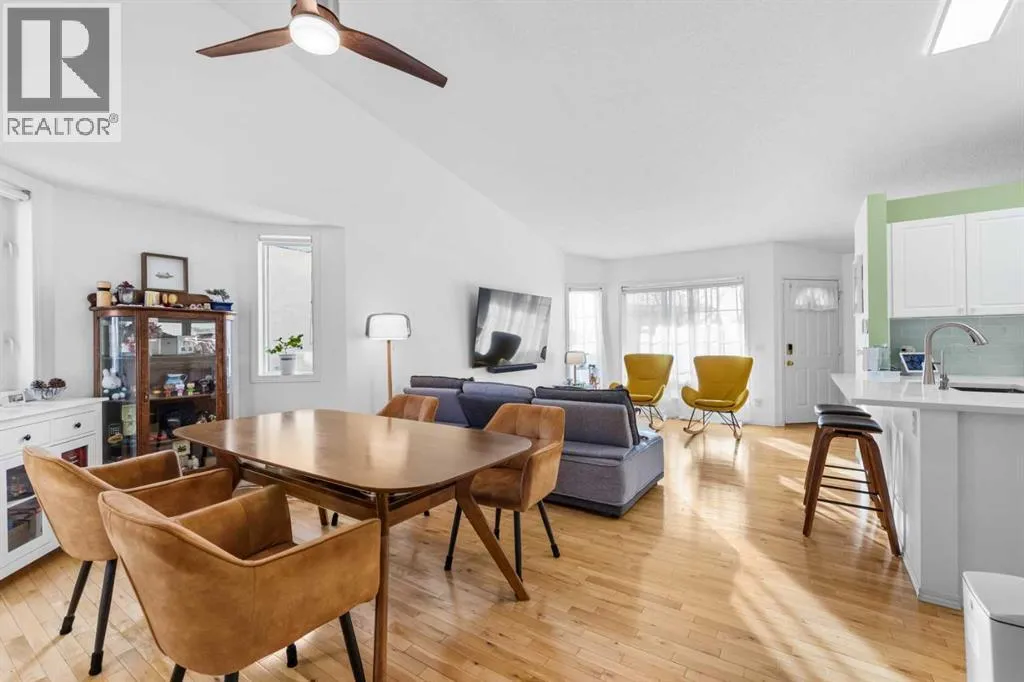 A rare opportunity to own in this highly sought-after complex in the community of Harvest Hills. This immaculate bungalow villa is ideally suited for empty nesters and offers an attached single garage with a paved driveway providing additional parking. This property is not a condominium. Affordable monthly HOA fees of $231 include snow removal, landscaping and lawn care, common area maintenance, common insurance, and professional management. Located in a quiet and desirable 55+ age-restricted community where homes are seldom available, this residence demonstrates exceptional pride of ownership. Numerous recent upgrades include brand-new roof shingles (2025), brand-new eavestroughs (2025), a water pressure monitor (2025), comprehensive Poly B pipe replacement throughout the property (2022), a reverse osmosis system (2022), fresh paint throughout (2022), quartz countertops throughout (2022), an upgraded 800 CFM hood fan (2022), a new kitchen skylight (2024), and upgraded kitchen lighting (2026). Situated on a peaceful cul-de-sac, the home features a bright and open-concept main floor with vaulted ceilings in the living room, dining area, and kitchen. The recently renovated gourmet kitchen is beautifully appointed with quartz countertops, a glass subway tile backsplash, under-cabinet lighting, a powerful hood fan, and a generous pantryâideal for both daily living and entertaining. Natural oak hardwood flooring and abundant natural light enhance the main level throughout. The main floor offers 944 sq. ft. of thoughtfully designed living space, including two bedrooms and a 4-piece main bathroom. The spacious primary suite features a walkthrough closet, while the generous second bedroom includes a large window and an exterior French door leading to a full-width deck overlooking the backyard and adjacent green space. The fully developed basement provides a large family/recreation room with a cozy free-standing fireplace, a spacious bedroom, a 3-piece bathroom, ample storag e, and built-in shelving in the laundry/utility area. The recreation room can easily be reconfigured to accommodate a fourth bedroom, if desired. Enjoy quiet summer evenings on the private deck, take in beautiful sunsets, and even admire the Northern Lights from the comfort of your home. This exceptional property offers a serene setting with easy access to public transit and convenient routes to Country Hills Boulevard, Deerfoot Trail, and Stoney Trail. Located within minutes to T&T Supermarket, Tim Hortons, McDonaldâs, Superstore, Sobeys, and much more! Be sure to view the Virtual Tour for a complete experience. Donât miss this opportunity to own this Beautiful Home! (id:27476)