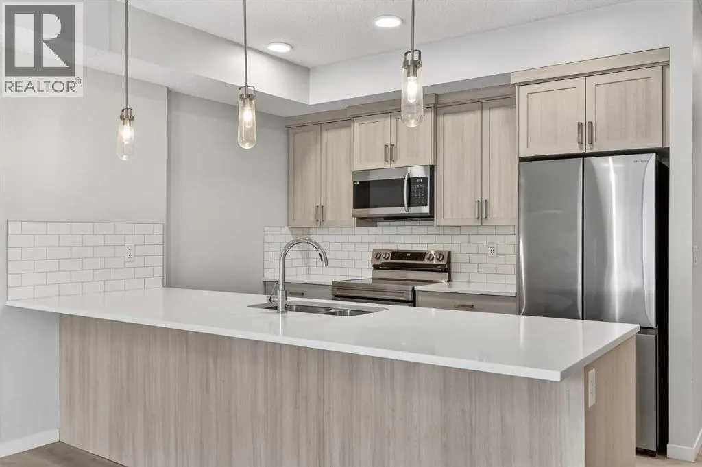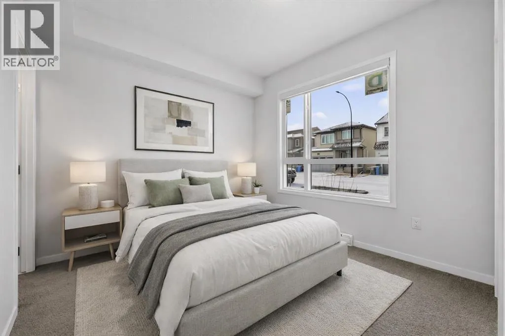 Welcome to this modern main floor walkout condo built by Cedarglen in 2024, located in the vibrant and growing NW community of Carrington. Unit includes 1 titled parking and assigned storage locker. This thoughtfully designed 2 bedroom, 2 full bathroom home offers approximately 780 sq ft of comfortable, functional living space with a bright open-concept layout that makes everyday living easy. The main floor walkout adds a rare sense of convenience and connection to the outdoors, perfect for morning coffee, pets, or simply enjoying a bit of fresh air without stairs or elevators. Inside, youâll find contemporary finishes throughout, a stylish kitchen with clean modern lines, and a smart floor plan with well-separated bedrooms that works well for couples, roommates, or guests. Carrington is known for its wide streets, new parks, pathways, and strong sense of community, with quick access to major roadways, nearby shopping, and future amenities as the neighbourhood continues to grow. This is an ideal option for first-time buyers or downsizers looking for low-maintenance living in a newer, well-planned community they can grow into. (id:27476)