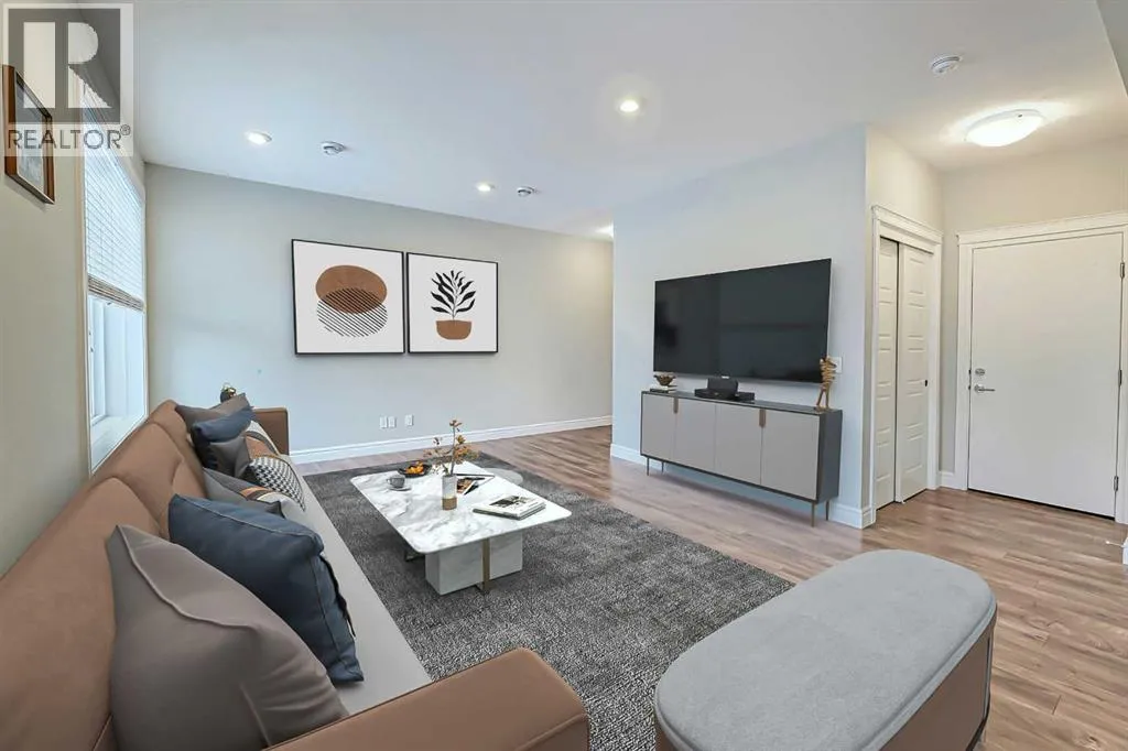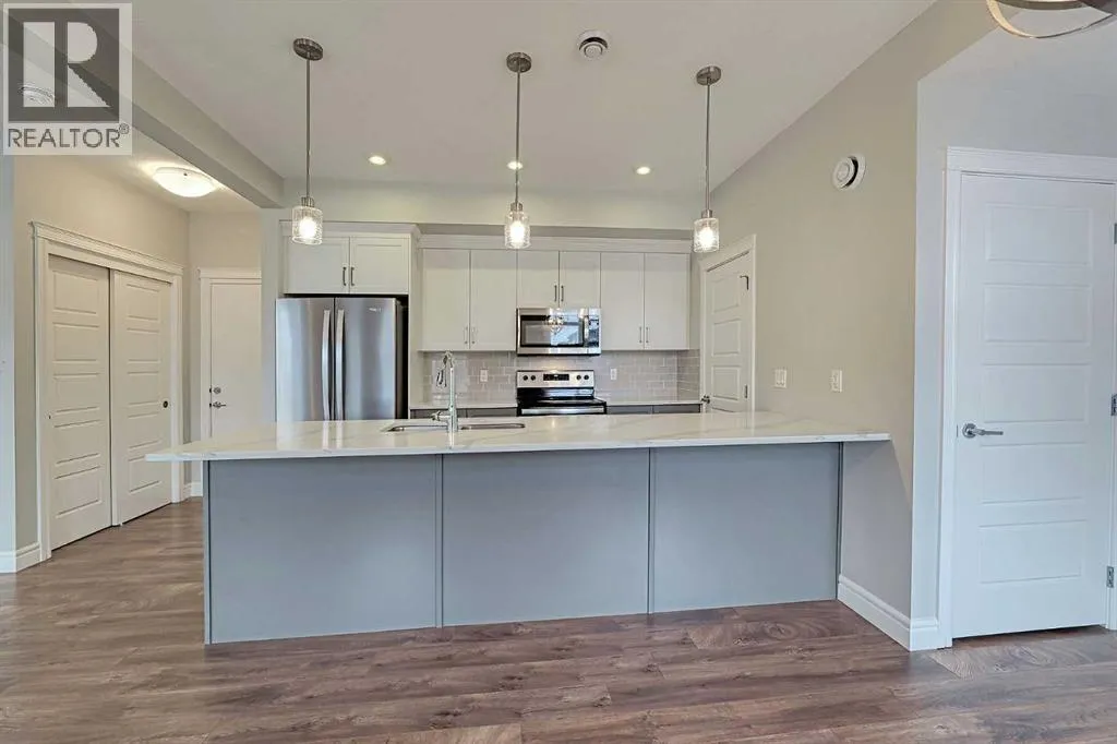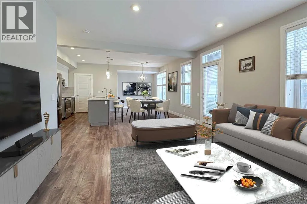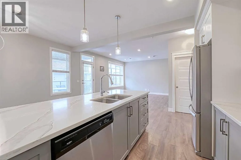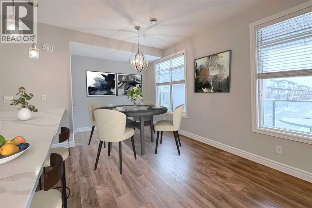 Incredible value in this beautifully appointed townhome within walking distance to an array of amenities (parks, restaurants, shops, YMCA, Joane-Cardinal Schubert high school). Offering 1,552 SF of functional living space with 3 bedrooms, 2.5 bathrooms and an attached double garage, this unit is sure to impress! The bright and open main floor features gorgeous vinyl plank throughout, wall to wall windows, a powder room, living room with access to the balcony and smooth transition to the spacious dining room and chef's kitchen complete with stainless steel appliances, over-sized island with eating bar, quartz countertops and a walk-in pantry. Upstairs you will find the Primary bedroom with walk-in closet and 4 piece ensuite, a conveniently located laundry room and 2 additional guest rooms (one with a private balcony) which share a 4 piece bathroom. Enjoy low maintenance living without sacrifices! Book your showing today! (id:27476)