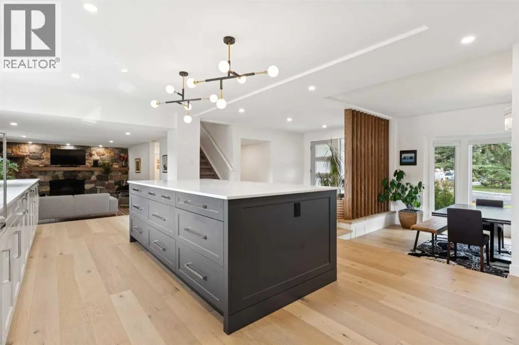 Welcome home to Lake Erie Way! Situated in the exclusive 'Estates area' of Lake Bonavista this home sits on a 9429 sq/ft lot. Professionally renovated and builder occupied home has been completely re-imagined. Taking a traditional Lake Bonavista family home with timeless character and blending it with modern luxury. The open-concept main floor showcases a chefâs dream kitchen with a 6-burner Wolf gas range, Sub-Zero fridge, Miele dishwasher, walk-in pantry, Legacy cabinetry, LED lighting, and a massive centre island & large windows overlooking the beautifully landscaped west-facing backyard. Off the kitchen there is also a home office with patio doors to the backyard. A sunken dining room with expansive windows highlights the green space across the street, while the spacious living room features the original stone wood-burning fireplace with patio doors that open to a covered outdoor retreat. Tucked behind a hidden wall, youâll find a thoughtfully designed mudroom with custom storage and full walk-in closet and access to the garage. Wide-plank engineered hardwood flows seamlessly throughout the main floor.Upstairs offers two generous childrenâs bedrooms, a 5-piece bath with double sinks and separate water closet, a convenient full laundry room with sink and storage, and a luxurious primary suite with walk-in closet, private rooftop patio, and a spa-inspired ensuite featuring heated floors, curb-less walk-in shower, soaker tub, double sinks, and private water closet.The fully finished basement adds even more living space with two additional large bedrooms, a 3-piece bath with walk-in shower, an expansive family/games room, and an oversized storage area that could easily be converted into a home gym.Notable upgrades include: all new windows and doors (2020), new hot water tank (2020), flat ceilings throughout, LED pot lights and fixtures, two high-efficiency furnaces with A/C and high-end Legacy cabinetry. Located in one of Calgaryâs most prestigious and sough t-after lake communities! Residents enjoy exclusive access to a private four-season lake where you can swim, skate, fish, and take in year-round activities. Surrounded by mature tree-lined streets, top-rated schools, parks, and amenities, this is the perfect setting for families seeking both lifestyle and community.This is more than a homeâitâs a lifestyle. Move-in ready and designed for modern family living, this Lake Bonavista gem is the perfect place to create lasting memories. (id:27476)