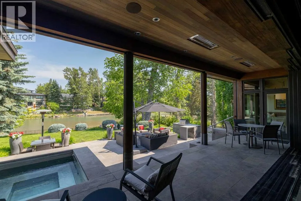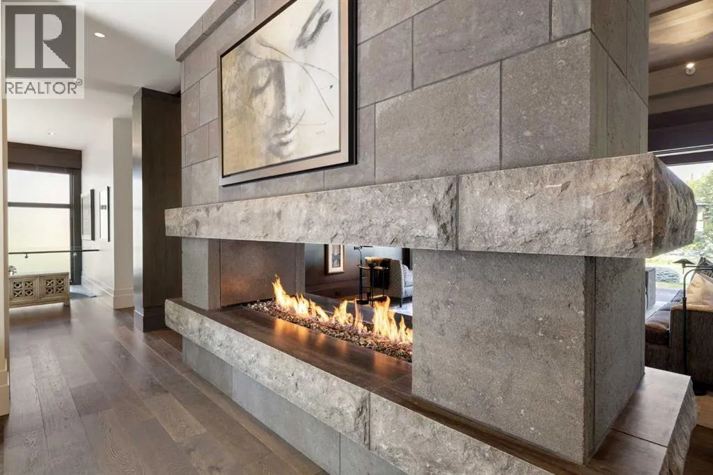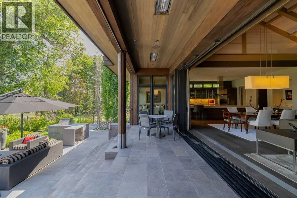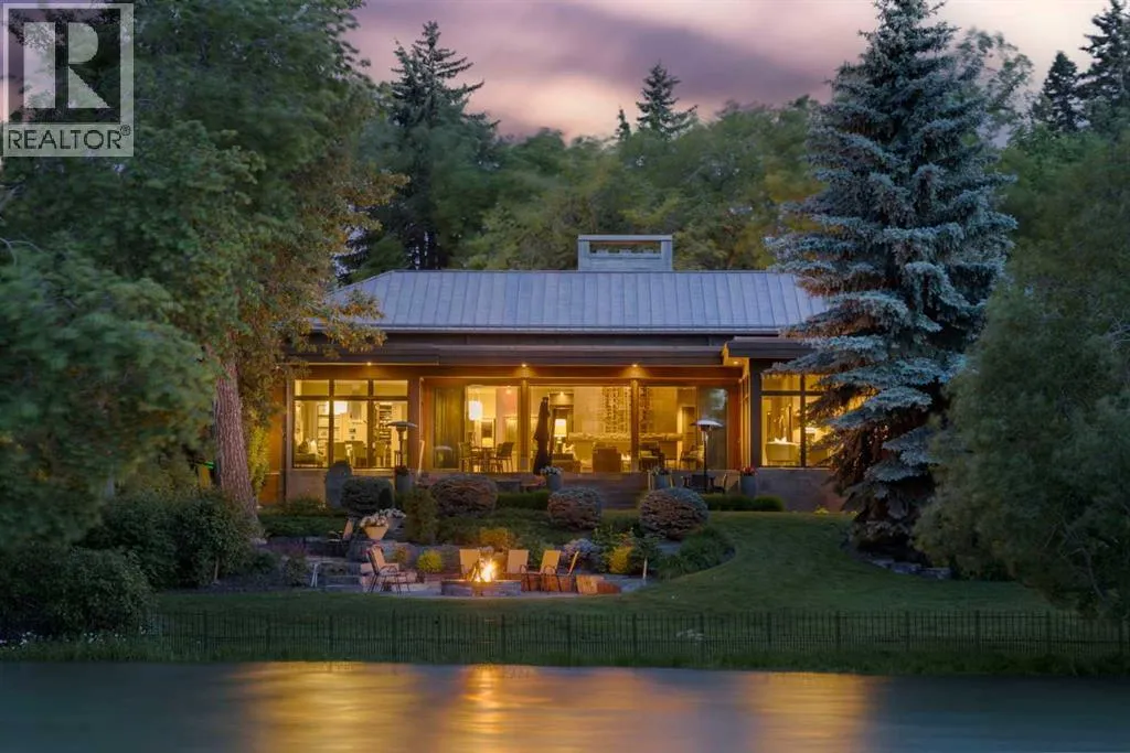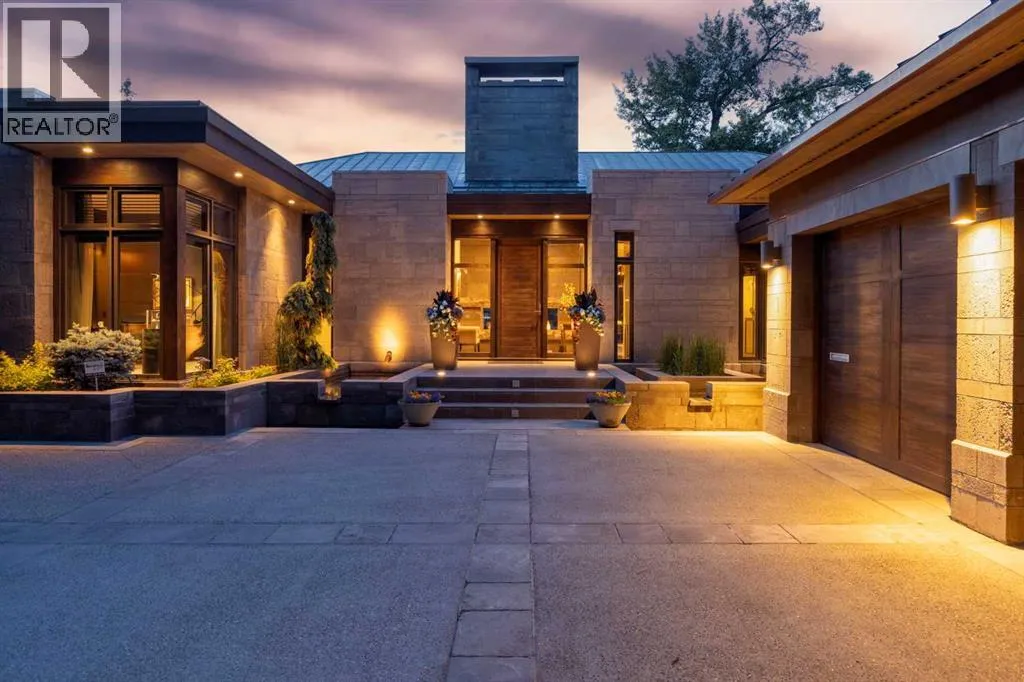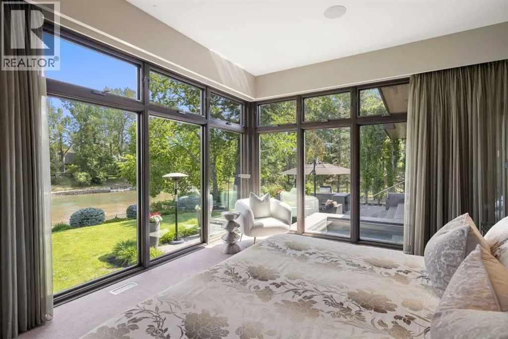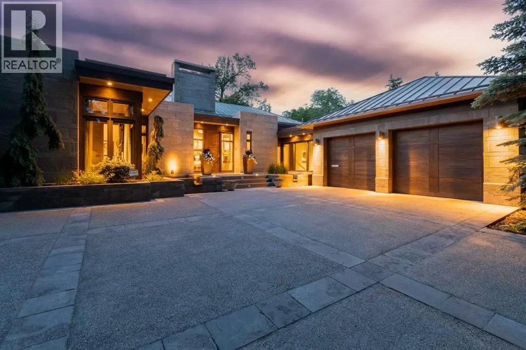 A rare offering where modern architecture & meticulous execution meet on one of Elbow Parkâs most prized riverfront lots. Situated on a coveted tree-lined street steps from river pathways, parks, top schools, vibrant restaurants & the downtown core, this is a once-in-a-lifetime opportunity to own one of Calgaryâs most architecturally significant homesâa perfect harmony of design, craftsmanship, & location.Thoughtfully designed by award winning architect Mark Burkart and custom built by Mission Custom Homes, this extraordinary residence offers over 6,600 sq ft of refined living space. The design is quietly sophisticated, blending natural materials & light-filled spaces to create a home of remarkable beauty & comfort. The exterior, clad in warm silver-to-charcoal Saint Marc limestone, copper roofing, and Meranti hardwood soffits lends a sense of permanence and quiet strength evoking the spirit of a small modern museum. A front courtyard with a tranquil reflecting pool invites you into the home, while the rear terrace creates a serene outdoor retreat overlooking the Elbow River. Inside, elegant proportions and rich finishes create an atmosphere of understated luxury. Soaring 19' ceilings define the great room, where a monumental limestone fireplace serves as a stunning focal point. A 30' retractable glass wall opens entirely to a heated limestone terrace with phantom screens, infrared heaters, & built-in speakers, perfect for year-round enjoyment and effortless indoor-outdoor living. The chefâs kitchen is both functional & striking, featuring custom tigerwood cabinetry, a cantilevered 13â Caesarstone island, and top-of-the-line Gaggenau and Miele appliances. A walk-in pantry, wet bar, & seamless flow to the dining area make the space ideal for entertaining or everyday living. The primary suite is a private riverside sanctuary with floor-to-ceiling windows, silk wall coverings, & heated marble floors. Its spa-caliber ensuite offers Bianca Carrera marble, a steam show er, a freestanding tub & a walk-in closet with custom cabinetry. Two exceptional home offices, a beautifully appointed laundry room, & an exquisite powder room complete the main floor. The lower level continues the homeâs thoughtful design with a floating oak staircase, spacious family/rec room anchored by a stunning four-sided limestone fireplace, three bedrooms each with a full ensuite, a professional-grade gym, a custom wine room & a 12-foot wet bar. Radiant in-floor heating & elevator access ensure comfort & convenience on every level. Advanced mechanical and smart home systems provide comfort & security, Crestron AV, Lutron lighting, triple-pane Lowen windows, a heated driveway, Viessmann boilers, a water filtration system, & backup generator. Professionally landscaped, the outdoor living spaces include three distinct patio areas: a limestone-encased hot tub, a rundle stone firepit patio surrounded by lush perennial gardens & built-in BBQ area. More than a home, this residence is about a lifestyle. (id:27476)