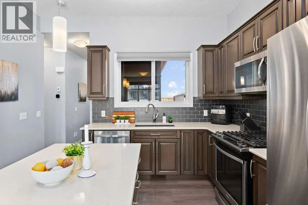 Opportunity knocks to purchase THE LOWEST PRICED detached home in the sought after lake community of Mahogany. Why pay condo fees, when you OWN your home? Create easy equity by building a garage when the time is right for you. This beautifully upgraded 3-bedroom, 2.5-bathroom bungalow has almost 1,900sqft of TOTAL LIVING SPACE and is packed with thoughtful features, including AC, a HUMIDIFIER, SMART THERMOSTAT, WATER SOFTENER, Heat recovery ventilator (HRV) SYSTEM FOR IMPROVED AIR QUALITY AND EFFICIENCY, and NEW CARPETS. Step inside to a bright, open-concept main floor with soaring ceilings and LARGE WINDOWS that flood the home with natural light. The gourmet kitchen is a chefâs dream, showcasing sleek QUARTZ countertops, a GAS STOVE, premium STAINLESS-STEEL APPLIANCES, a stylish tile backsplash, and a central islandâideal for entertaining or everyday living. A spacious pantry provides plenty of functional STORAGE. The main floor also offers an inviting living room and dedicated dining area, along with a private primary retreat featuring large closets and a luxurious 4-piece ensuite with dual sinks and a glass-enclosed shower. A convenient MAIN- FLOOR LAUNDRY room, 2-piece powder room, and LUXURY VINYL PLANK FLOORING complete this level. Downstairs, the FULLY FINISHED basement delivers exceptional versatility with a rec room WIRED FOR SPEAKERS, TWO BEDROOMSâeach with WALK IN CLOSETSâand a modern 4-piece bathroom. Enjoy faster connectivity with upgraded CAT 6 ETHERNET WIRING, making this space perfect for guests, working from home, teens, or hobbies. Outside, relax and entertain in the private backyard oasis featuring LOW â MAINTENANCE LANDSCAPING, raised garden beds, a spacious patio, a BBQ GAS LINE, and a covered GAZEBO with curtains. The FULLY FENCED yard also includes a gravel PARKING PAD with ample space to park a vehicle in front of the large storage shedâa rare setup that highlights the generous lot size and smart layout. As a BONUS, the 2026 LAKE FEES have be en PAID! Just kick back and relax in your new home! (id:27476)
