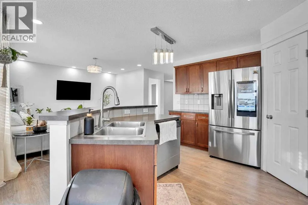 Awesome location! This bright and spacious 2-storey home is situated on a quiet street and has been newly painted with brand new laminate flooring throughout. The main floor offers a large open-concept kitchen featuring newer stainless steel appliances, new lighting, ample cabinetry, and a huge corner walk-through pantry leading to a generous laundry/mudroom with direct access to the double attached garage. The dining area overlooks the family room and is complemented by a study/office and a convenient powder room, making this level both functional and inviting. Upstairs, youâll find a massive bonus room with large windows and a cozy gas fireplace, perfect for relaxing on cold winter nights. The primary bedroom easily accommodates king-size furniture and includes a sitting area. The spa-like ensuite features a soaker tub, separate shower, and a spacious walk-in closet. Two additional good-sized bedrooms, a deep linen closet, and a full 4-piece bathroom complete the upper level. The fully finished basement offers two good-sized bedrooms, a recreation room, and a 3-piece bathroom, providing excellent space for extended family or guests. (id:27476)