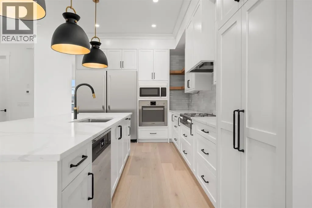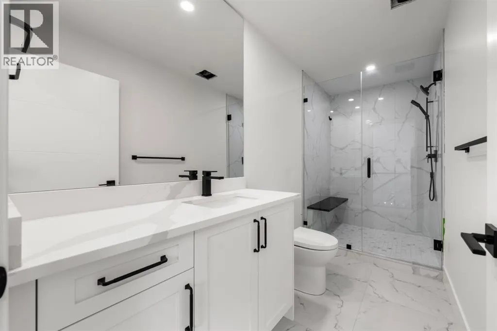 ELEVATOR | FULLY LANDSCAPED | INSULATED & DRYWALLED ATTACHED GARAGE | SOUTH BACK YARD | DESIGNER LIGHTING | ENGINEERED HARDWOOD | ELEVATOR | HIGH-END KITCHEN | CUSTOM BUILT-INS | HIGH-EFFICIENCY | 5 BEDROOMS & 4.5 BATHROOMS | FINISHED BASEMENT WITH HEATED FLOORS | LAVISH ENSUITE WITH HEATED FLOORS | OUTSTANDING LOCATION | DOWNTOWN VIEWS | This impressive brand new, Three storey home with just under 3600 sqf of living space is located in the sought after neighbourhood of South Calgary. Pristine design with modern finishings, exquisite attention to detail, and contemporary final touches. This home includes an elevator with access to all 4 floors, oversized windows that brightens the foyer, living room, formal open dining room, high-end kitchen, mudroom & natural light from front to back. The kitchen has designer finishes, quartz contertop that can seat 6 individuals, upgraded stainless steel appliances such as a gas cooktop, convection walloven and microwave. The second floor invites you to explore three bedrooms, a full-size upper floor laundry room, five-piece ensuite, a four-piece bath, a lavish & relaxing master retreat w/custom walk in closet and magnificent ensuite with a large soaker tub, double vanity & custom shower. The third level has an additional bedroom and four-piece bath as well as a large flex room that leads to a rooftop patio with downtown views. The lower level includes a recreation room, a full three-piece bath and fifth bedroom. The backyard is a multi-tiered yard with a patio to enjoy the summer nights. (id:27476)