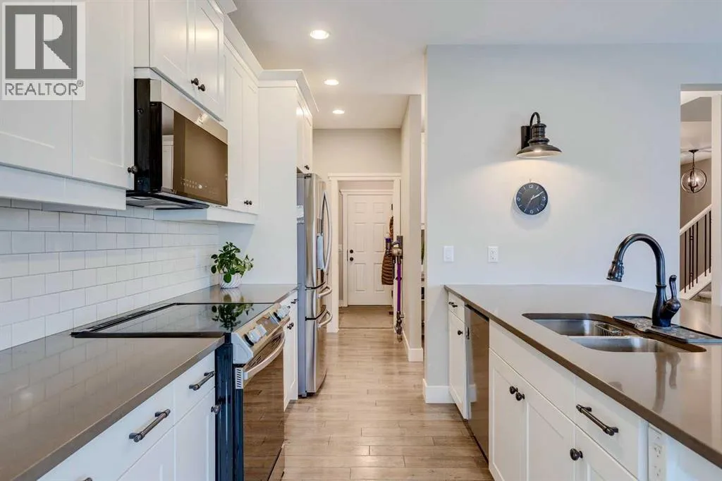 Welcome to your Lakeside Dream Home!Just steps from the Beach, Clubhouse, and Park Areas, this stylish 3+1 bedroom family home combines comfort and quality in every detail. The open main floor boasts 9â ceilings, hardwood floors, and a cozy gas fireplace, plus a convenient main-floor office. The chef-inspired kitchen offers quartz counters, a large peninsula, stainless appliances, and a butlerâs pantry. Upstairs, enjoy a bright bonus room, upper laundry, and three spacious bedrooms â including a luxurious primary suite with double sinks, soaker tub, and separate shower.The fully finished basement adds a large rec room, full bath, and 4th bedroom â perfect for guests. Outside, the south-facing backyard is built for entertaining, with a deck, patio, gazebo, and zero-grass landscaping for easy maintenance. Complete with great curb appeal, rear lane access, and walkable access to schools, shopping, and restaurants â This one Checks all the Boxes! (id:27476)
