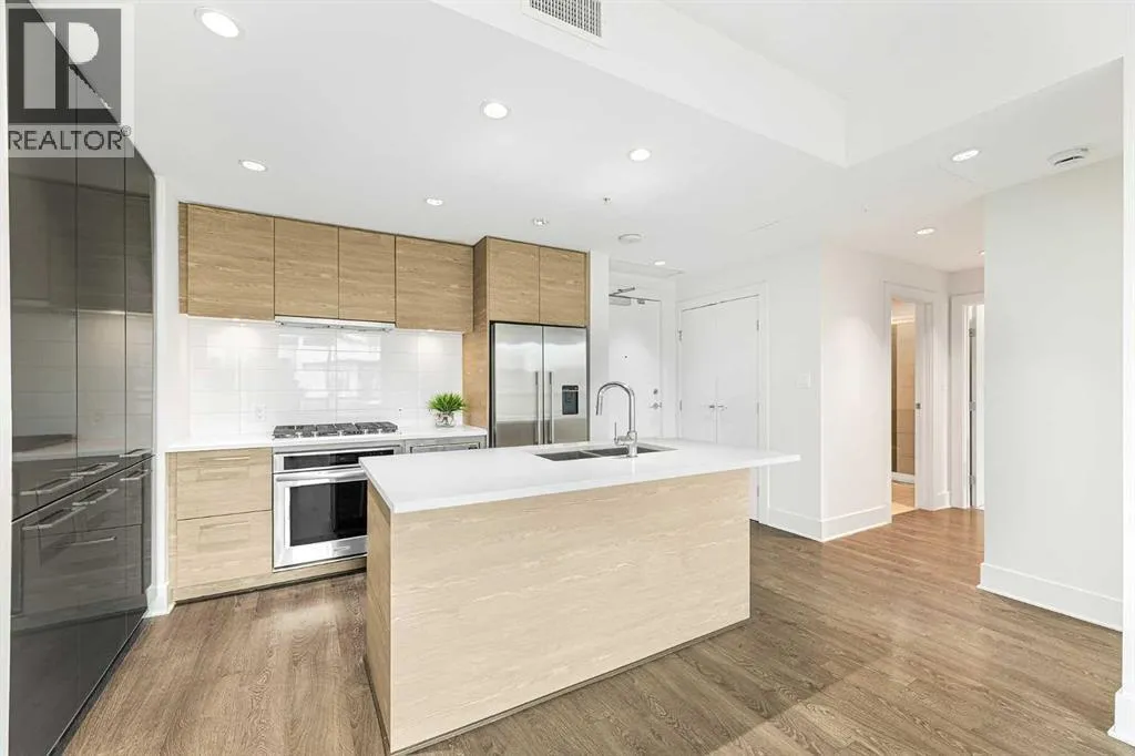 Experience the best of urban living in this stunning condo, perfectly positioned just steps from the LRT, downtown Calgary, and the lively, sought-after Bridgeland community. Freshly painted and truly move-in ready, this home delivers modern style, effortless comfort, and unbeatable convenience.Step inside and feel the energy of this bright, open-concept 2-bedroom, 2-bathroom layout with amazing views of downtown Calgary. The sleek chefâs kitchen is a showstopper, featuring premium stainless steel appliancesâgas cooktop, wall oven, built-in microwaveâand a spacious island thatâs perfect for cooking, hosting, or grabbing a quick bite. Extra built-in cabinetry adds both function and flair. With central A/C, youâll stay cool all summer long, and the expansive living area creates the perfect backdrop for entertaining or unwinding after a busy day.The primary bedroom offers a generous walk-in closet and ensuite bathroom with walk-in shower, while the second bedroomâideal for guests or a home officeâboasts impressive downtown views and sits next to a stylish 4-piece bathroom complete with a relaxing soaker tub/shower combo. This unit also includes a titled underground parking stall, a same-floor storage locker for added convenience, and plenty of indoor visitor parking for your guests.The building is packed with amenities designed to elevate your lifestyle: a fitness room, guest rental unit for family visits, party room and theatre including private BBQ and garden patio areaâall at your fingertips. Your condo fee also includes heat, water and gas!Love the outdoors? Youâre just steps from the Bow River and its scenic pathway system, perfect for cycling, jogging, or peaceful evening strolls. And when itâs time to explore, Bridgelandâs trendy restaurants, cozy cafés, local pubs, and vibrant community scene are right outside your door.Whether you're commuting downtown, discovering the charm of Bridgeland, or relaxing in your stylish new home, this condo delivers the perfect blend of excitement, comfort, and modern living. (id:27476)