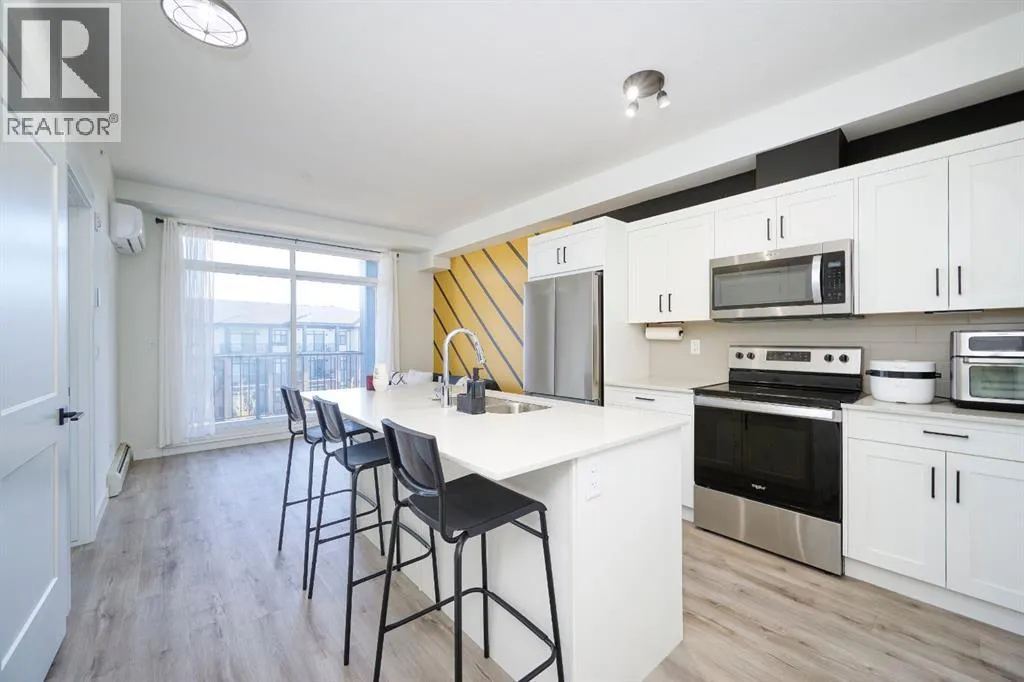 INCREDIBLE VALUE in this STUNNING TOP 2 FLOOR 2 bedroom condo! This SLEEK and MODERN home has been IMPECCABLY MAINTAINED, offering STYLE and COMFORT throughout. Step inside to discover a spacious kitchen complete with STYLISH CABINETS, LUXURIOUS QUARTZ COUNTERTOPS, STAINLESS STEEL APPLIANCES, and a functional ISLAND.The LARGE WINDOWS and 9-FOOT CEILINGS create a bright and airy atmosphere, while the SPACIOUS BALCONY with a GAS LINE FOR BBQ provides the perfect outdoor retreat for relaxing or entertaining friends.Enjoy the convenience of TITLED UNDERGROUND PARKING and an ASSIGNED STORAGE LOCKER. This prime location is just steps away from SHOPS, DINING, ENTERTAINMENT, YMCA, SOUTH HEALTH CAMPUS, and the impressive 130,000 SQ FT URBAN DISTRICT, your new neighbourhood offers endless possibilities!Plus, residents enjoy access to an ON-SITE DOG PARK and plenty of VISITOR PARKING.This condo is the perfect blend of LUXURY AND CONVENIENCE, making it an ideal INVESTMENT, FIRST-TIME HOME, or DOWNSIZE OPPORTUNITY. Donât miss out on this TOP FLOOR UNIT WITH NO NEIGHBOURS ABOVE! (id:27476)