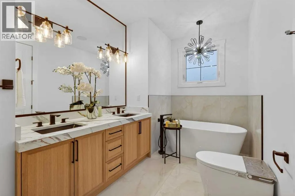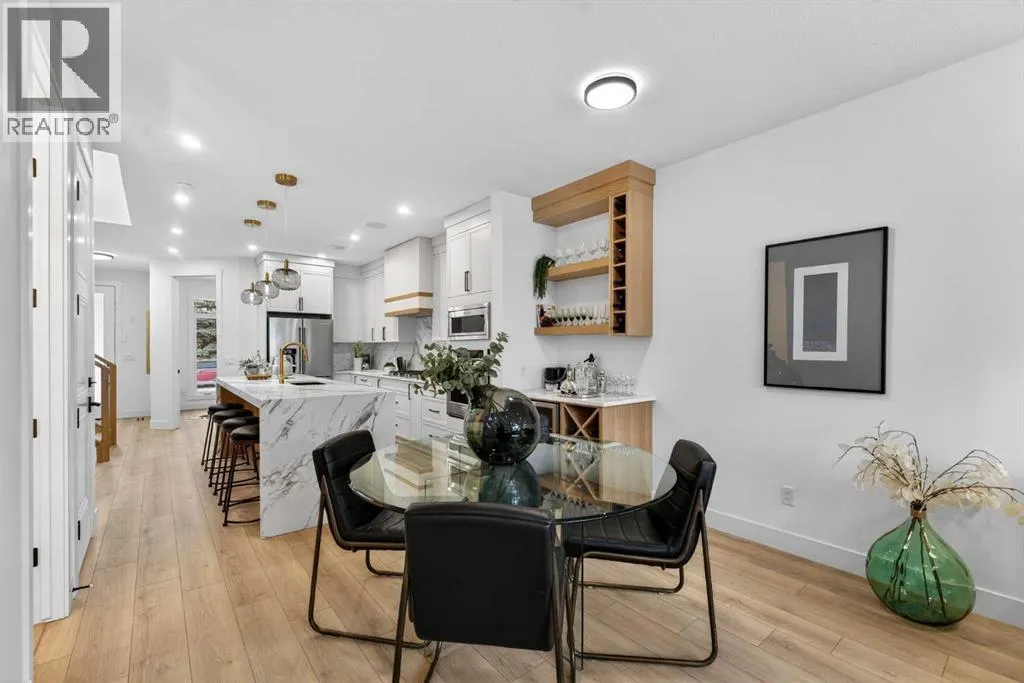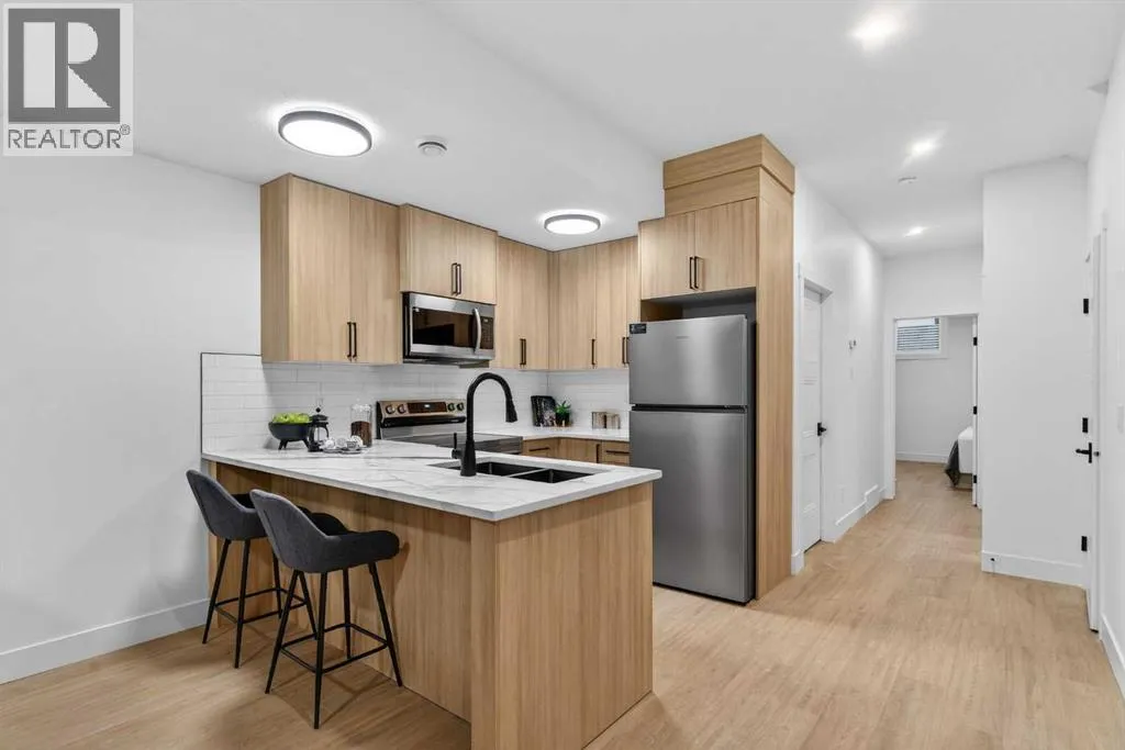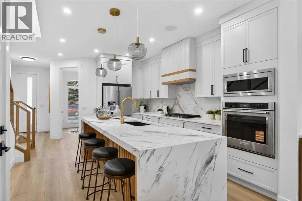 Welcome to the heart of Capitol Hill, one of Calgaryâs most established and centrally located inner city neighbourhoods. This newly built semi detached home offers approximately 2,500 sq ft of well planned living space, including a basement legal suite, designed to balance modern style with everyday functionality. The main level features a thoughtful layout with a dedicated front office, ideal for working from home, while large windows throughout provide excellent natural light. The kitchen is both practical and refined, showcasing KitchenAid appliances, custom cabinetry, quartz countertops, and a clean full slab backsplash that delivers a seamless and modern finish. The kitchen and dining areas are designed for efficiency and comfort, flowing naturally into the living room for relaxed daily living and entertaining. Upstairs, the primary suite offers a private retreat with a spacious walk in closet and a well appointed ensuite with dual vanities and contemporary finishes. Two additional bedrooms, a full bath, bonus area and a conveniently located laundry room complete the upper level, providing a layout that supports family living with ease. The legal one bedroom spacious basement suite is fully self contained with a private entrance, full kitchen, laundry space, and bathroom, making it an excellent option for rental income or extended family. Thoughtful separation between living spaces ensures comfort and privacy throughout the home. Additional features include engineered hardwood flooring on the main and upper levels, durable LVP flooring in the basement, smart toilets, and a double detached garage offering secure parking and storage. The exterior features a clean stucco finish with modern detailing for lasting curb appeal. Capitol Hill is known for its mature streets, strong sense of community, and unbeatable access to Confederation Park, SAIT, the University of Calgary, schools, transit, and downtown. A home that delivers quality construction, flexible living, a nd long term value in a highly desirable inner city location. Move in ready. (id:27476)