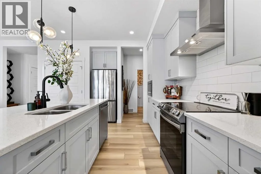 Nestled on a quiet street, this pristine semi detached bungalow villa offers the perfect blend of luxury, convenience, and maintenance free living without sacrificing space or style. The open concept main floor is anchored by an expansive great room featuring a cozy fireplace and large windows that flood the space with natural light, making it equally suited for quiet evenings or entertaining. The stunning chefâs kitchen impresses with a large island and eating bar, quartz countertops, stainless steel appliances, and an abundance of cabinetry and counter space. A generously sized walk in pantry with oversized doors adds both style and practicality. Just off the double attached garage, a functional mudroom with built-in storage also houses the main floor laundry and a convenient two piece powder room, thoughtfully designed for everyday living. The primary suite is a true retreat, ideally positioned to face the peaceful green space, and features a spa inspired ensuite with a freestanding tub, dual vanities, and a walk in closet. The partially finished basement is the perfect extension of your living area, complete with two additional bedrooms and a 4 piece bathroom. Minimal work remains to complete the basement, with only flooring, baseboards, and window casings left to finish. Outside, enjoy your beautifully landscaped yard with a rear lane double attached garage for easy access. And the best part? No condo fees. Living in Walden means nature at your doorstep, with picturesque walking trails, parks, and green spaces just steps away. Plus, you are only minutes from top rated schools, shopping, dining, golf, and major commuter routes. This is a rare opportunity to own a hard to find executive bungalow villa in a prime location. (id:27476)