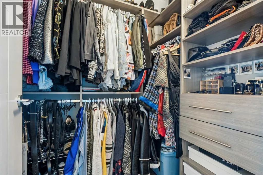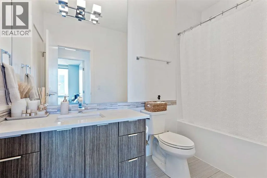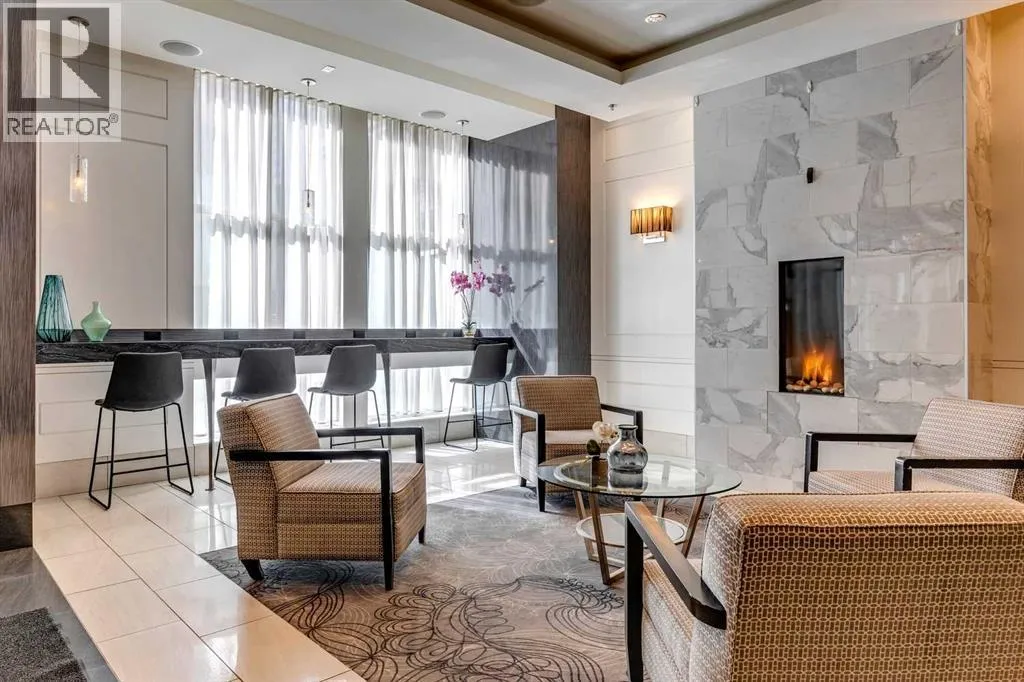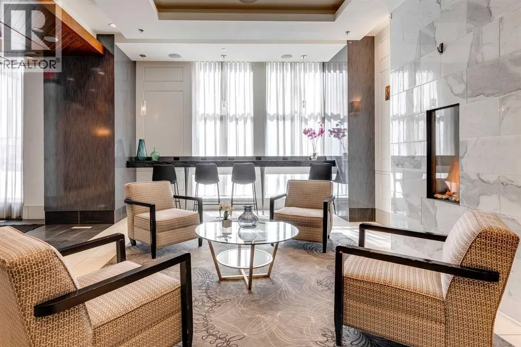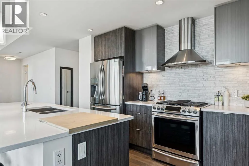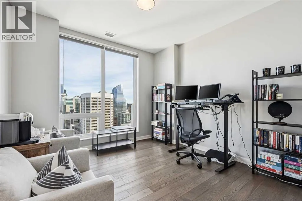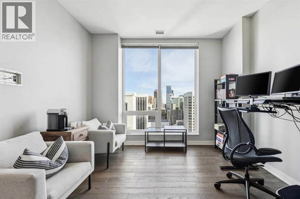 PRICE IMPROVEMENT! Experience elevated penthouse living at The Vogue, perched high above the cityâs financial core. This rare 2 bedroom, 2 bathroom residence features soaring vaulted ceilings, floor-to-ceiling windows, and TWO well-placed balconies that capture sweeping urban views, river views, and natural light throughout the day. The thoughtfully designed layout includes a spacious primary retreat with a walk-in closet and an exceptional 5-piece ensuite with double vanity, a separate in-unit laundry room, and open-concept living ideal for both everyday comfort and entertaining. Offered in only a limited number of high-rise units, this penthouse delivers a truly exclusive living experience. Completing the package are TWO TITLED underground parking stalls (UNITS 1 & 2) with immediate access from the parkade entrance - a rare and valuable convenience in the downtown core. (id:27476)