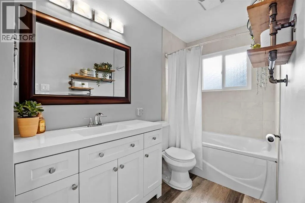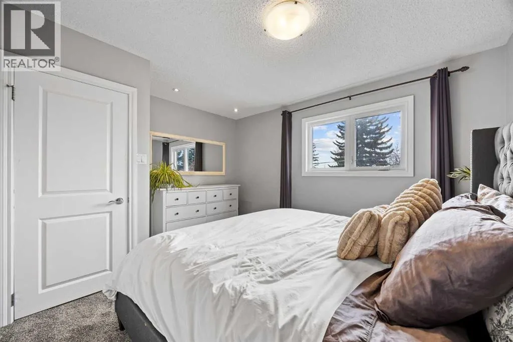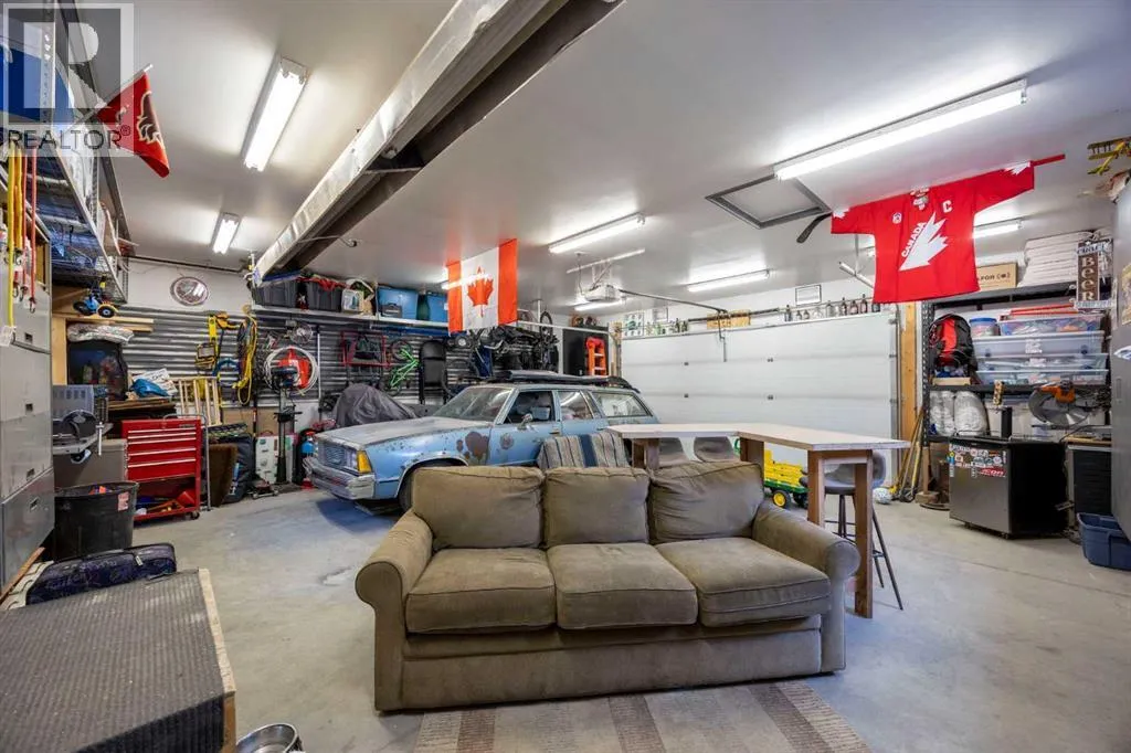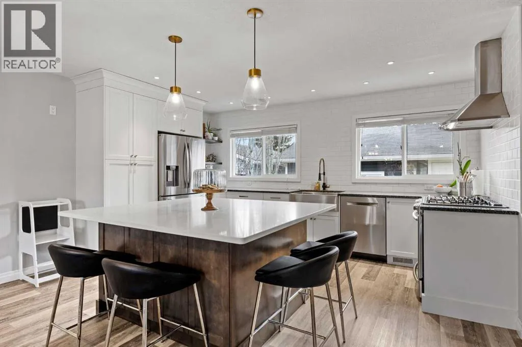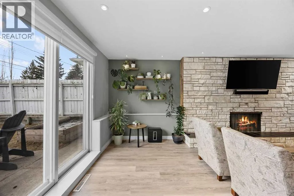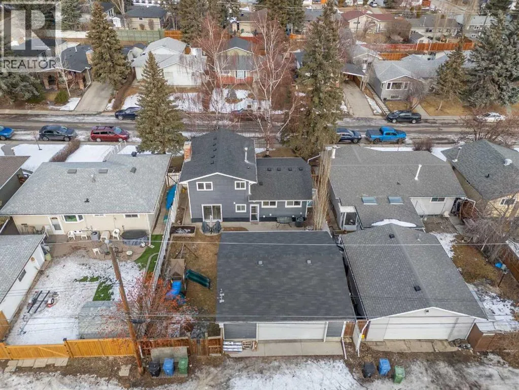 Beautifully landscaped and thoughtfully updated over the years, this inviting home offers a wonderful balance of comfort, character, and functionality, all complemented by a private, mature backyard.Inside, the main level features Luxury Vinyl Plank flooring throughout, upgraded lighting, and knockdown ceilings on both the main floor and basement, creating a clean, modern feel. The fully renovated kitchen by Merit Kitchens is designed for both style and everyday use, featuring stainless steel appliances, a quartz island, new cabinetry, and a classic subway tile backsplash. As part of the renovation, a recessed glulam beam was installed in the attic, enhancing both the structure and the open feel of the space. The spacious living room is anchored by a stone, wood-burning fireplace, providing a warm and welcoming focal point. A convenient main-floor 2-piece bathroom completes this level.Upstairs, youâll find three well-sized bedrooms along with a 4-piece family bathroom, ideal for families or guests.The fully renovated basement (2022) adds excellent additional living space and offers the opportunity to add a second full bathroom. Additional upgrades include spray-in attic insulation, an updated electrical panel, air conditioning added in 2021, and upgraded main-floor front windows and basement windows (2022).A rare highlight is the 28â Ã 28â oversized detached garage, radiant heated, with 10â ceilings, an oversized 8â door, 220-volt power, and excellent storage and workspace potentialâperfect for vehicles, hobbies, or a workshop setup.A well-cared-for home with meaningful upgrades, located in a quiet, established southwest Calgary neighbourhood close to schools, parks, and everyday amenities. (id:27476)