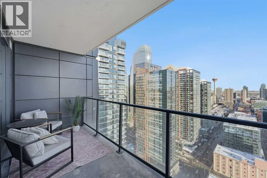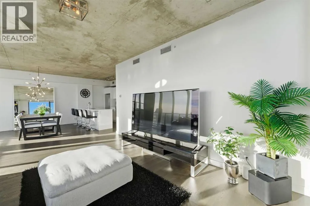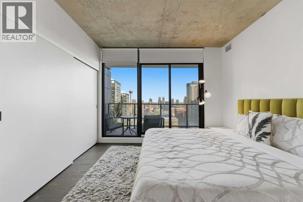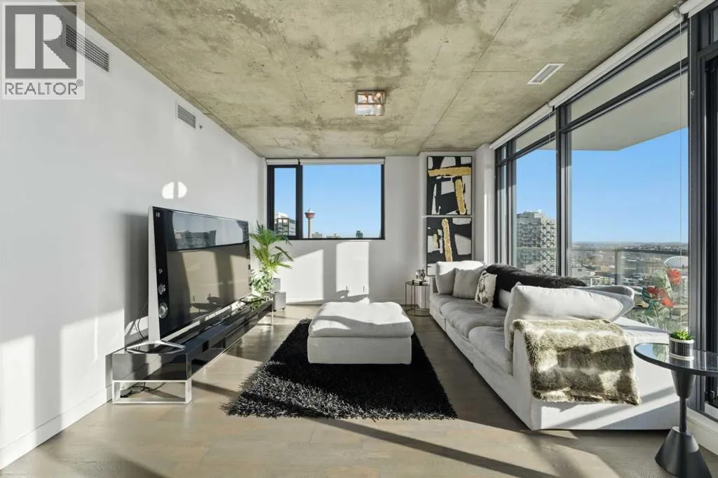 Welcome to elevated inner-city living in the heart of Calgaryâs vibrant Beltline. This stunning 2-bedroom, 2-bathroom residence offers the perfect blend of breathtaking views, modern design, unbeatable urban convenience and over 1100 Sqft of interior living space. If you looking for a views this will be hard to beat as your south facing balcony captures the Rocky Mountains like youâve never seen before, Your second balcony off the master bedroom provides unbelievable downtown views with a visual experience from sunrise to sunset and more with city lights putting on a show all the way into the night. Inside, the home showcases exposed, sealed concrete ceilings, creating a sleek, high-end loft-inspired aesthetic complemented by stylish fixtures, hardwood & tile flooring with contemporary finishes throughout. The open layout is flooded with natural light, making the views a constant backdrop from nearly every angle.The outdoor space is fully equipped with a BBQ gas hookup, ideal for entertaining and unwinding.Located in the highly sought-after 6th and Tenth building, residents enjoy resort-style amenities including an outdoor pool and lounge area, stylish owners lounge, fitness centre and garbage chutes conveniently located on every floor. Additional highlights include Short term rentals allowed, Central AC, Titled Underground heated parking and storage, adding everyday comfort and practicality to this secured building. Living in the Beltline means having Calgaryâs best restaurants, cafés, fitness studios, nightlife, and green spaces just steps from your door â all while enjoying quick access to downtown, transit, and major commuter routes.This is urban living at its finest â views, design, lifestyle, and location all in one exceptional home. Book your private showing today. (id:27476)
