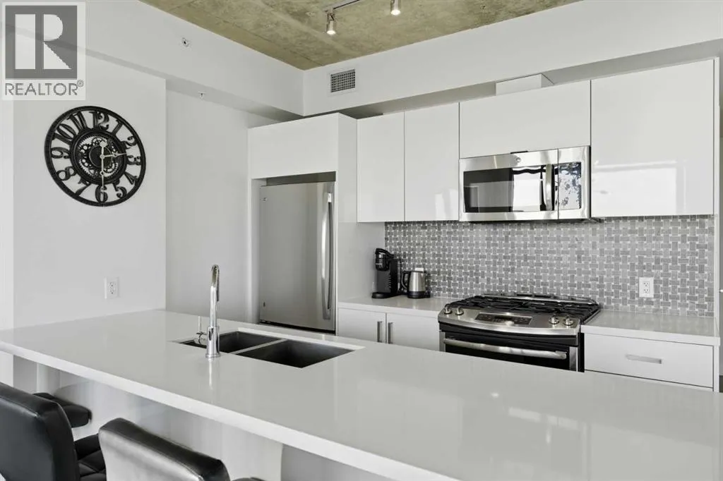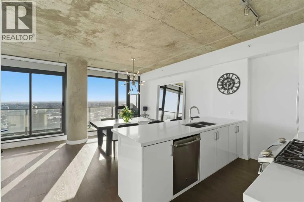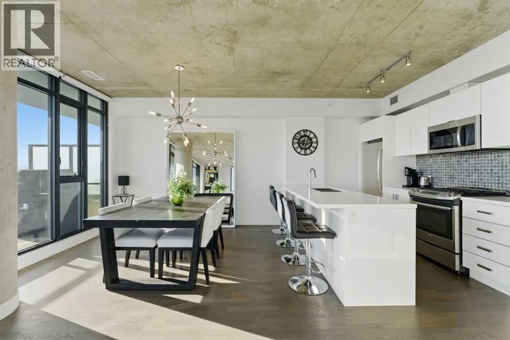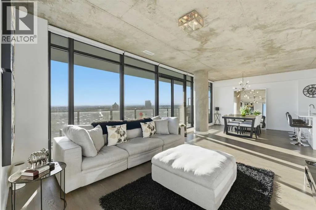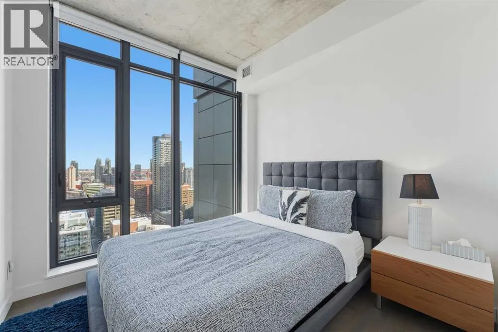 Welcome to elevated inner-city living in the heart of Calgaryâs vibrant Beltline. This stunning 2-bedroom, 2-bathroom residence offers the perfect blend of breathtaking views, modern design, unbeatable urban convenience and over 1100 Sqft of interior living space. If you looking for a views this will be hard to beat as your south facing balcony captures the Rocky Mountains like youâve never seen before, Your second balcony off the master bedroom provides unbelievable downtown views with a visual experience from sunrise to sunset and more with city lights putting on a show all the way into the night. Inside, the home showcases exposed, sealed concrete ceilings, creating a sleek, high-end loft-inspired aesthetic complemented by stylish fixtures, hardwood & tile flooring with contemporary finishes throughout. The open layout is flooded with natural light, making the views a constant backdrop from nearly every angle.The outdoor space is fully equipped with a BBQ gas hookup, ideal for entertaining and unwinding.Located in the highly sought-after 6th and Tenth building, residents enjoy resort-style amenities including an outdoor pool and lounge area, stylish owners lounge, fitness centre and garbage chutes conveniently located on every floor. Additional highlights include Short term rentals allowed, Central AC, Titled Underground heated parking and storage, adding everyday comfort and practicality to this secured building. Living in the Beltline means having Calgaryâs best restaurants, cafés, fitness studios, nightlife, and green spaces just steps from your door â all while enjoying quick access to downtown, transit, and major commuter routes.This is urban living at its finest â views, design, lifestyle, and location all in one exceptional home. Book your private showing today. (id:27476)