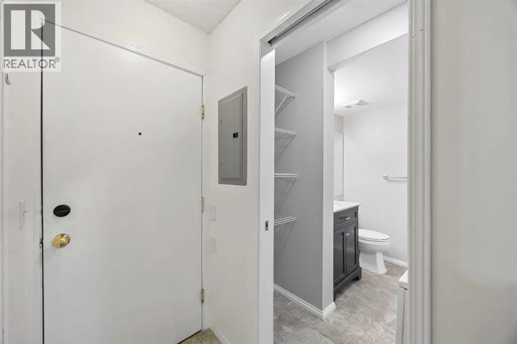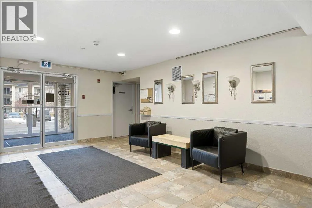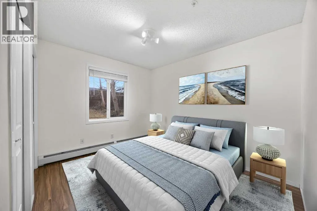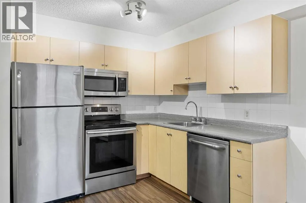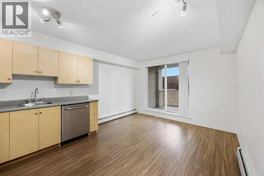 Great 1 bedroom main floor unit backing onto green space, offering 532 sq. ft. of well-designed living space. This bright home features laminate wood flooring throughout the living room, kitchen, dining area, and bedroom for a modern, low-maintenance finish.The spacious bedroom comfortably fits a queen bed with two side tables, and the 4-piece bathroom includes a granite countertop vanity. Enjoy the convenience of in-suite laundry with a new washer and dryer, plus quick access to the building entrance.Included is one above-ground parking stall (#94). A bus stop is located right outside the building, and youâll love the unbeatable location with Tim Hortons, Petro-Canada, Sobeys, Shoppers Drug Mart, a medical clinic, massage services, and various shops and restaurants just across the road. Fish Creek Park is also nearby, perfect for outdoor enthusiasts.Ideal for first-time buyers, downsizers, or investors. (id:27476)