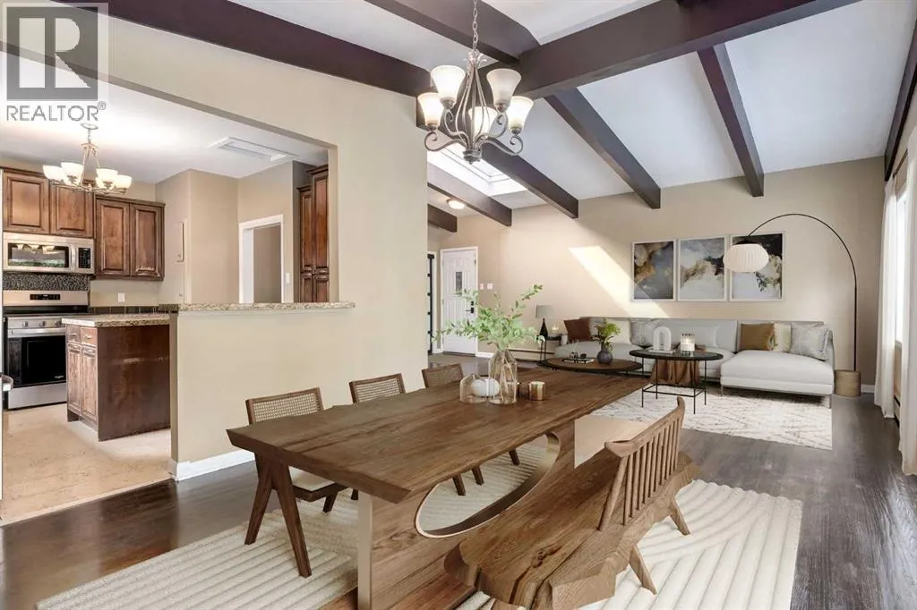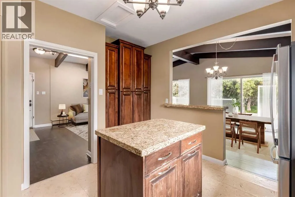 This character filled 4-level split in sought after Chinook Park has so much to offer including 4 bedrooms, 3 full baths and almost 2,300 sq. ft. of well-appointed living space - it is ready to be revitalized! It has timeless mid-century appeal with some modern updates - it is ready to shine again - there is so much potential awaiting you. This charming home sits on a great sized lot, it exudes curb appeal as it's cladded in Hardie board siding and framed by mature trees. The expansive front deck is equipped with privacy screens that make it the ideal spot to sip morning coffee, eat alfresco or unwind after work. The inviting main floor boasts a vaulted ceiling with exposed wood beams and skylight. Hardwood flooring flows seamlessly throughout the living room and dining area. Large windows flood the space with natural light, creating a welcoming atmosphere. The quaint kitchen features tons of cupboard/cabinet space, granite countertops, s/s appliances (including a gas stove) and a functional layout. Upstairs, youâll find a primary retreat complete with built-ins and a private 4pc ensuite with deep soaker tub. A 4pc bath and second great sized bedroom finish this level. *The lower level is mostly above grade and features large windows so it's bathed in natural light and IS INCLUDED IN ABOVE GRADE SQ FT * - here you will find two ample sized bedrooms, a 3pc bath, and rear door with direct access to the landscaped backyard. A spacious and versatile family room rounds out the lowest level - it's perfect for relaxing nights as well as lively get-togethers with built-in cabinetry offering storage and display space - it would make an excellent media/movie room, playroom or home gym. You will also find a laundry room and a bonus hobby/workshop room which gives you even more functional space for DIY projects/creative pursuits. Out back, the sun soaked south-facing yard is ready for your enjoyment with wooden garden boxes for green thumbs and an interlocking brick patio per fect for BBQs and summer gatherings. A single car garage connected by a breezeway to the front door makes bringing in groceries...'a breeze'. This home is excellently located for both commuters and weekend adventurers, offering quick access to downtown and major roadways including Glenmore Trail, Elbow Drive, and 14th Street. Thereâs no shortage of activities to take part in year-round nearby - you can walk, bike, and hike the trails of Weaselhead Flats or check out the water/paths at Glenmore Reservoir. Take a trip back in time at Heritage Park, or enjoy the boutique shops, cozy cafés, and inviting patios at Glenmore Landing. Great schools, parks and Rocky view Hospital are also close by. This diamond in the rough is ready to be transformed, this is your opportunity to create a space that reflects your style and vision so that you can enjoy it for many years to come in one of Calgary's most desirable and beloved neighbourhoods. (id:27476)