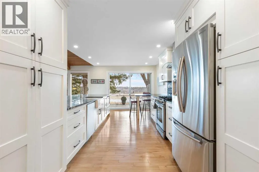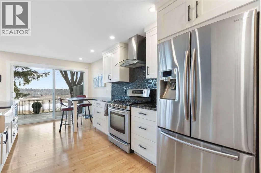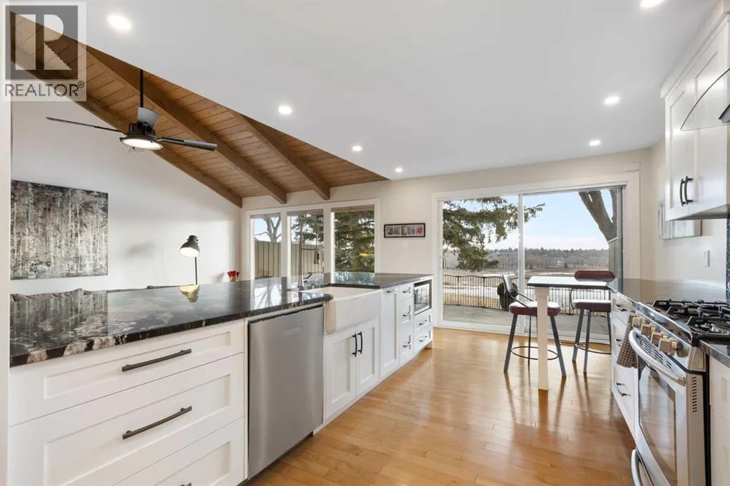You will find exceptional value in this renovated, one and half storey, bungalow with loft home in the sought-after neighbourhood of Midnapore! Not only do you have access to Lake Midnapore and its amenities, but you also have a one-of-a-kind opportunity to live on a ridge, backing directly onto Fish Creek Provincial Park, with spectacular views, all at an affordable price. This 2 bedroom, 3 bathroom home features over 1,850 sqft and is well cared for with thought put into every upgrade and detail. To enter the home, you will first pass by the double attached garage into a small courtyard space. As you enter the front door, you will immediately notice maple hardwood flooring throughout. As you head into the home, you will enter a beautiful open-concept kitchen with high end granite countertops, a large 12-foot island with custom built shelving, upgraded stainless steel appliances, and pantry. The family room features vaulted wood slat ceiling, multiple windows facing Fish Creek and allowing for natural light, and a gas fireplace â all of which make it easy to entertain and gather with family and friends. Head down the hallway, where you will find a large primary bedroom with double closets featuring custom shelving and a renovated, 5-piece bathroom featuring a double vanity with quartz countertops, and heated tile flooring. Finishing off the main floor is a second bedroom, 3-piece main bathroom and dining room. Upstairs, an impressive loft with vaulted ceilings features a bonus room and additional office space with built in desk/cabinets. Heading downstairs, the 1,300 sqft, partially finished basement includes a 3-piece bathroom, a vearsatile living space that can be converted into a large recreation area, and over 500 sqft of utility and storage area. Finally, head onto your back deck and enjoy the remarkable views and access to Fish Creek Provincial Park, an absolute luxury that you will enjoy all year long! Additional upgrades to the home include a new furnace (~ 2024), hot water tank (~2025), dishwasher (~2022), carpet (~2021), and almost all new windows (~2021). Do not miss out on this opportunity! (id:27476)