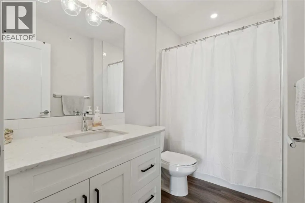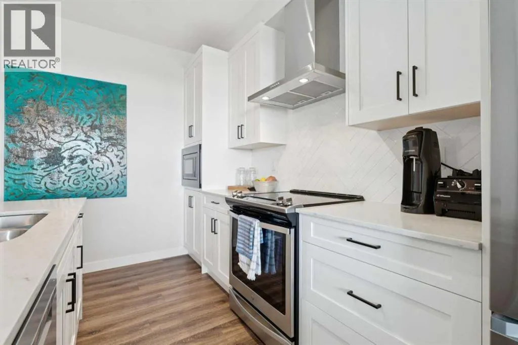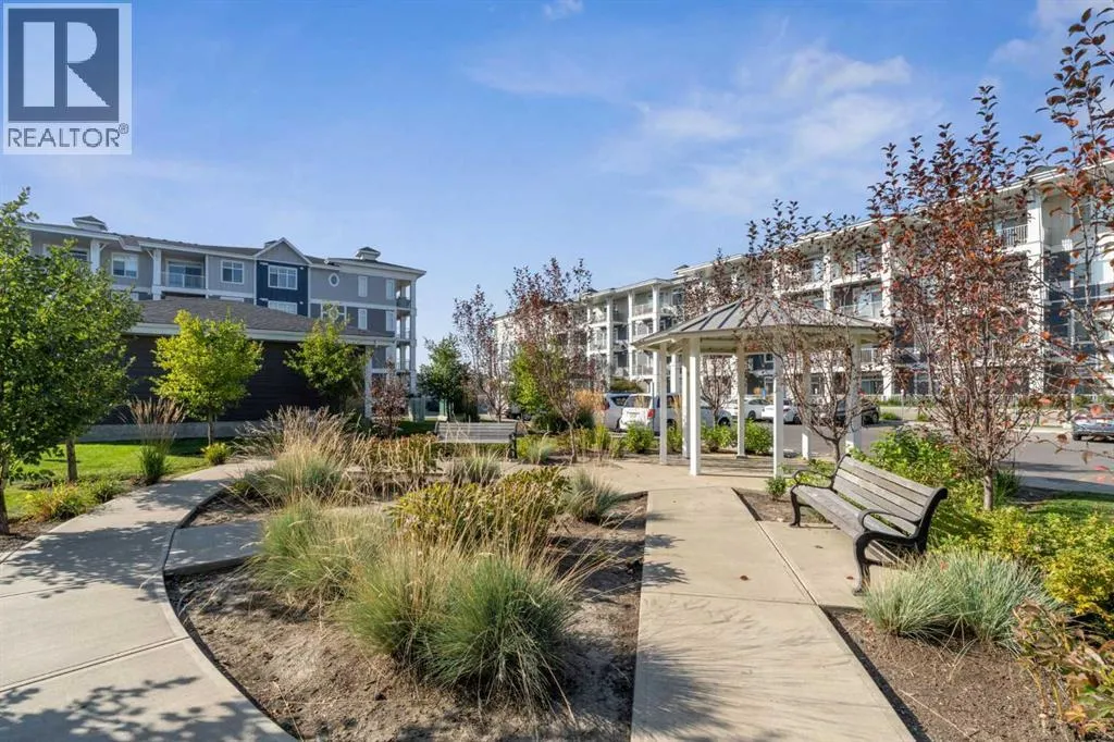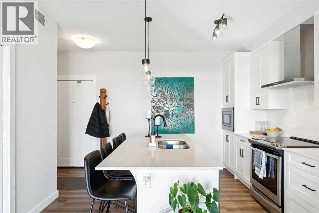 Look no further for your TOP floor unit with beautifully curated interiors and a functional layout. This unique "Pratt" layout by Logel Homes, is for the home buyer who wants a larger single bedroom and larger living quarters- no small bedrooms here! Enjoy upgraded finishings like the herringbone tiled backsplash, stainless steel appliance package, trendy black pendant lights, luxury vinyl plank flooring throughout and an integrated microwave that helps the functionality of the kitchen flow seamlessly. The spacious bedroom accommodates large furniture and welcomes personal items & belongings with a walkthrough closet. Tucked past the closet is a 4-piece ensuite with a tiled bath/shower and sparkling quartz counter tops. The unit has a second bathroom for guests- offering convenience and privacy for the homeowners. Just off the cozy living room are sliding balcony doors that take you to your private outdoor hub- which includes a gas barbecue! We cannot forget to mention, one of the best features of Auburn Bay... LAKE ACCESS! Enjoy year-round exclusive access to the Home Owners Association which includes a splash park, tennis courts, a fishing dock, a boathouse, picnic tables, gymnasiums and more. Nearby services like South Health Campus (3 min drive) and grocery stores, shopping, entertainment and parks just a couple blocks away, makes Auburn Bay a community of choice for many. Complete with a titled parking stall (end stall) and an over-sized storage locker compared to other units, this is an ideal choice for vibrant living in one of Calgary's most desired neighbourhoods. LIKE-NEW, gently lived in, this unit is truly turn-key and could be yours today! *Mortgage at 1.69% may be assumed, subject to buyer qualification and lender approval. Please contact listing agent for details. (id:27476)