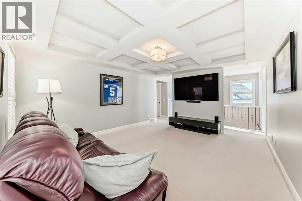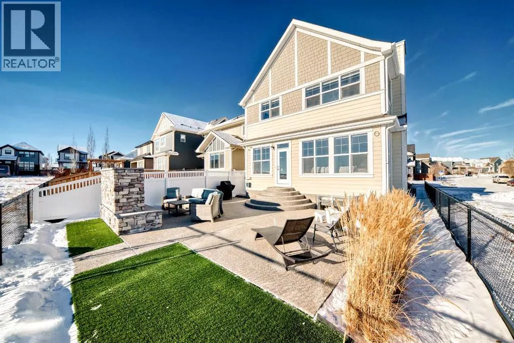 Welcome to 35 Mahogany Crescent SE, a meticulously maintained home in one of Calgaryâs most desirable lake communities. Offering over 3,500 sq. ft. of fully finished living space, this residence features 5 bedrooms, 3.5 bathrooms, a fully finished basement, and no side or rear neighbours for exceptional privacy.The open-concept main floor showcases a stunning feature fireplace, coffered ceilings, in-ceiling speakers, and a chef-inspired kitchen with quartz countertops, custom cabinetry, gas range, premium built-in appliances, and a Miele coffee machine.Upstairs, the primary retreat includes a coffered ceiling, spa-like ensuite with heated floors, freestanding tub, glass and tile shower, and a walk-in closet with custom cabinetry. A spacious bonus room and additional bedrooms complete the upper level.The finished basement offers a large recreation area, additional bedroom(s), and ample storage. Enjoy year-round comfort with dual A/C units, water softener, and heated ensuite floors.Outside, relax on the custom concrete patio with built-in fireplace, gas BBQ line, hot tub rough-in, and a beautifully landscaped, low-maintenance backyard backing onto green space. The heated double garage features epoxy floors, overhead storage, and a garage heater.Ideally located steps from Mahogany Lake and close to parks, pathways, schools, and shopping. Move-in ready and offering an exceptional lifestyle in Mahogany. (id:27476)