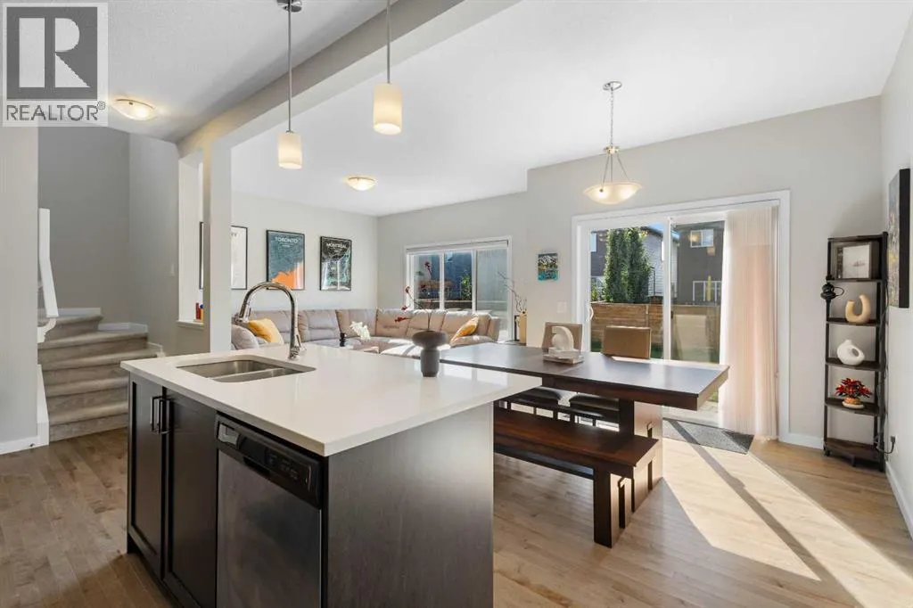 Welcome to 33 Walcrest Way SE, a refined modern residence quietly set within the heart of Walden. Thoughtfully designed and beautifully proportioned, this two-storey home offers over 1,840 sq. ft. of elegant living space, balancing clean architectural lines with warm, livable comfort. Surrounded by parks, pathways, and green spaces, the home feels both connected and privateâan ideal setting for a modern family lifestyle.The interior opens to a light-filled, open-concept layout where soaring ceilings and expansive windows create an effortless sense of space. At the center of the home, the kitchen is both striking and functional, finished with rich espresso cabinetry, quartz countertops, and stainless steel appliances. A generous island anchors the room, flowing seamlessly into the dining and living areasâan inviting backdrop for entertaining, conversation, and everyday living.Upstairs, the home transitions into a more tranquil rhythm. The primary retreat is calm and well appointed, featuring a walk-in closet and a spa-inspired ensuite with dual vanities and refined finishes. Two additional bedrooms, a full four-piece bath, a versatile bonus room, and upper-level laundry complete the floor, offering comfort and privacy without compromising flow.Outdoors, the professionally landscaped, fully fenced backyard provides a quiet extension of the living space, with a stone patio perfectly suited for summer evenings and relaxed gatherings. An attached double garage, tasteful upgrades throughout, and a location moments from schools, amenities, and green spaces complete a home that is understated, polished, and designed for lasting enjoyment. (id:27476)