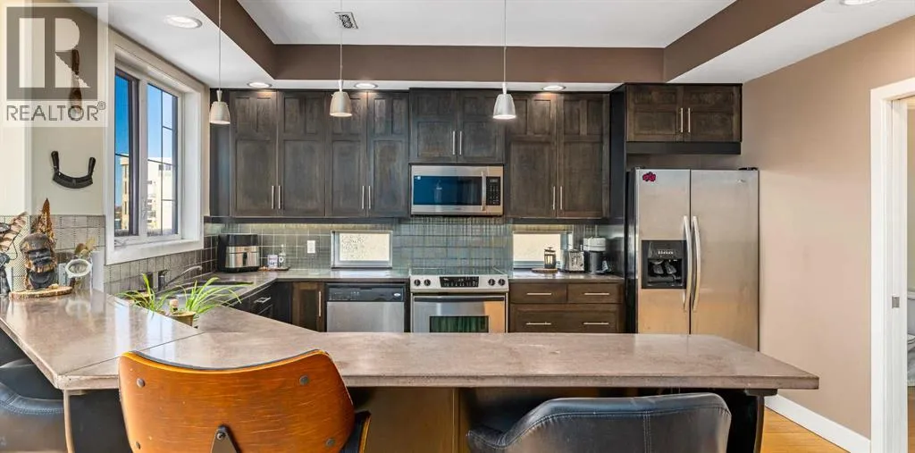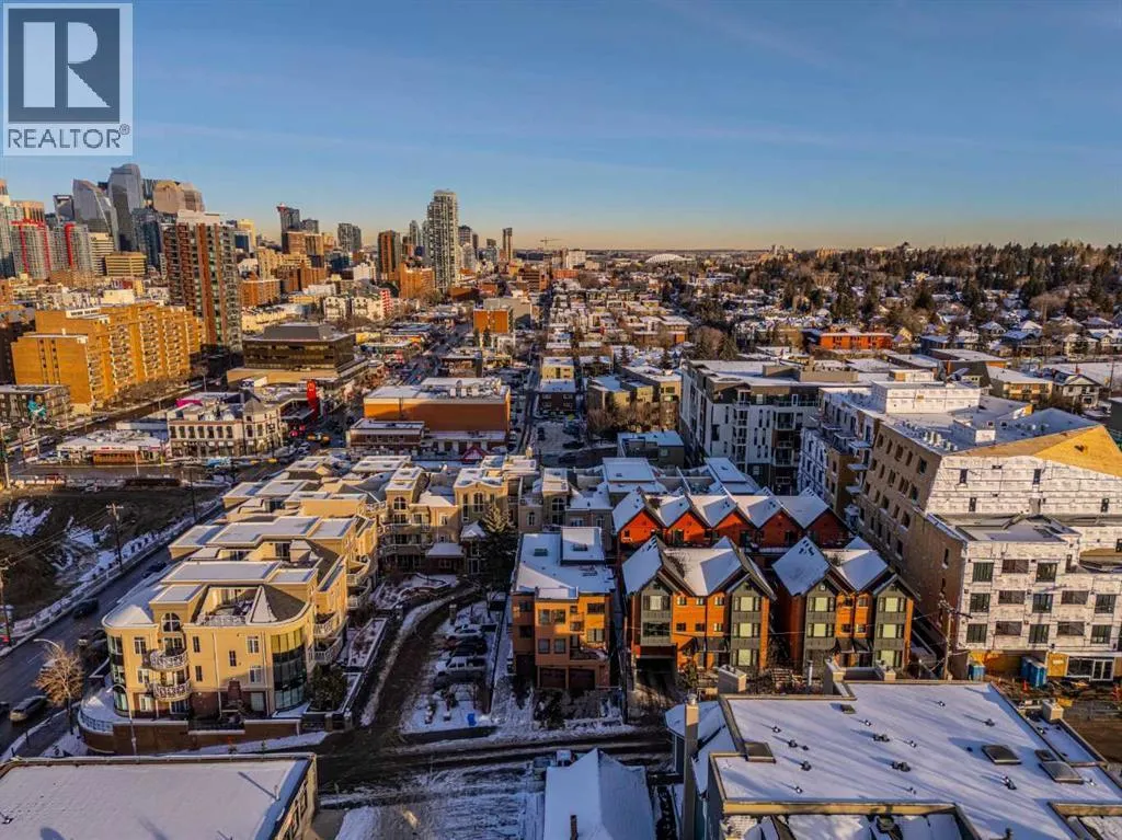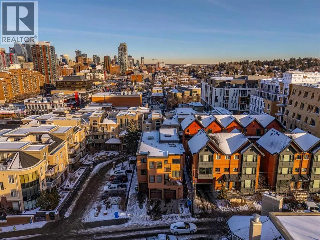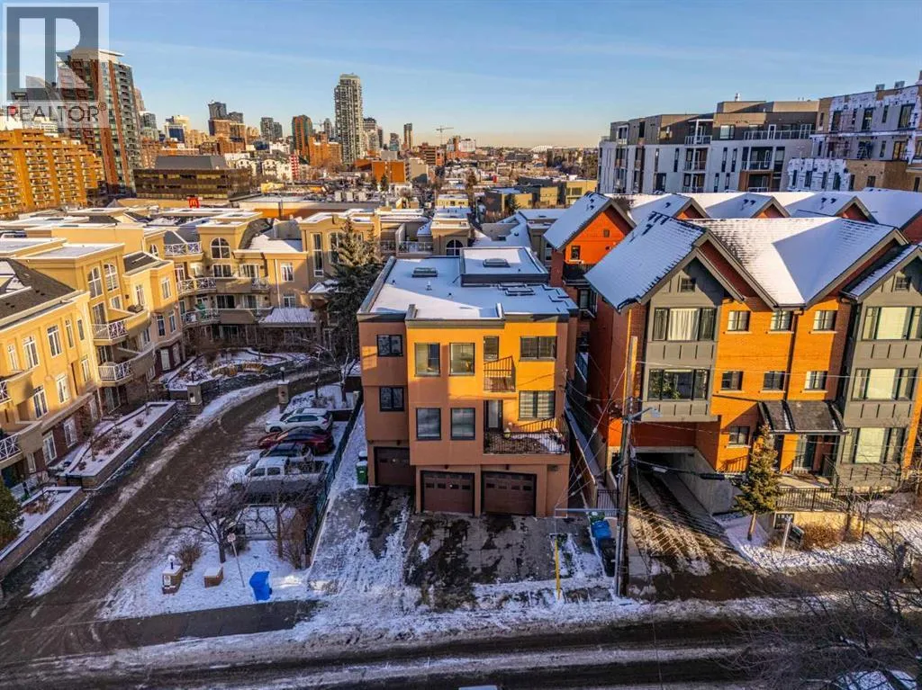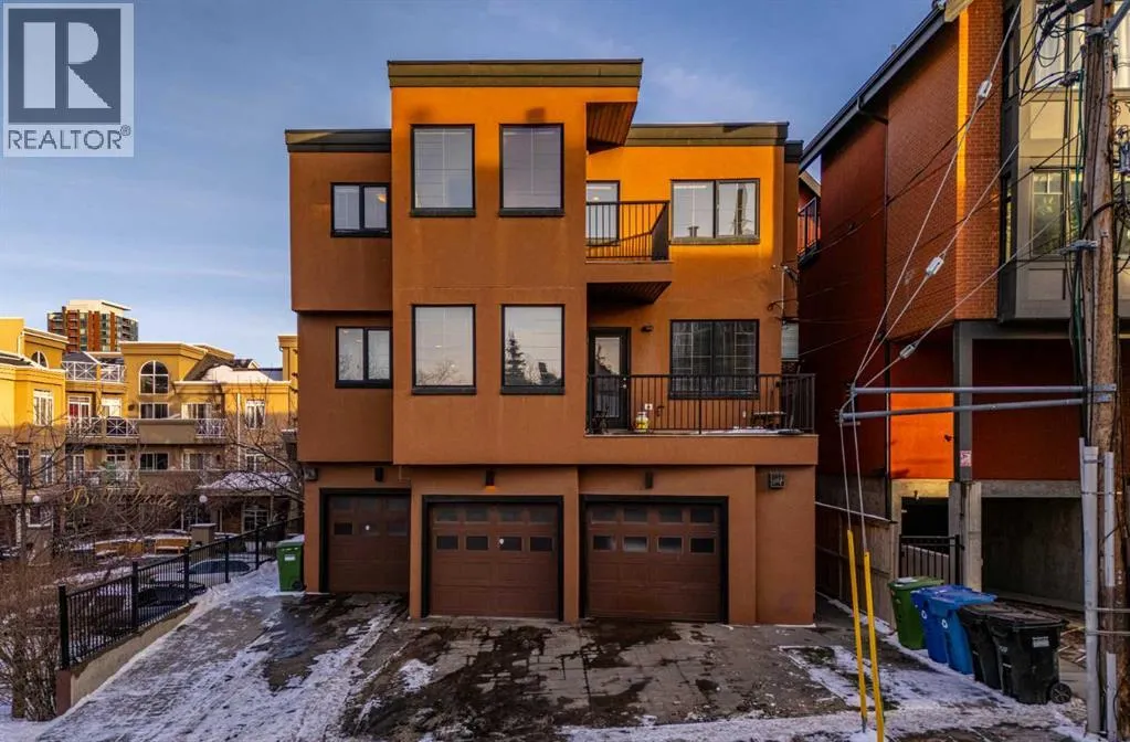 This spacious and unique 3-storey executive townhouse is quietly positioned in the heart of Bankview, offering an exceptional 10/10 inner-city location just steps from the energy, dining, and nightlife of 17th Avenue SW and the everyday convenience of 14 Street SW. Walk everywhere, commute downtown in minutes, and enjoy being surrounded by Calgaryâs best cafés, shops, transit routes, and entertainment, all while still feeling tucked away and residential. This is true urban living done right. This home confidently leans into what makes it exceptional: two fireplaces, two balconies, and two skylights, a thoughtful combination that brings warmth, architectural interest, and incredible natural light throughout. From the moment you enter, youâre welcomed by a spacious front foyer with mudroom-style functionality and generous storage, creating a practical and polished arrival experience. Head up one level and the property continues to surprise. The wide open-concept main living area flows effortlessly, wrapped in windows and enhanced by tall ceilings that create a bright, airy atmosphere across all levels. Designed for both comfort and connection, the main floor features hardwood flooring and a striking two-way fireplace with custom built-ins anchoring the living and dining spaces. The contemporary kitchen is finished with stainless steel appliances, concrete countertops, and a functional breakfast bar. A private west-facing balcony off the living room extends the space outdoors, perfect for morning coffee or evening unwinding. Completing this level is a convenient and well-located half bath, ideal for guests and everyday living. The upper levels continue the homeâs thoughtful design and flexibility. As you head upstairs, youâre greeted by a beautiful skylight that fills the space with natural light, complemented by oversized windows throughout that create a bright, open atmosphere. The primary suite is a true retreat with its own fireplace, dual closets, and a spa-inspir ed ensuite featuring double sinks, a soaker tub, steam shower, and an additional skylight that brings in even more sunshine. A generous second bedroom is paired with a versatile flex room, ideal as a home office, fitness area, or third bedroom, opening onto a southwest-facing balcony for added light and outdoor connection. A full upper-level main bathroom and conveniently located laundry complete this level, rounding out a layout thatâs both functional and beautifully designed. Currently tenanted, this property offers a strong opportunity for investors seeking a turnkey inner-city rental, while also appealing to buyers looking to make it their own. With downtown minutes away, quick access along 14th Street, and a vibrant entertainment district nearby, this location supports long-term demand and lifestyle appeal. Add low-maintenance living, low condo fees, and true lock-and-leave convenience, making it ideal for busy professionals, frequent travelers, and hands-off investors alike. Book a tour today! (id:27476)