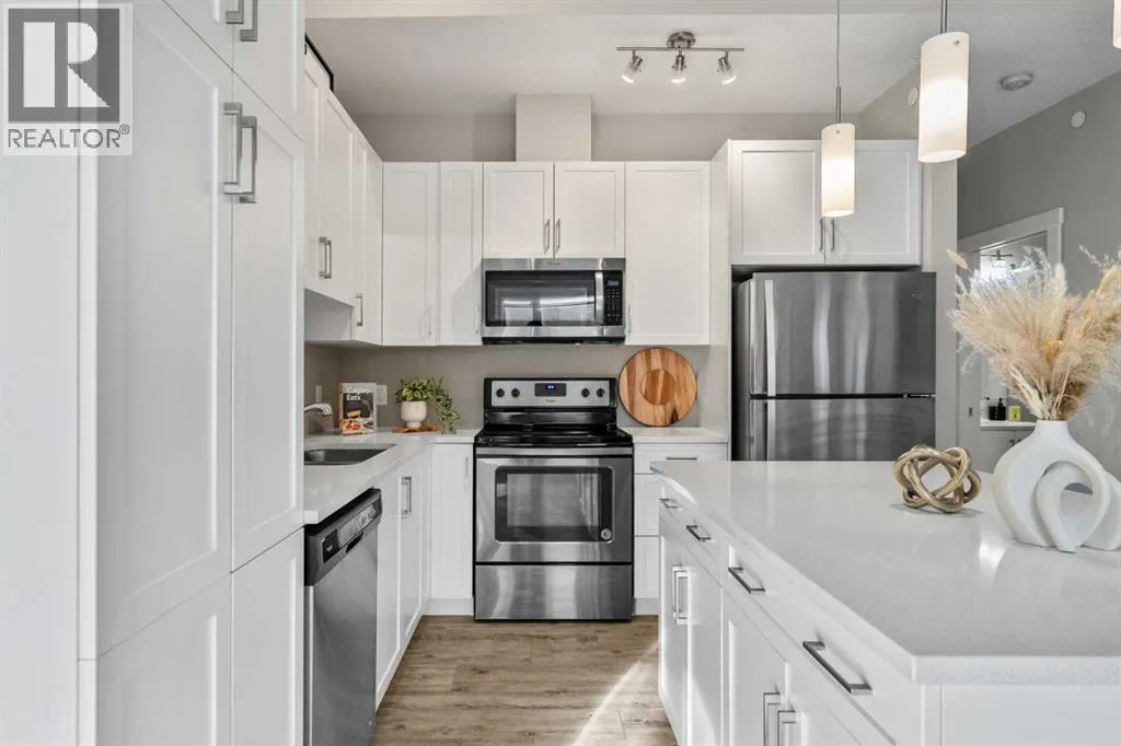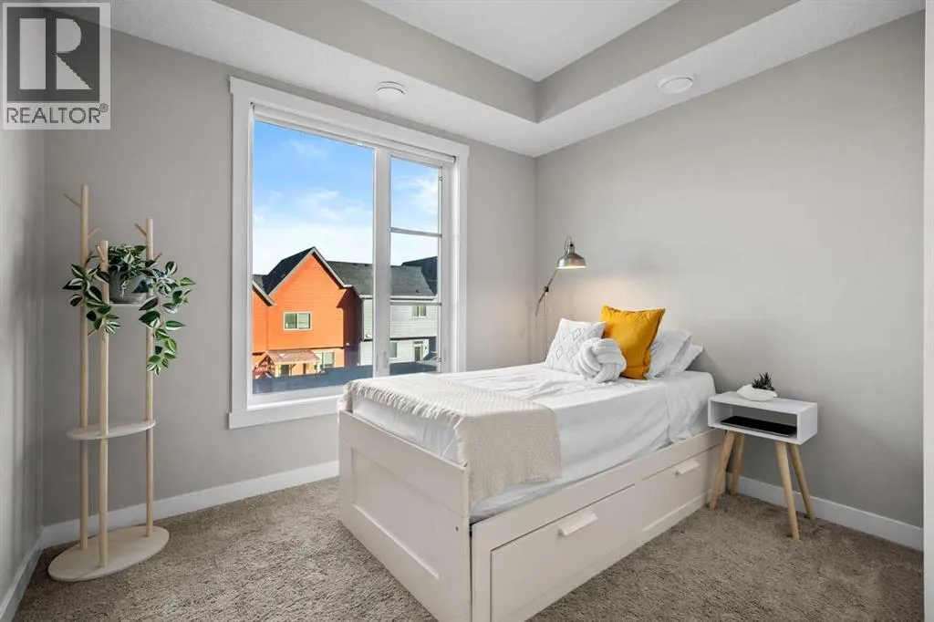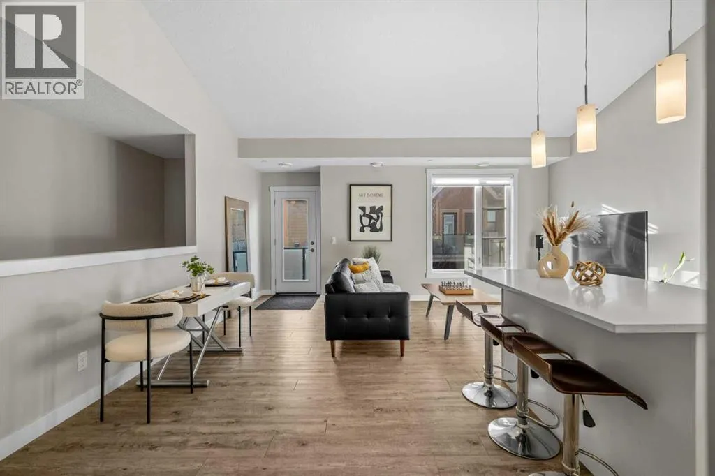 OPEN HOUSE THIS SAT FEBRUARY 14 and SUN FEBRUARY 15 from 2:00 PM to 4:00 PM!!!Welcome to 124 Livingston Common NE, a top-floor 2-bedroom townhouse with an attached garage in the community of Livingston. Built in 2019 and still under the Alberta New Home Warranty, this home is the lowest-priced townhouse in North and NW Calgary with an attached garage, offering strong value for buyers.The main living area is open and functional, featuring vaulted ceilings and durable finishes throughout. The kitchen includes white soft-close cabinets, a pantry, white quartz countertops, stainless steel appliances, and an island with breakfast bar, all open to the living space. Luxury vinyl plank flooring runs through the main living area, with carpet featuring 8 lb underlay in the bedrooms and ceramic tile in the bathroom. Two good-sized bedrooms and a full bathroom finish off this floor, with the primary bedroom offering a walk-in closet. No need to compromise on outdoor space with this unit, adjacent to the living room is a large southwest-facing balcony with a BBQ gas line and exterior hose bib, and a gated front patio. On the lower level, youâll find additional storage under the stairs and direct access to the single attached garage, which is accessed from a paved rear alley. Visitor parking and street parking are available nearby.The condo is pet friendly with a maximum of two cats or dogs, has low condo fees, and is managed by an active condo board. The location offers convenient access to amenities, pathways, and green space, including the Livingston Hub, a year round HOA facility. Nearby, Livingston Centre, an over 100,000 sq ft shopping plaza, is estimated for completion in 2027 and will add additional retail and dining options. The community is planned for future Green Line C-Train access, seven schools, and over 250 acres of parks and open space, with easy access to Stoney Trail, Deerfoot Trail, and Calgary International Airport.This is a well-priced opportunity in a growing community. Call your favourite realtor and book your showing today! (id:27476)