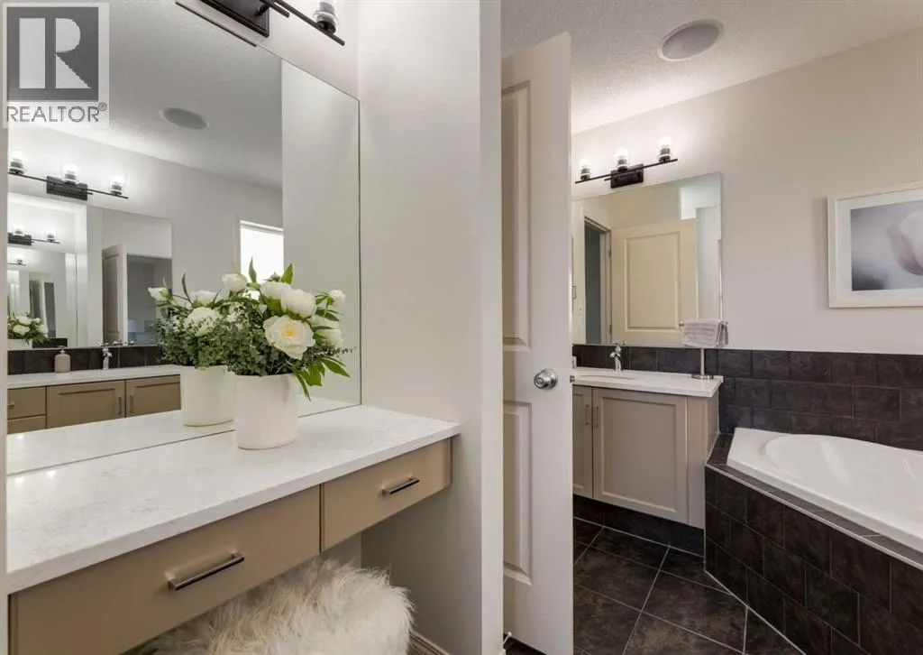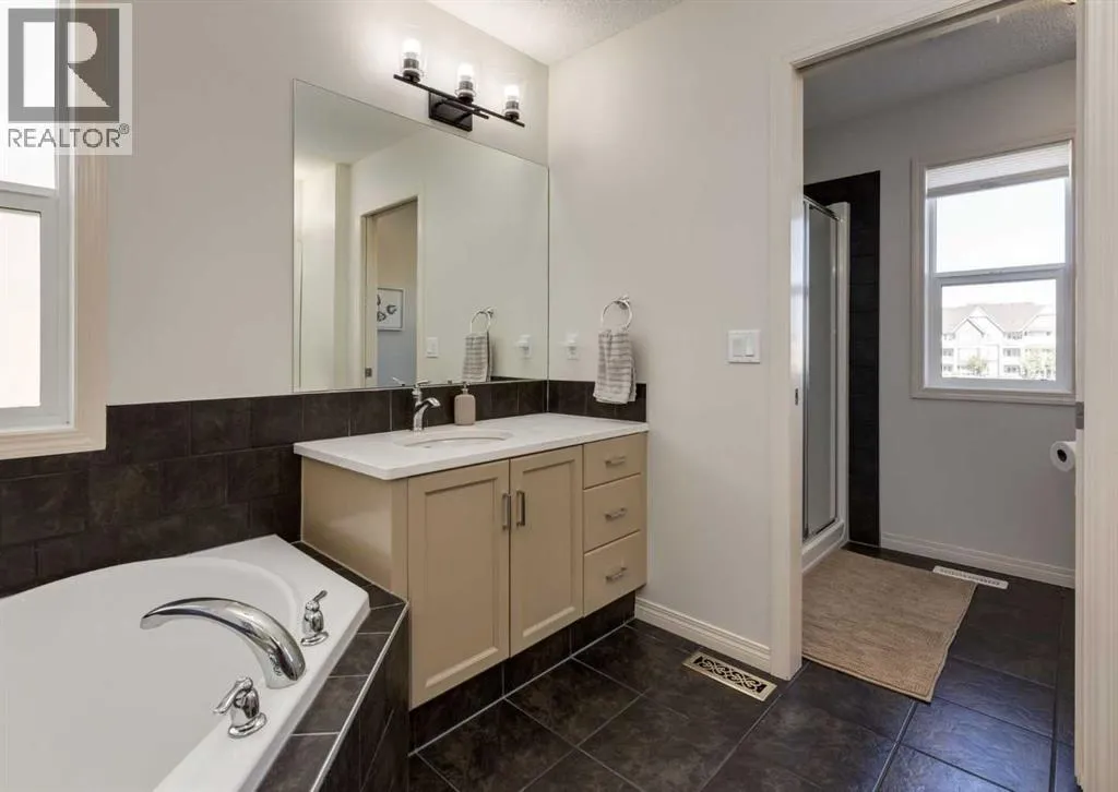 This immaculate, renovated, turnkey home is better than new. Set on a cul-de-sac with expansive green space behind, it welcomes you inside with 9-foot ceilings and large windows that offer sweeping views of your backyard and beyond. The NEW Legacy kitchen features full-height Alder wood, soft-close cabinets, a pantry with rollout shelves, quartz countertops, a newer gas stove, and stainless-steel appliances. There are 3.5 updated bathrooms, each with quartz vanities, new sinks, and refinished cabinetry. Throughout the house you'll find fresh paint, upgraded lighting, new window treatments, new carpet & central air conditioning. Outside you'll find recently replaced shingles, siding, and composite deck with glass railing. The exterior trim has been freshly painted, and the fence is newly stained for a crisp look. The open and functional layout flows from the stylish kitchen to the spacious, dedicated dining area and comfortable living room, which boasts a resurfaced tile gas fireplace. A generous back entry includes a large coat closet and direct access to the double attached garage with amazing attic storage. The welcoming foyer, highlighted by soaring ceilings, greets guests, and a newly updated half bath is thoughtfully located away from the main living spaces. Upstairs offers plush new carpet, laundry room, a dedicated computer nook, a renovated four-piece bathroom, and two spacious secondary bedroomsâone of with a walk-in closet complete with closet organizer. The primary suite includes an updated five-piece ensuite with dual sinks, soaker tub, a separate shower, & private water closet. The walk-in closet is generous and is adorned with an organizer. The bright, fully finished basement features egress windows, a lovely three-piece bathroom with walk-in shower, a wet bar, built-in cabinetry, and a spacious family room. This area could easily be converted to a huge 4th bedroom with built in cabinet area converted to a closet. The perfect teenager retreat or guest quarters. This home is close to three schools, shopping, restaurants, coffee shops, and professional services, with quick access to Stoney Trail and plenty of walking and biking paths. Spruce Meadows is just moments away. Embracing the Silverado lifestyle means enjoying both convenience and nature every day! (id:27476)