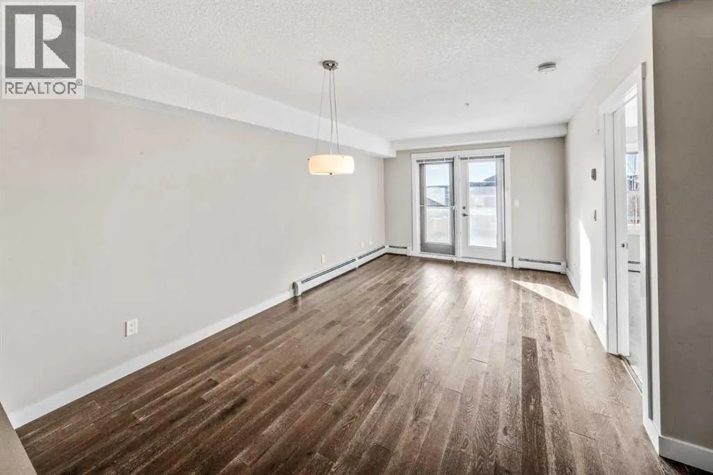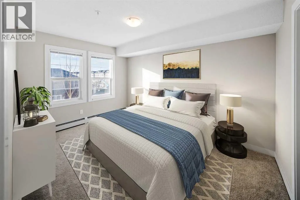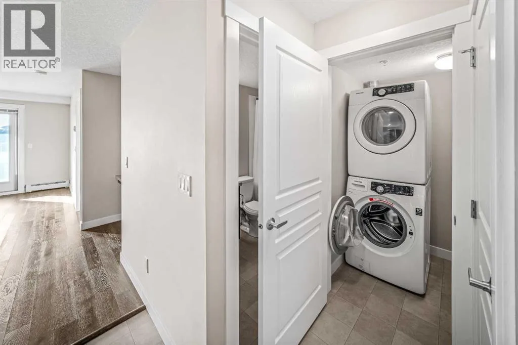 This bright and well-maintained Evanston condo offers a smart, functional layout with a sense of ease thatâs felt the moment you step inside. Located on the third floor with south-facing exposure, the open living space is filled with natural light, creating a warm and welcoming atmosphere throughout the day.The kitchen features warm wood cabinetry and generous storage, opening seamlessly into the living and dining area where everyday moments and easy entertaining come together naturally. A built-in desk area provides a practical workspace, while the private balcony offers a sunny spot to enjoy a morning coffee or unwind at the end of the day.The bedroom is spacious and calming, complete with a large walk-in closet. In-suite laundry with additional built-in storage adds everyday convenience, complemented by a bright 4-piece bathroom. This home also includes a separate assigned storage unit and a titled underground parking stall.Set within a pet-friendly, well-managed building, the complex is surrounded by landscaped pathways and a welcoming sense of community. Evanston delivers the best of northwest Calgary living, with nearby parks, shopping, and everyday amenities, plus quick access to Stoney Trail, major commuter routes, and the Calgary International Airport.A low-maintenance home that feels comfortable, connected, and easy to settle into. Some photos have been virtually staged to illustrate potential use of space. (id:27476)