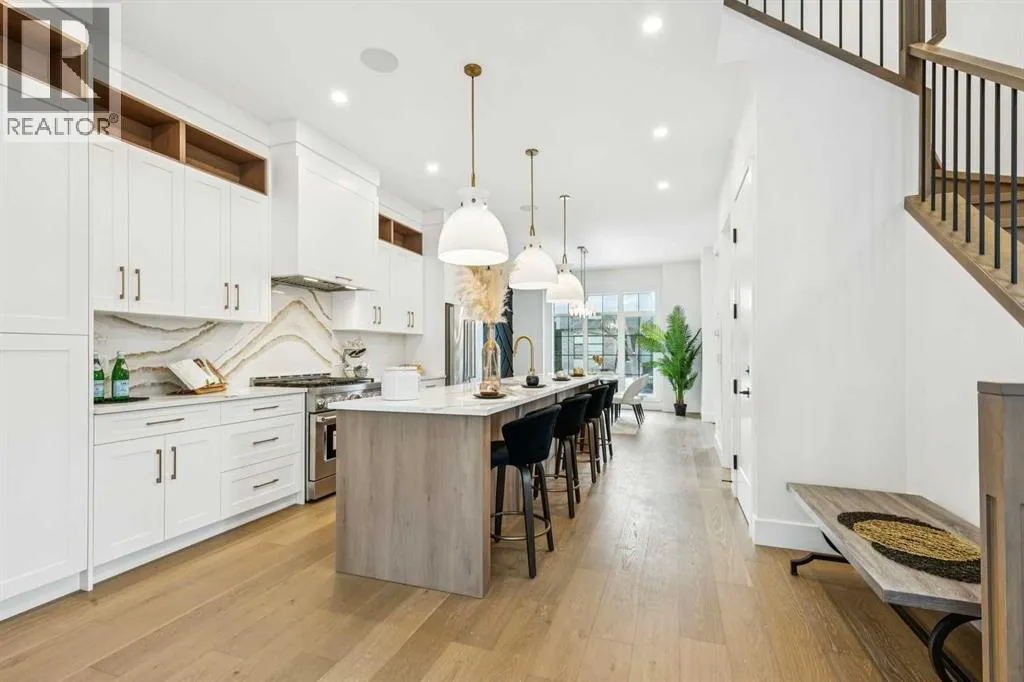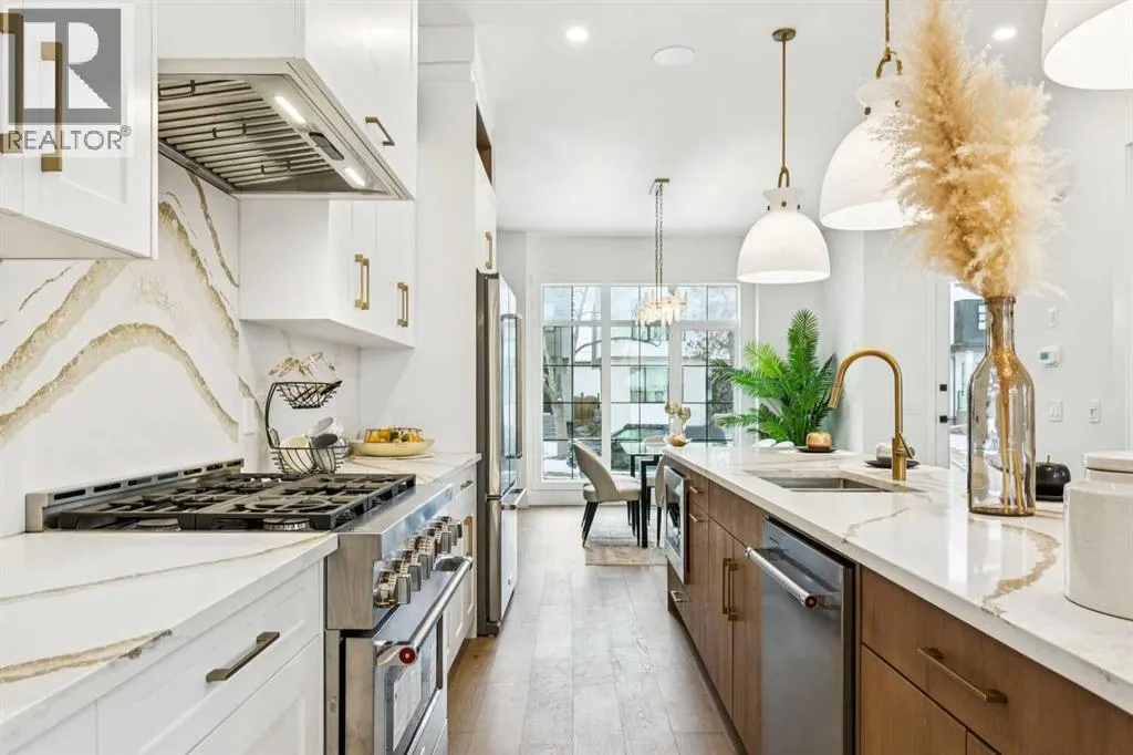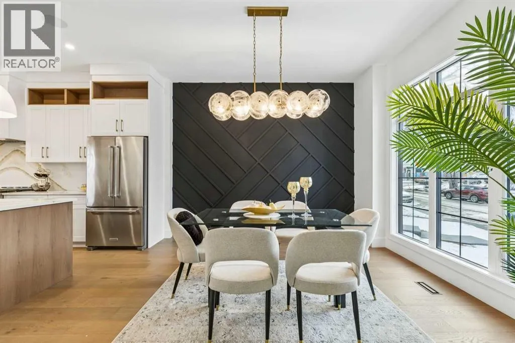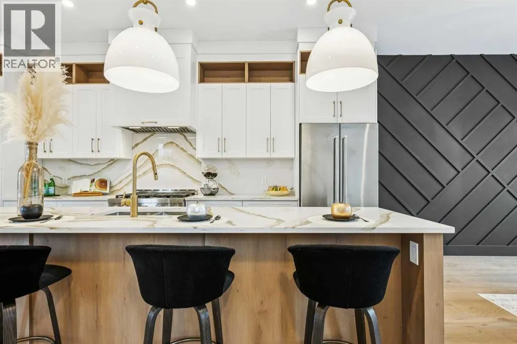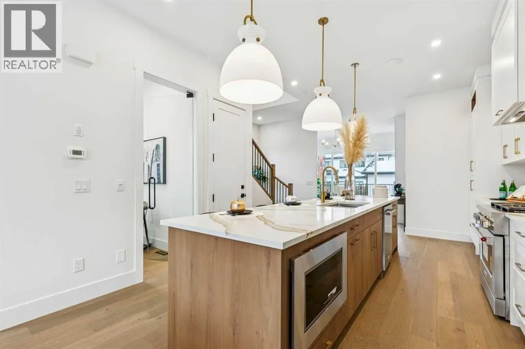 ***OPEN HOUSE Saturday & Sunday from 12:00 noon-2:00pm *** Introducing a remarkable new luxury infill in the heart of Killarney, offering nearly 2,000 sq ft of meticulously curated living space where architectural elegance meets modern comfort. Set in one of Calgaryâs most coveted inner-city communities, this residence delivers a seamless blend of sophisticated design, airy openness, and refined functionality.A welcoming formal dining space makes an elegant first impression, setting the stage for the homeâs elevated aesthetic. The space transitions beautifully into a show-stopping chefâs kitchen, anchored by a dramatic 12-foot quartz waterfall island that serves as both a design centrepiece and an entertainerâs dream. Premium finishes, clean lines, and thoughtful layout create a kitchen that is as beautiful as it is practical.Across from the kitchen, a light-filled executive office offers a quiet, polished environment for work or study. At the rear of the home, the living room exudes warmth and sophistication, highlighted by a sleek fireplace feature and expansive glass patio doors that open to the generous rear deck, creating an effortless indoorâoutdoor lifestyle experience. A custom mudroom with built-in storage and a tastefully designed powder room complete the main level with both style and intention.Upstairs, the primary suite is a serene retreat defined by a vaulted ceiling, abundant natural light, and a spacious walk-in closet. The spa-inspired ensuite elevates daily living with designer tilework, dual vanities, and a sculptural freestanding soaking tub. Two additional bedrooms, a beautifully appointed main bath, and a convenient upper laundry room round out this thoughtfully designed level.The lower level showcases the builderâs signature extended LEGAL BASEMENT SUITE â a distinctive feature that provides exceptional additional living space and sets these homes apart. Bright, spacious, and beautifully finished, this private level includes a full kitc hen, open-concept living area, two bedrooms, a versatile flex room, and dedicated laundry. Ideal for executive tenants, multi-generational living, or upscale guest accommodations, this extension of the home enhances both lifestyle flexibility and long-term investment value.Completing the property is a double detached garage with paved lane access, offering everyday convenience with a polished touch.With its elevated finishes, intelligent floorplan, abundant natural light, and exceptional location near parks, schools, amenities, and quick downtown connections, this home represents the perfect balance of luxury, comfort, and enduring value. (id:27476)