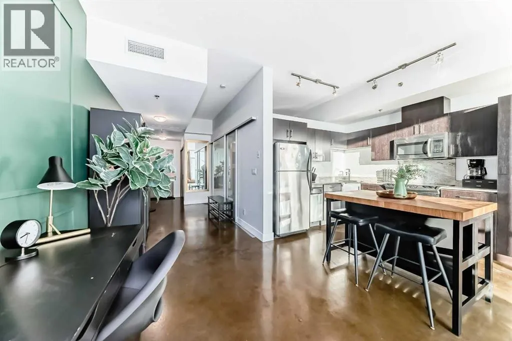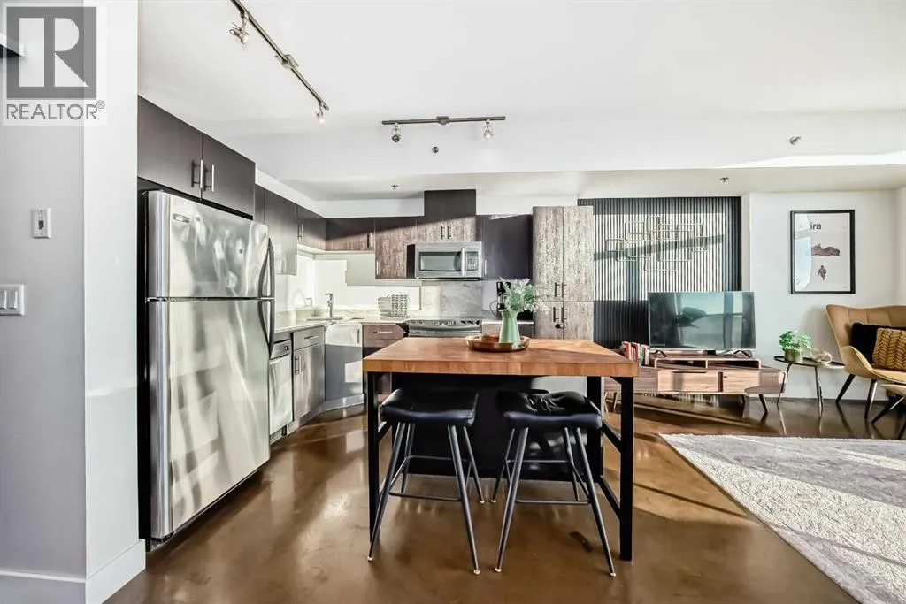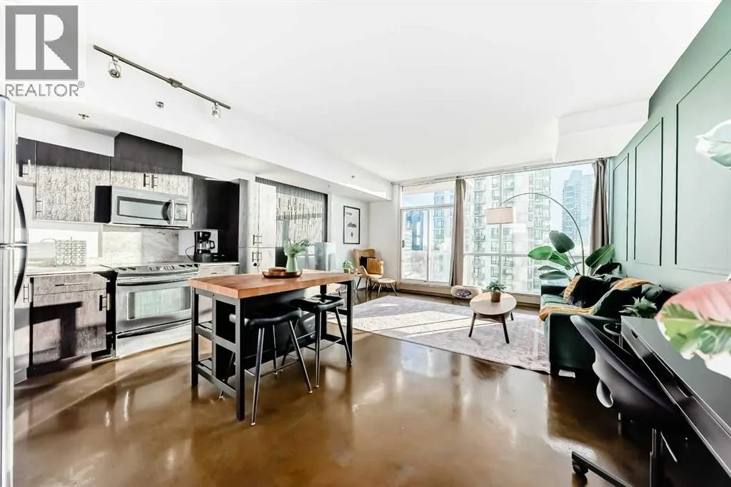 OPEN HOUSE SATURDAY, FEB 14 FROM 11AM -1PM***Location, location, location. Situated just one block from the LRT, this exceptional downtown condo offers quick access to the core and is only minutes from all the amenities along vibrant 17th Avenue. Steps from First Street Market and some of Calgaryâs most celebrated restaurants including Pat and Betty, Ten Foot Henry, and Calcutta Cricket Club, this home is also within walking distance to the Stampede Grounds, the Saddledome, the upcoming Entertainment District, and everything the Beltline has to offer.Located in the sought-after Colours building, this fully furnished one-bedroom, one-bath residence is short-term rental friendly, making it an excellent investment opportunity. Two elevators welcome you through the trendy lobby and up to the 8th floor, where youâll enjoy fantastic views from both the living room and private balcony. Polished concrete floors flow throughout the open-concept living, dining, and kitchen areas, while 9-foot ceilings and expansive windows flood the space with natural light, creating an airy and spacious feel.The kitchen offers ample cabinet and counter space, stainless steel appliances, and comes fully equipped for immediate move-in or rental use. If buyers doesn't want furniture, that is something that the seller can take out. A portable island with seating provides casual dining, with plenty of room for a table if desired. Step outside balcony, complete with a gas hookup for convenient BBQing. A large closet houses the washer and dryer and provides extra storage for coats, shoes, or seasonal items.The bedroom features sliding doors and easy access to a spacious four-piece bathroom with a tub and shower combination. Colours residents enjoy communal bike storage, rentable private storage lockers, and a shared outdoor space, with underground parking often available for rent if needed.This unit is ideal for young professionals, first-time buyers, empty nesters, and investors alike. Wi th its unbeatable location and short-term rental flexibility, Colours offers incredible value and lifestyle convenience. What more could you ask for! (id:27476)