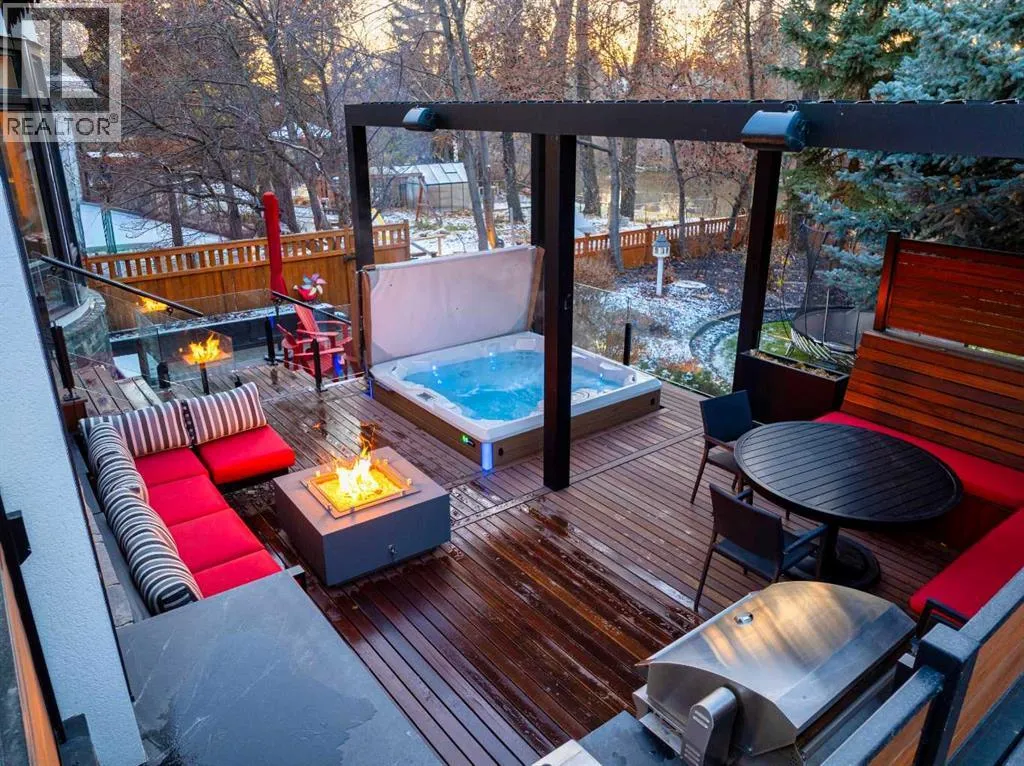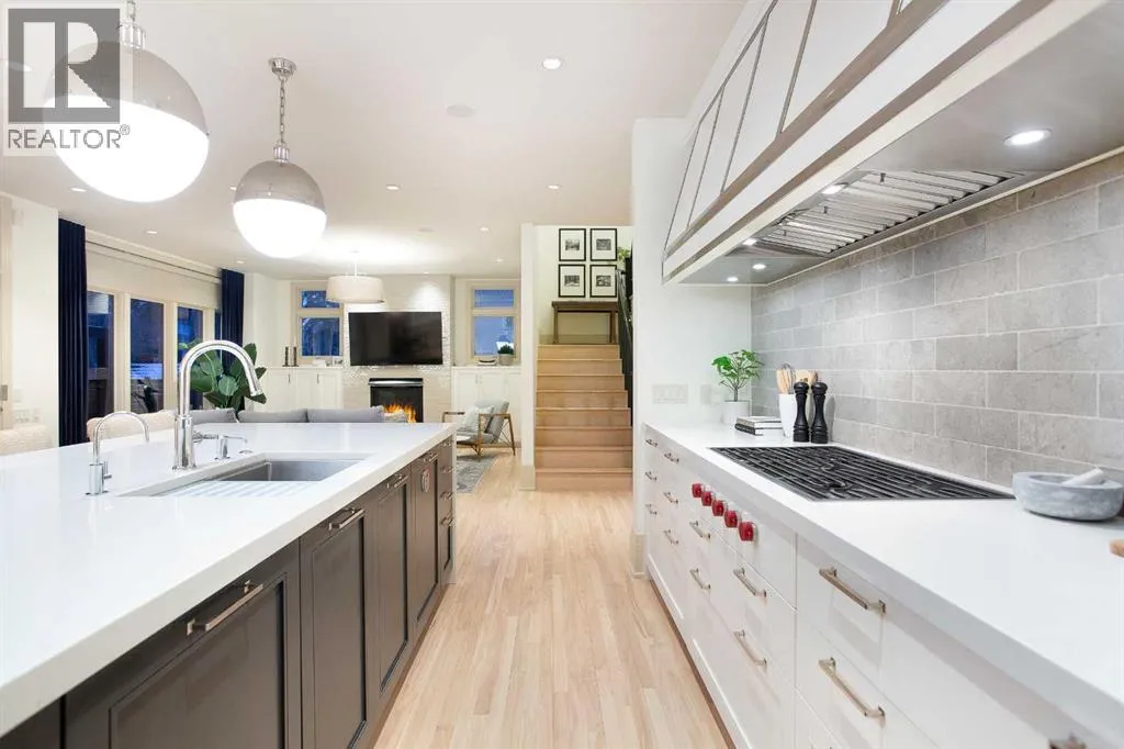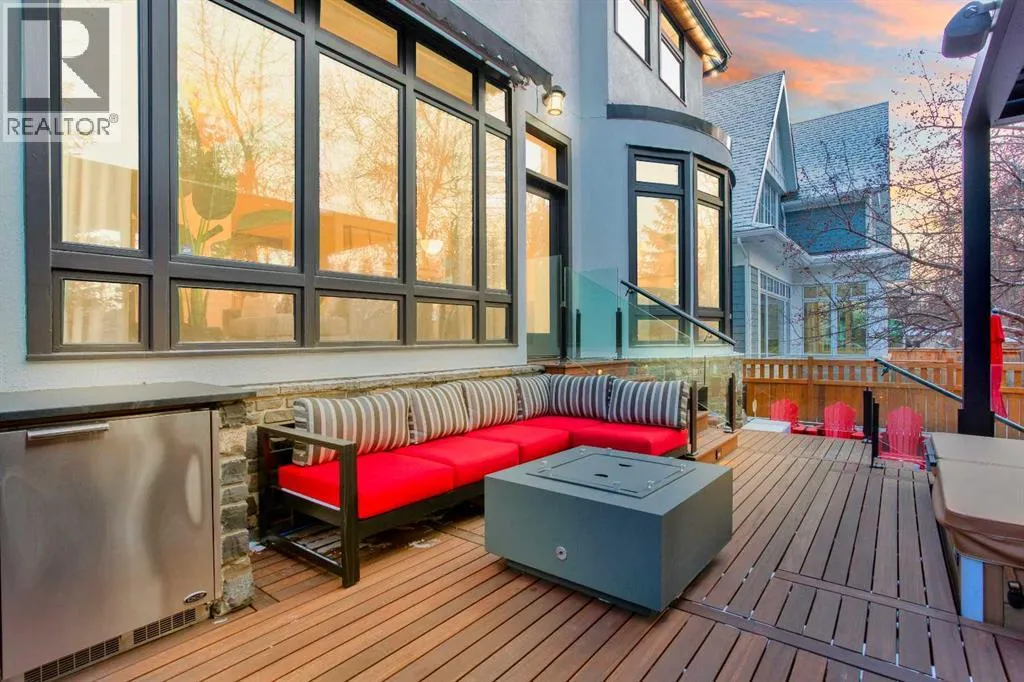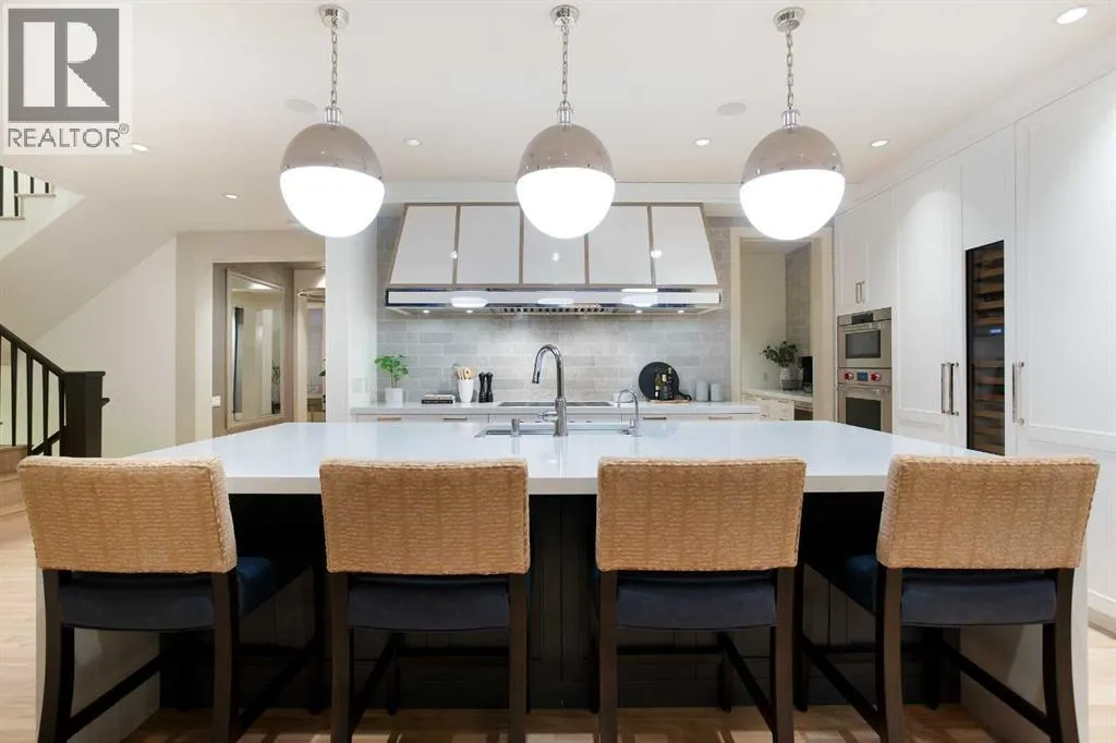 An extraordinarily rare Elbow Riverâbacking estate in the heart of prestigious Rideau, offering an unparalleled blend of natural beauty and inner-city sophistication. With a coveted south-facing orientation capturing sunlight year-round, the home is framed by tranquil river vistas and direct access to scenic walking and cycling paths, delivering a private, resort-like setting just moments from downtown Calgary. Surrounded by premier schools, parks, tennis courts, skating rinks, and recreational amenitiesâand just a short walk to the Glencoe Clubâthis is refined urban living at its finest.The home has been meticulously and comprehensively renovated, honouring its original architectural proportions while elevating every space with timeless craftsmanship and luxury finishes. At the heart of the home, the chefâs kitchen features premium Wolf and Sub-Zero appliances and is designed for both elevated entertaining and effortless daily living. A walk-through butlerâs pantry includes a built-in drawer microwave and a large warming drawer, perfectly suited for seamless food service when entertaining.Walk through the pantry to the formal dining room, generously sized to accommodate 10â12 guests and set the stage for elegant entertaining. On the opposite side, the library/formal living room with a fireplace offers a refined and intimate retreat, creating a balanced and sophisticated flow across the main level. The main floor also features a warm and inviting family room with a gas fireplace, a discreetly positioned half bath, and exceptional sightlines throughout. Bespoke lighting and beautifully refinished floors further enhance the atmosphere of warmth and understated elegance.Upstairs, the primary suite is a true private retreat, complete with a spa-inspired ensuite and steam shower. Two additional bedrooms, a full bathroom, and a walk-in laundry room complete the upper level. These spaces are complemented by a fourth bedroom with a full bathroom and a second family ro om with a fireplace on the lower level, offering exceptional flexibility for family living, guests, or multigenerational needs.Outdoor living is nothing short of exceptional. A welcoming front porch with a âmorning terraceâ provides the perfect spot to enjoy coffee in the early sun, while the fully curated riverfront patio features a fire pit, infrared heaters, hot tub, BBQ, minibar, and motorized louvresâan intimate sanctuary for quiet evenings or sophisticated gatherings overlooking the Elbow River.Practical luxury is seamlessly integrated with a snow-melt driveway, whole-home standby generator, comprehensive flood-mitigation systems, GEM exterior lighting, and app-controlled garage access, ensuring comfort, security, and peace of mind year-round. This is a once-in-a-generation opportunity to experience true riverfront livingâwhere privacy, prestige, and proximity convergeâin one of Calgaryâs most established and coveted communities. Open House, Saturday, February 7th 12:00-2:00pm (id:27476)