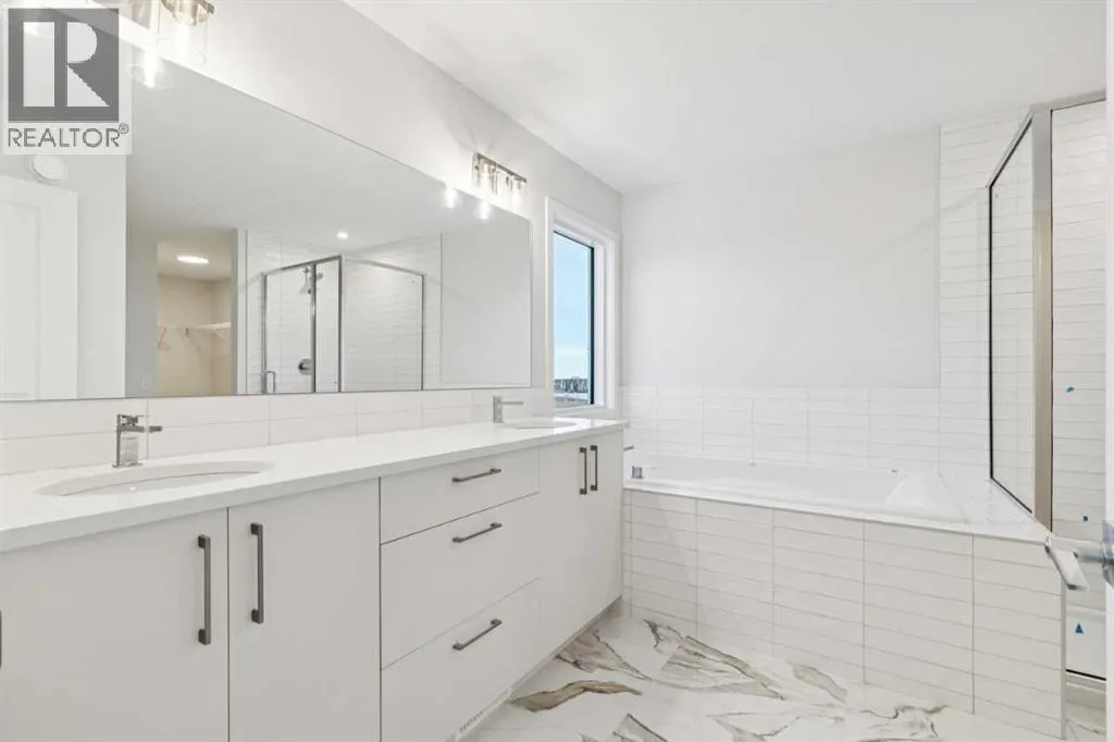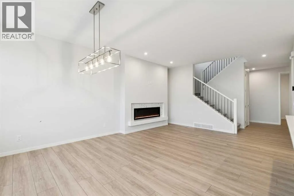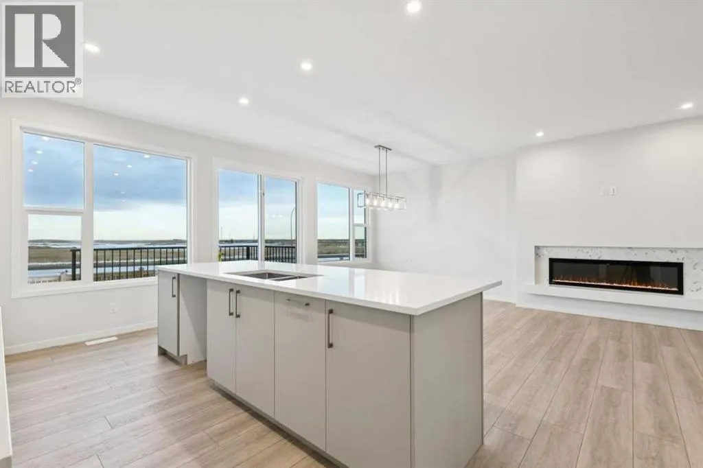 This family-focused home offers 2,127 sq. ft. above grade with four bedrooms, including a main-floor bedroom, three full bathrooms, and an upstairs bonus room. The open concept kitchen features an oversized island with extended eating ledge, tight-to-ceiling cabinets, large pantry, and generous counter space, flowing to the great room anchored by a feature fireplace. Upgraded railing throughout and added windows enhance natural light and the open feel. The rear deck provides indoor-outdoor connection, and the level lot with side entrance makes the basement ready for a future potential development. Additional features include 8 ft main floor doors, tankless water heater, appliance allowance, and full new home warranty. (id:27476)
