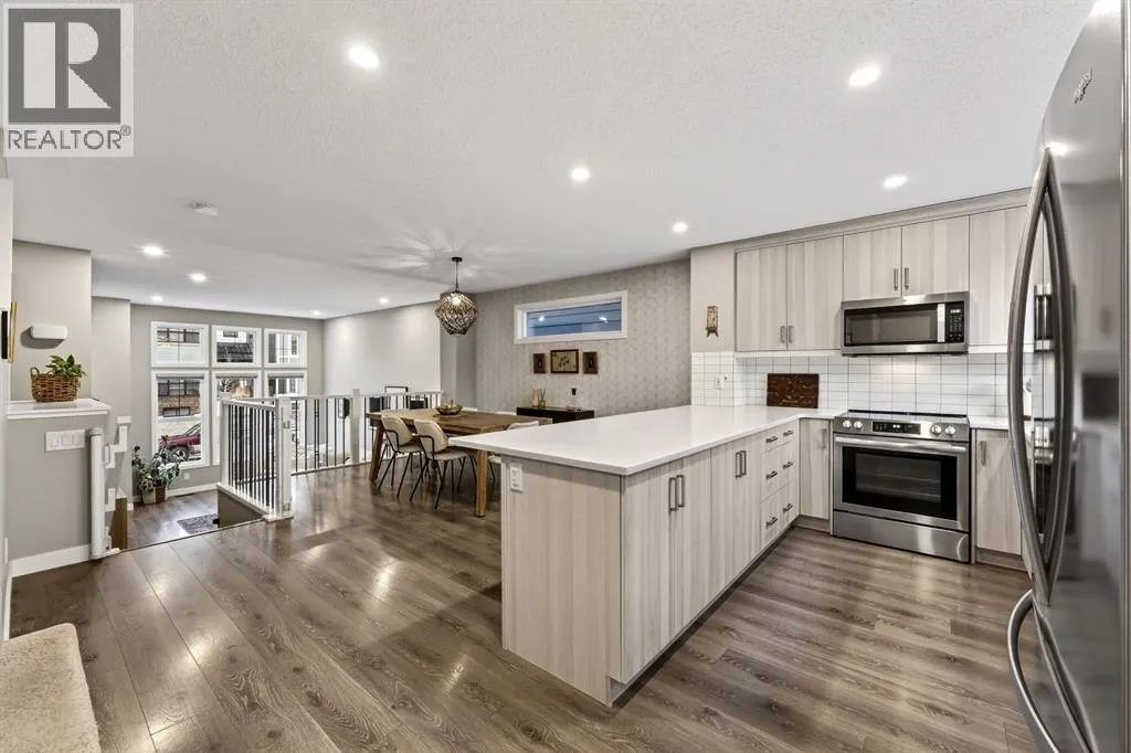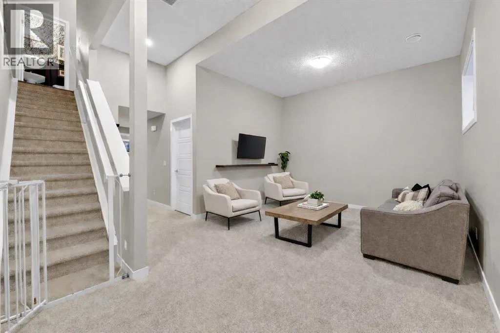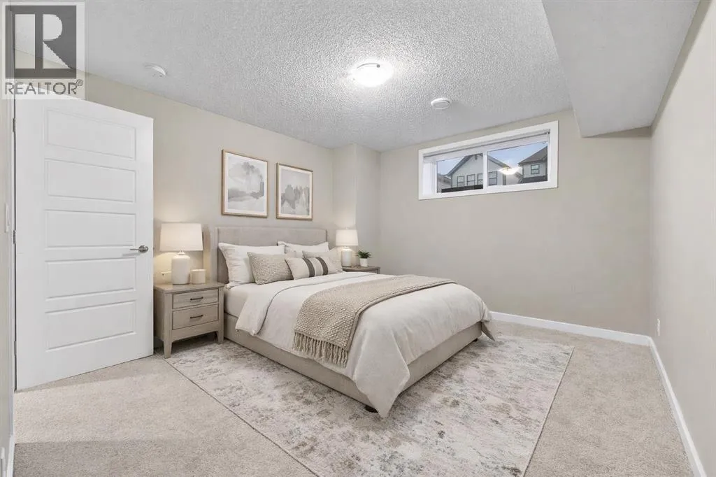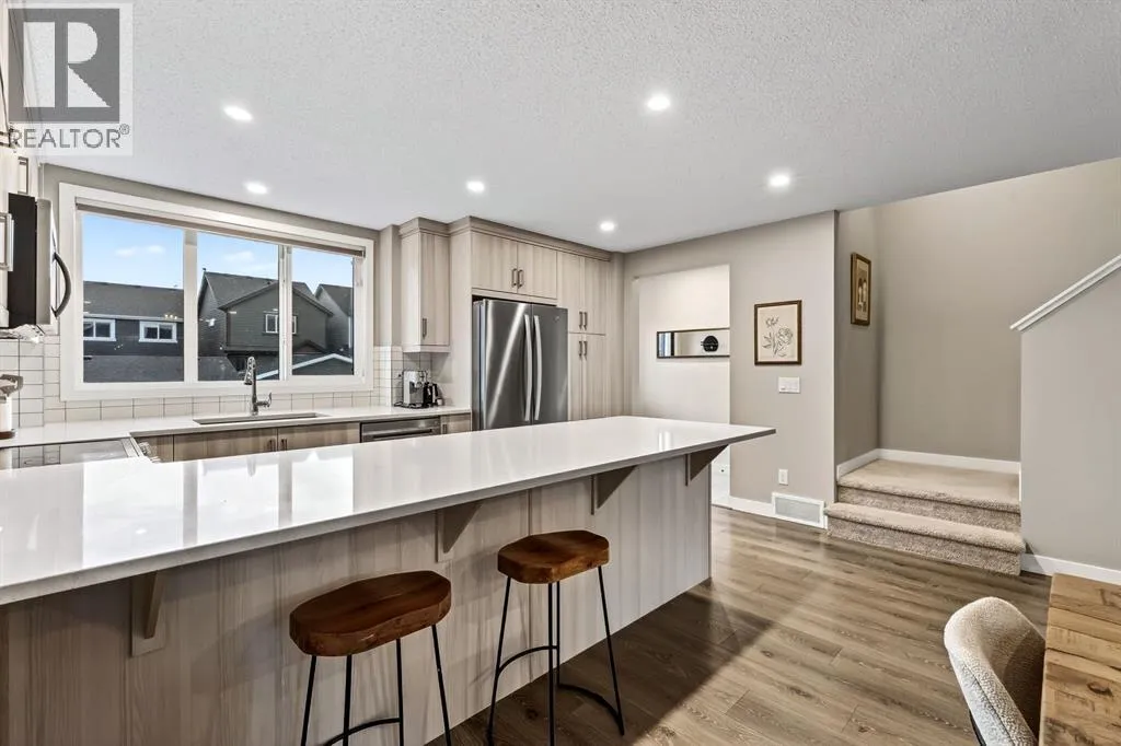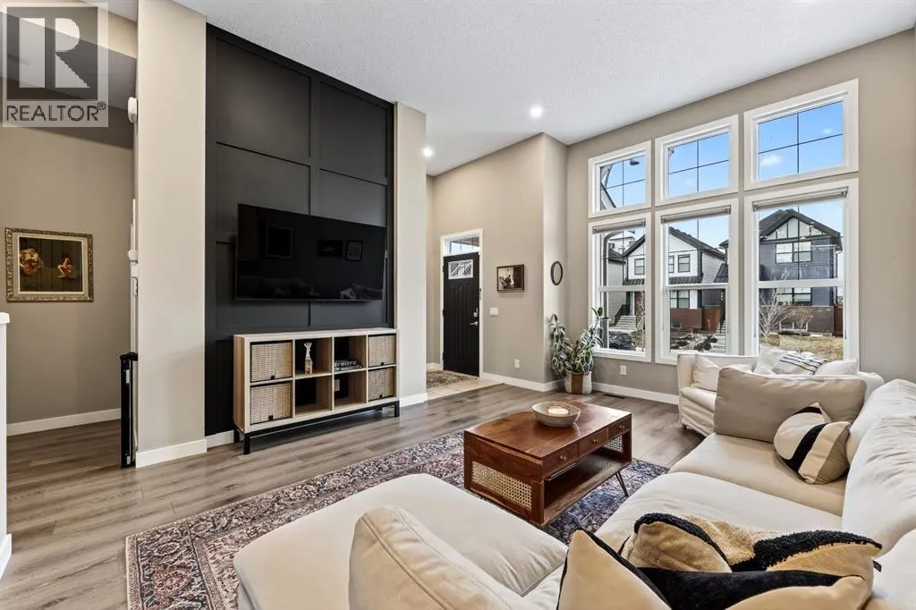 2500 Square feet of living space in the beautiful LAKE community of Mahogany awaits! This 4 bedroom 4 bathroom home is truly one of a kind - as you enter you will immediately notice the soaring 12 foot main floor ceilings, and the designer quality finishing throughout. The floor plan is beautifully done with a spacious living room area, separate large dining space and open concept kitchen with upgraded appliances, stone counters, and built in features. The upper level features a large primary retreat with its own ensuite bathroom and walk in closet, as well as 2 additional spacious bedrooms with their own 4 piece bathroom and upstairs laundry! The lower level does not feel âbasementâ like - this level has 11 foot ceilings, large windows, a huge recreation space as well as a large 4th bedroom and another full 4 piece bathroom. This home has a beautifully designed backyard with a deck and a flagstone patio, and a garage is no problem as the concrete pad is already poured! The tankless hot water system and high efficiency furnace keep utility bills low, and the central AC is a great feature for our warm Calgary summers! From the high end finishing, to the quiet yet accessible location, this beautiful property does not miss a beat! Enjoy the beautiful Lake community of Mahogany with its variety of restaurants, shopping, schools parks and more! (id:27476)