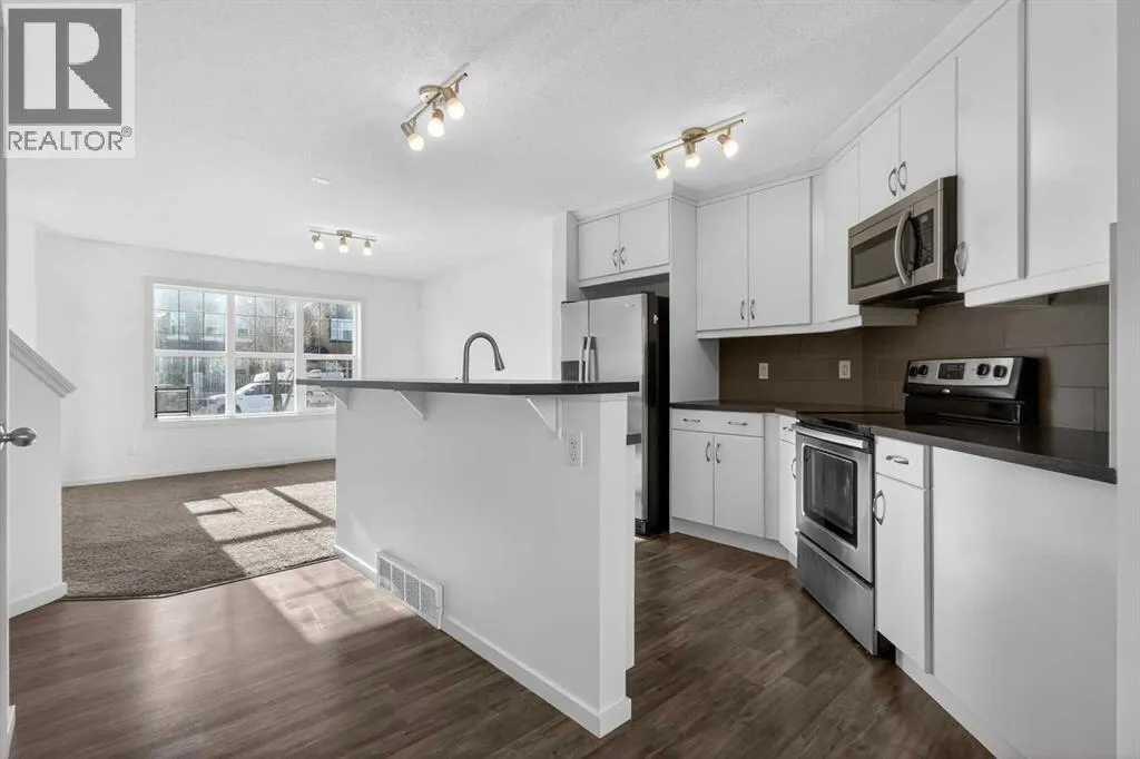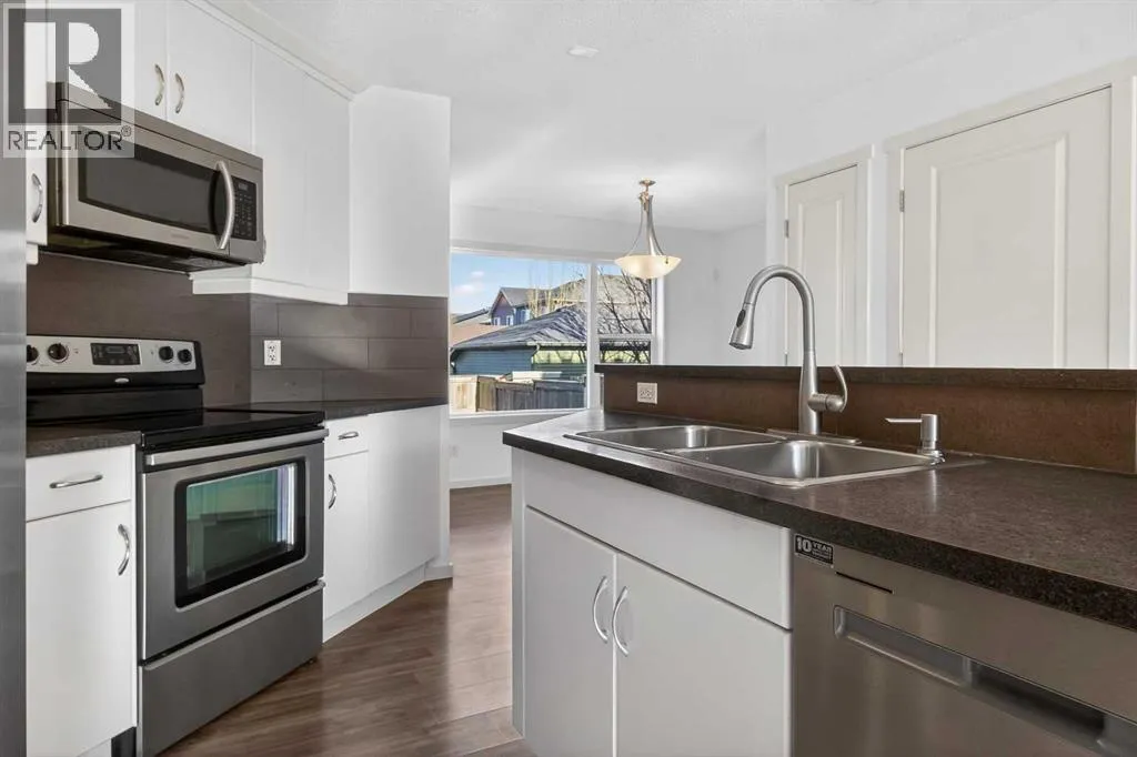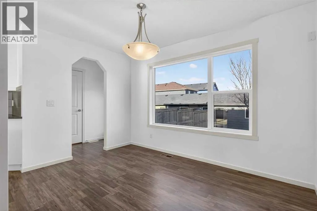 This beautifully presented END-UNIT townhouse offers exceptional value and functionality, The best part? It's not a condoâso NO CONDO FEES, and it truly feels and functions more like a semi-detached home at townhouse pricing. Offering an incredibly rare, OVERSIZED BACKYARD with tons of grass, this outdoor space is perfect for children, pets, and all kinds of activities. Inside, the open and flowing main floor features a central, functional kitchen with island and breakfast bar, large windows that flood the home with natural light, and a dining area with direct access to a deck, making indoor-outdoor living a breeze. Upstairs are THREE FULL BEDROOMSâa standout feature in the neighbourhood where many townhomes offer only twoâincluding a spacious primary bedroom with ensuite, plus an additional 4-piece bathroom. The basement is wide open and awaiting your customization, offering ample room for a large rec room, an additional bedroom, and is roughed-in for a bathroom. Completing the package is a DOUBLE DETACHED GARAGE with space for two vehicles, tools, bikes, and extra storage, along with beautiful curb appeal showcased by modern colours and a welcoming exterior. Ideally located in desirable Evanston, this family-oriented community is close to great schools, parks, amenities, and offers a friendly atmosphere where you can truly get to know your neighbours. (id:27476)