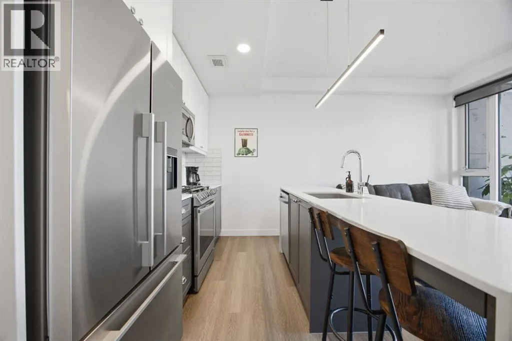 Welcome to your new home in The Annex, one of Kensingtonâs most desirable concrete buildings and Calgaryâs first LEED Gold V4 Multifamily Midrise. Did we mention this building allows short term rentals - a rare and strong investment opportunity. You can keep it as a long term rental, turn it into an Airbnb, or move in and enjoy the inner city lifestyle yourself. What makes this home stand out is the ground floor, street level entrance. It creates a boutique hotel feeling that guests love and offers unmatched convenience with no elevators and no long hallways. It is one of the most desirable and unique layouts in The Annex. Inside, the layout is bright and modern with 9 foot ceilings, floor to ceiling windows, and a clean, open design. The kitchen features quartz countertops, a gas range, sleek cabinetry, and premium Fisher and Paykel stainless steel appliances. The living area is well designed and easy to furnish, creating a comfortable space for relaxing or entertaining. The bedroom is positioned at the back of the unit for privacy and features a large closet. There is also a four piece bathroom and convenient in suite laundry. This property includes titled underground parking and a titled storage locker, which adds excellent value in this vibrant inner city community. Residents also enjoy access to an outstanding rooftop patio with panoramic downtown views, BBQ stations, fire features, lounge seating, a community garden, and a dog run. It is one of the best shared spaces in the area. Living in Kensington means everything is at your doorstep. The Bow River pathways are also just minutes away. This ground floor unit offers a rare blend of style, convenience, and investment potential in one of Calgaryâs most walkable neighbourhoods. It is an excellent opportunity for a first time buyer, investor, or anyone looking for easy inner city living. (id:27476)