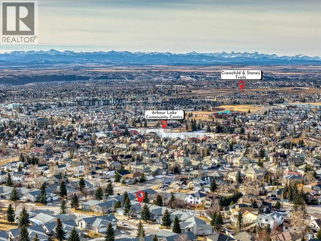 ****OPEN HOUSE CANCELLED**** Located in Arbour LakeâNorthwest Calgary's only lake communityâthis home in Arbour Cliff Villas is an immaculately maintained semi-detached bungalow providing low-maintenance living. The main floor spans just under 1300 sq ft, featuring a spacious family room and adjoining dining room with vaulted ceilings. The large kitchen boasts stainless steel appliances, ample counter and cupboard space, abundant natural light from numerous windows, and a breakfast nook for casual dining. The primary bedroom includes an ensuite bathroom and walk-in closet, with a second main-floor bedroom next to the full main bathroom. Main-floor laundry in the mudroom offers counter space, cabinetry, and a linen closet. The basement features a large finished family room, two-piece bathroom, and workshop equipped with built-in workbenches and bright task lightingâideal dimensions and setup for easy conversion to a third bedroom. Numerous upgrades throughout the years include hardwood flooring throughout the living room, dining room, and bedrooms; upgraded tile flooring in the kitchen; and a new furnace and central air conditioner (2024). Additional features include Gemstone lighting, an insulated and drywalled double-car garage, backyard deck, and gas outlet for barbecuing. Arbour Cliff Villas HOA ($150/month) handles snow removal, lawn care, and underground sprinkler maintenance.Arbour Lake residents enjoy exclusive access to a private lake, beach, clubhouse, tennis courts, skating, and fishing for an annual fee of $317.63 (incl. GST).Prime location near Crowfoot Crossing shopping, CTrain, and restaurants, with quick Stoney Trail access to the mountains. (id:27476)