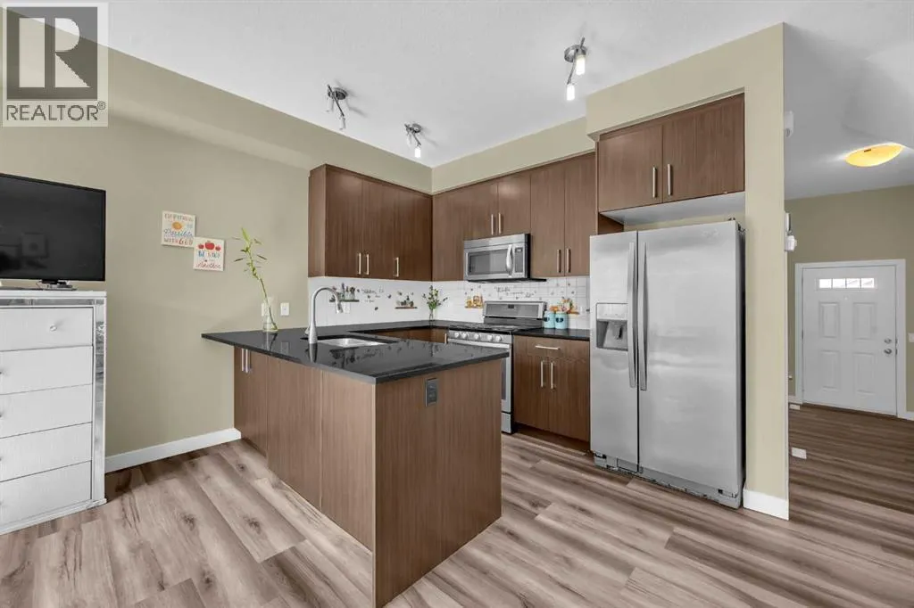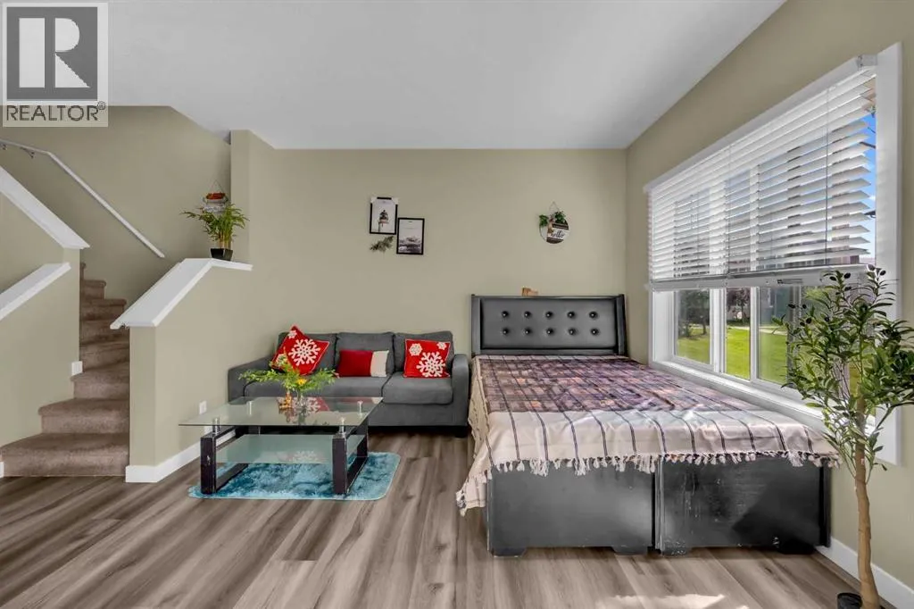 Welcome to this beautifully maintained 3-bedroom, 2.5-bathroom townhouse offering 1239 SqFt of comfortable living space, an open concept layout, and a front-attached garage - big backyard & no maintenance -GARBAGE IS ALSO INCLUDED ! Step inside to a tiled foyer with convenient access to a 2-piece bathroom, garage entry, and basement. Newer Flooring and Fresh Coat of Paint. The main floor is designed for seamless living and entertaining, featuring a bright and airy open layout with large windows that flood the space with natural light. The kitchen boasts granite countertops, stainless steel appliances including a 5-burner gas stove, a dual basin sink, ample cabinetry, and a breakfast bar with seating. Adjacent to the dining area, sliding glass doors open to a spacious private deck with a wood privacy dividerâperfect for summer gatherings. Upstairs, youâll find three generously sized bedrooms and two full bathrooms. The primary bedroom includes a walk-in closet and a 4- piece ensuite accessible via a private pocket door. The additional two bedrooms share a full 4-piece bathroom with a tub/shower combo and undersink storage. A dedicated laundry area with a front-load washer and dryer plus built-in wire shelving completes the upper level. The basement remains undeveloped, offering a blank canvas for your future vision. Enjoy outdoor space with a deck that steps out to green spaceâideal for children or pets. Parking is a breeze with a front-attached oversized single garage and driveway. Located just a 2-minute drive or a 7-minute walk to Ted Harrison School, this home is nestled in a family-friendly community close to public transit, C Train access, grocery stores, and coffee shops. Condo fee also includes water. Donât miss this fantastic opportunity! (id:27476)