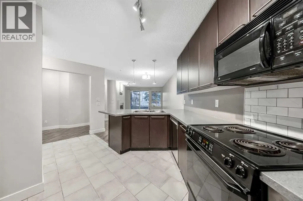 OPEN HOUSE Saturday Feb 7th 2pm to 4pm #118 35 Richard Court SW Bright, beautiful and spacious 720 sq ft One Bedroom plus Den that backs on to a secure inner courtyard garden with mature trees and landscape and a quaint gazebo. Fantastic location, right next to Mount Royal University! Foyer entry open to the den /office flex space. Large kitchen with mocha cabinetry. Spacious open floor plan with the dining area being open to the living area and kitchen. The living room features a gas fireplace and patio doors out to your stone patio on the courtyard garden, giving you added indoor / outdoor living space. Big bedroom (fits king size bed) has a walk-in closet and door access to the bathroom (cheater ensuite). Large windows bring in lots of natural light. Modern color pallet with laminate and tile floors throughout. In-Suite Laundry. Titled underground secure parking #76. Separate Storage Locker #1-18. All this in the fantastic building, the Morgan located right next to MRU! Giving you incredible amenities, large fitness centre, media / social room, guest suite for your overnight guests, courtyard gardens with gazebo and bbq, car wash, secure visitor parking, on-site manager and more. Pet-friendly building (with board approval) Walk to restaurants, grocery stores and all you need. Enjoy North Glenmore Park and the gorgeous path system walkways along the river. Fantastic home to call your own or as an investment property. View the 3D Tour (purple house symbol). Welcome home! (id:27476)