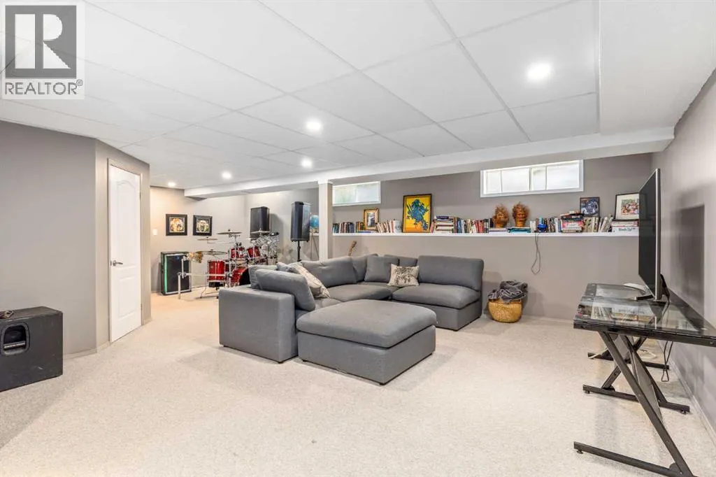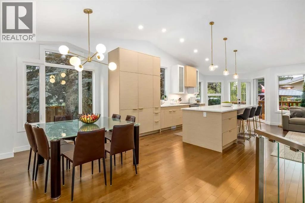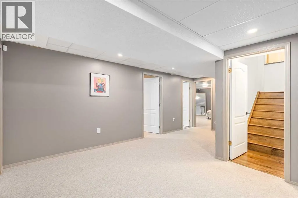 Luxury, modern, and timeless fully renovated bungalow on a beautifully landscaped corner lot just one minute from Fish Creek Park!This serene and stylish 4-bedroom, 3-bathroom home offers 3,170 sq. ft. of developed living space and has been completely remodeled and fully finished with trendy finishes and thoughtful upgrades throughout. Poly-B plumbing removed, popcorn ceilings eliminated, vaulted ceilings, and all-new windows provide peace of mind and contemporary comfort.Youâre welcomed by mature trees, lush gardens, and a paved walkway beside a brand-new fence leading to the covered front porch. Inside, durable tile flooring, fresh paint, updated floors, and an open, bright layout create an inviting first impression. The foyer flows into a cozy front den or formal living room with rich hardwood flooring, while soaring ceilings elevate the spacious formal dining areaâperfect for large gatherings.The show-stopping kitchen features abundant modern cabinetry, quartz countertops and backsplash, stainless steel appliances, water filtration and softener, and a large eat-up island overlooking the family room. Relax by the gas fireplace framed by a contemporary feature wall and custom built-ins.The primary retreat offers direct access to the deck and backyard, along with a spa-inspired 5-piece ensuite showcasing a deep soaker tub, oversized walk-in shower, expansive vanity, private water closet, and generous walk-in closet. A bright second bedroom, modern 4-piece bathroom, and functional laundry/mud room with cabinetry and counter space complete the main level.Downstairs, enjoy a massive recreation room, two additional large bedrooms, a 3-piece bathroom, and a versatile office with sink and built-in cabinetryâideal for working from home or creative space.Step outside to a stunning two-tier rebuilt deck, fully fenced and landscaped yard, relaxing gazebo, and hot tubâperfect for entertaining or unwinding. The front of the home features an extra-large driveway, RV parking potential, and an insulated double attached garage.Additional highlights include central air conditioning, high-efficiency furnace, new lighting, and upgraded flooring throughout.An exceptional home in an unbeatable locationâthis is a must-see. Book your private showing today! (id:27476)
